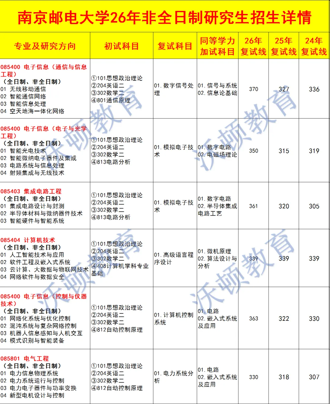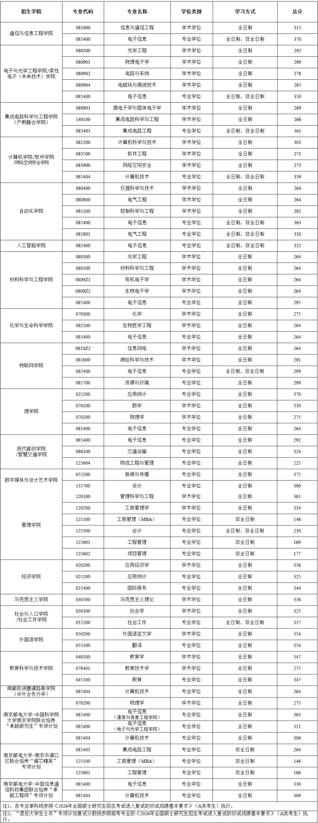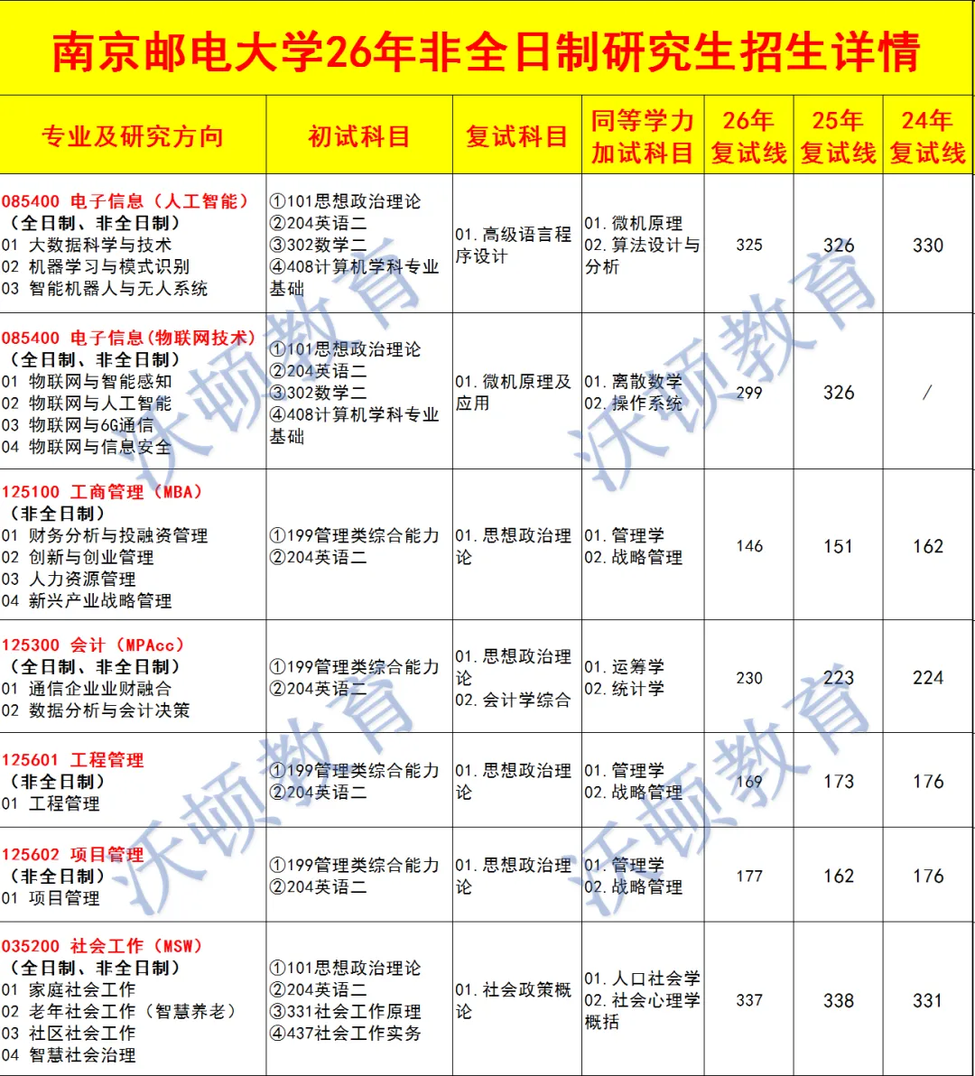 南京邮电大学2026年非全日制研究生复试线相比25考研,今年复试线整体上涨,个别专业有所下降。