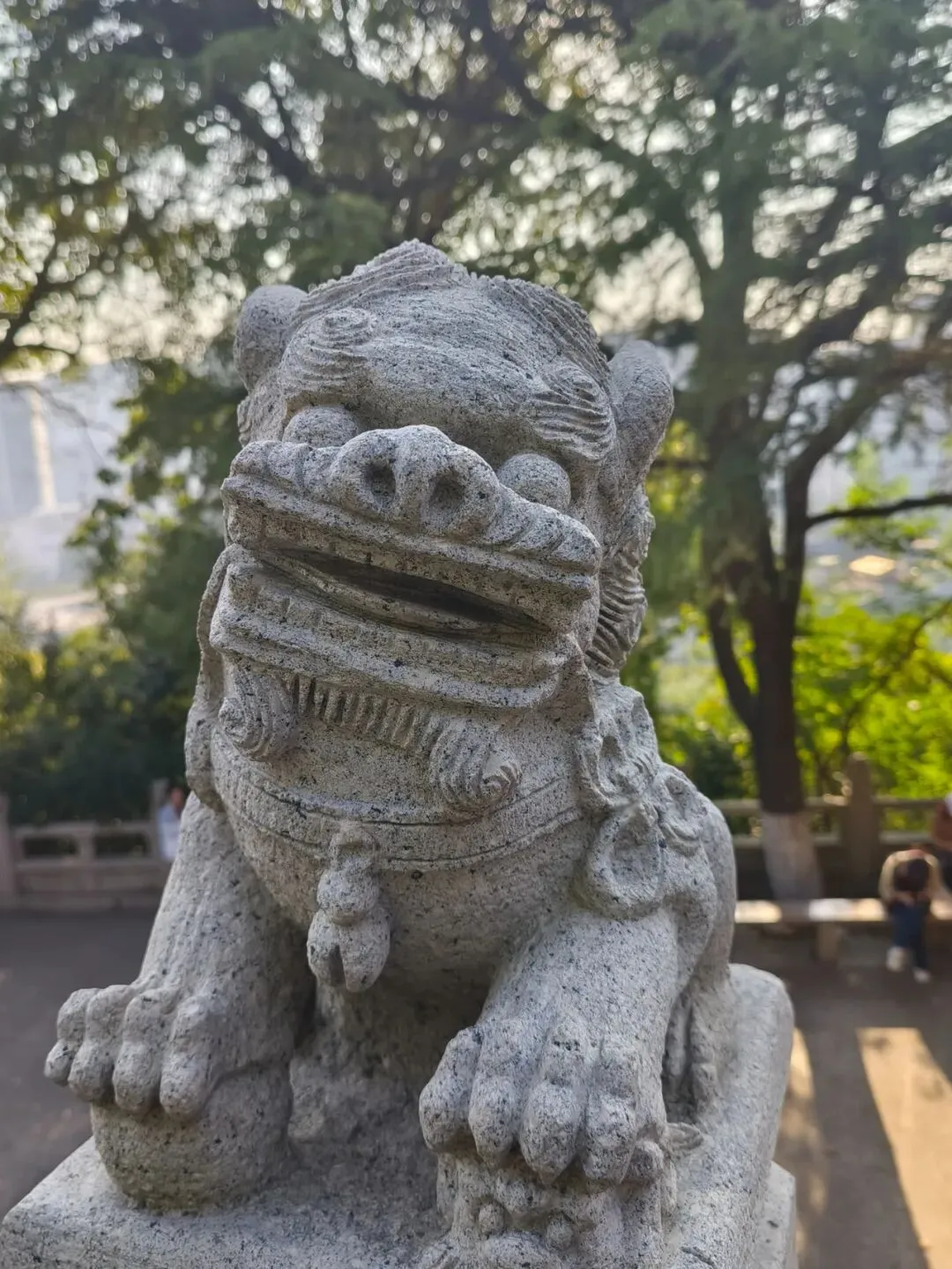 景区山门处,一对石狮高4.8米,重达30吨,用苏州金山石整块雕刻而成。