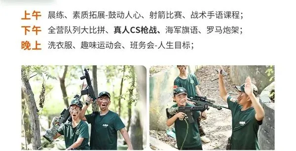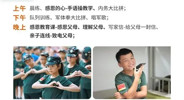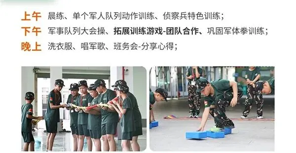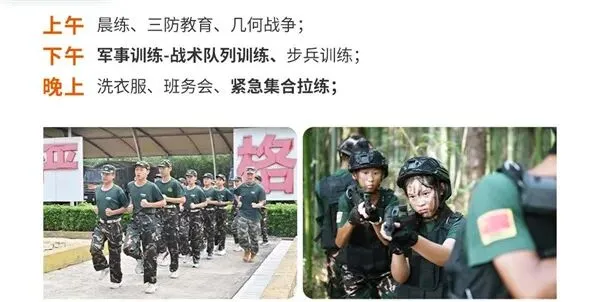 师资:男军事教官+女教导员+生活老师+心理老师(分班上下浮动一岁);