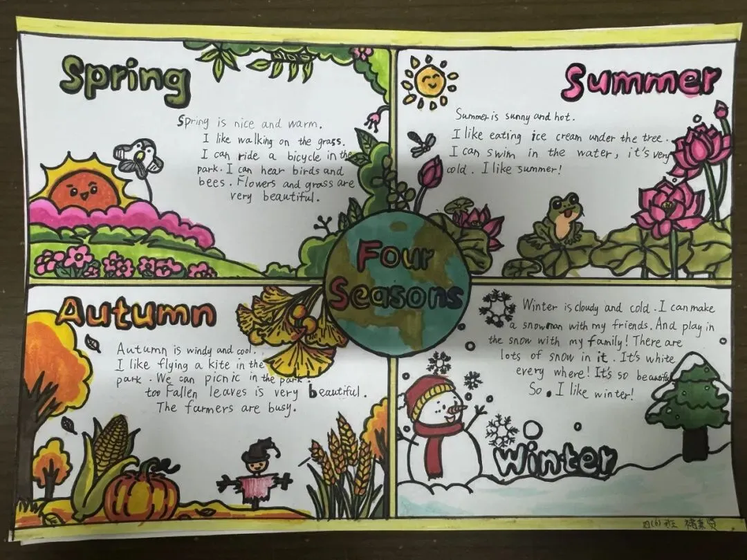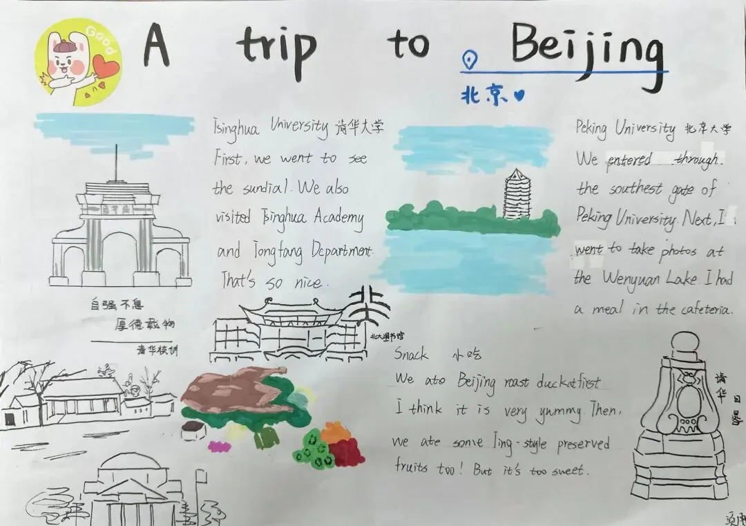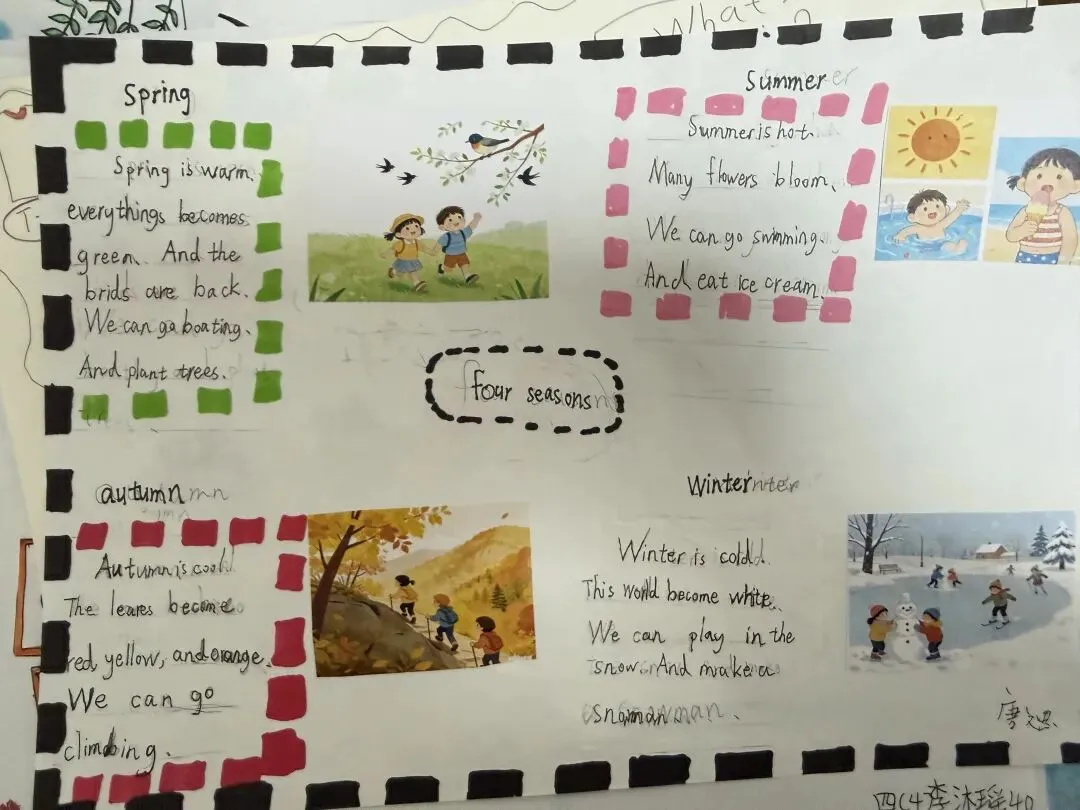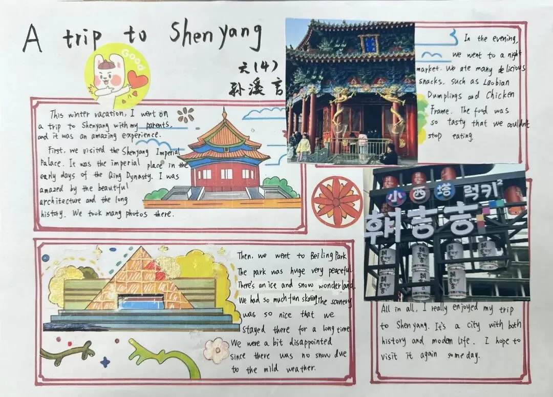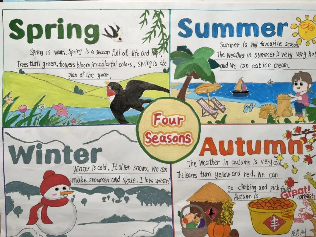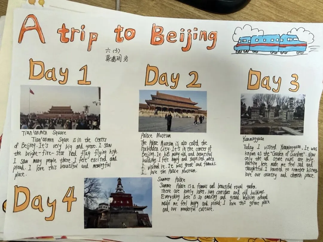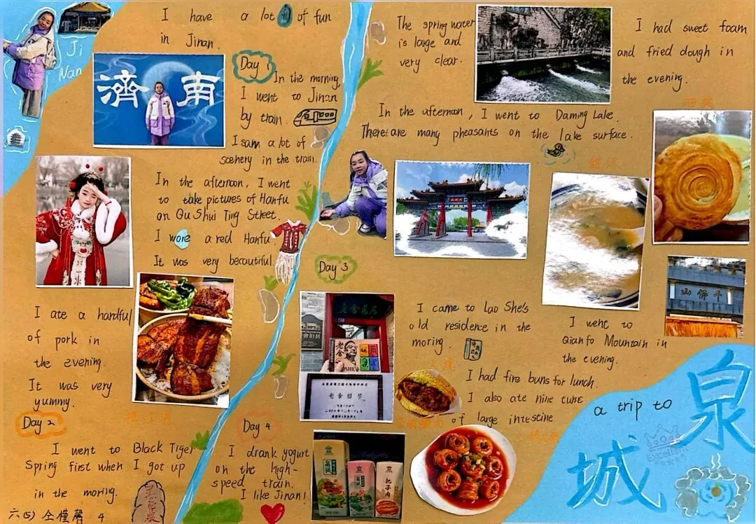 六年级同学的小报,不仅在内容上更有深度与思考,版面设计也更具巧思,排版错落有致、图文相得益彰,在锻炼英语写作能力的同时,更展现出同学们综合素养的全面提升。