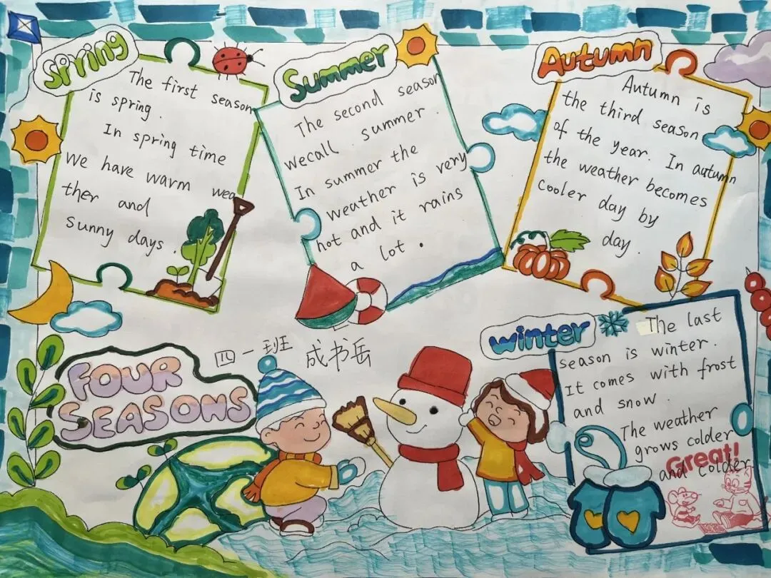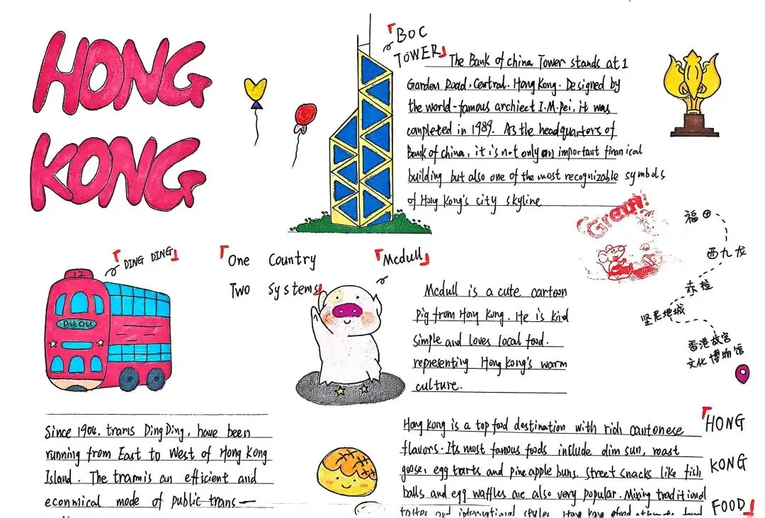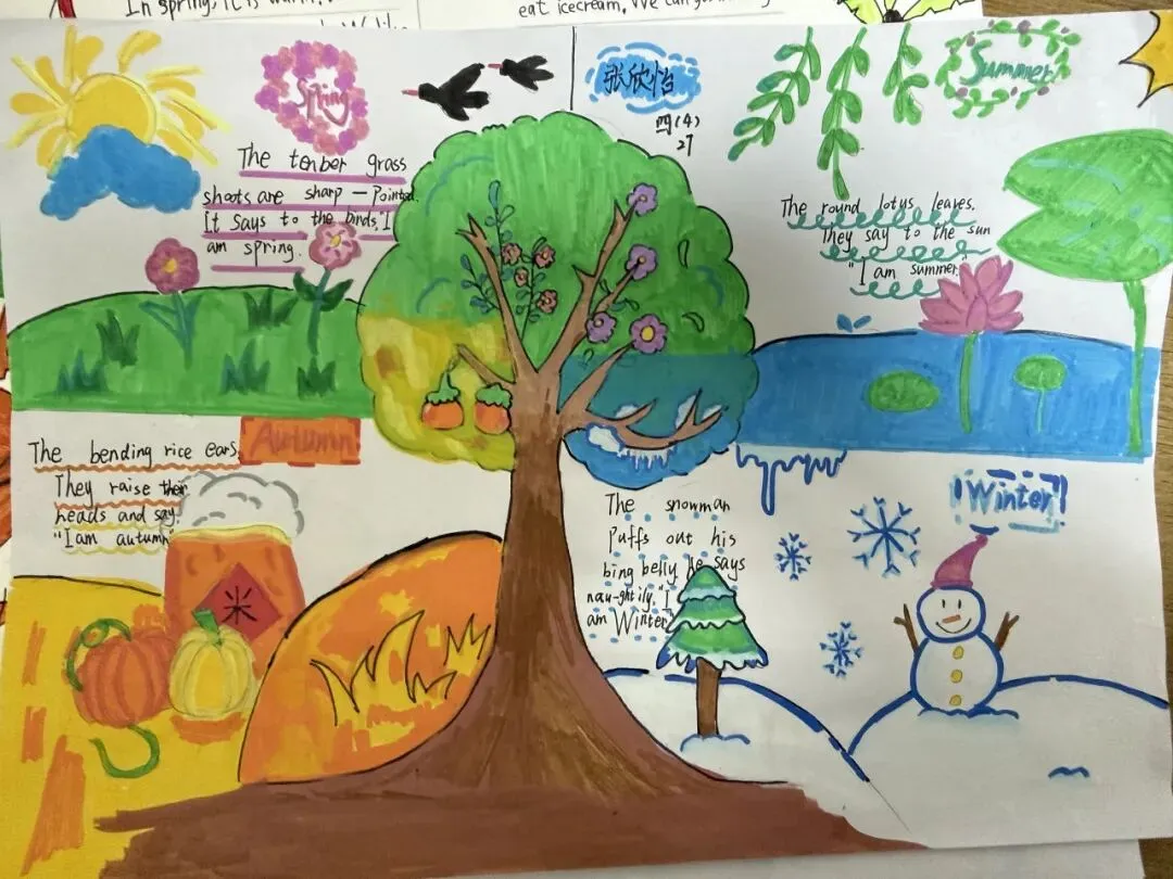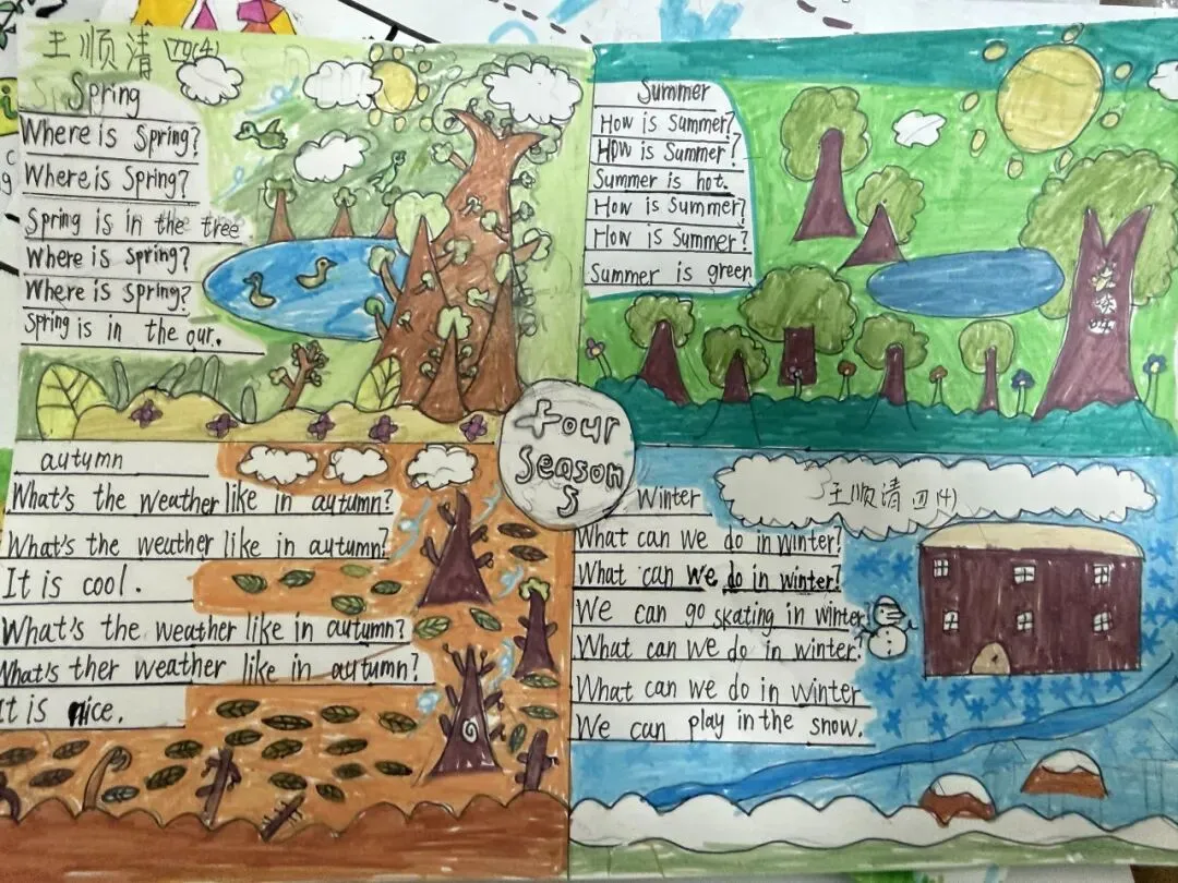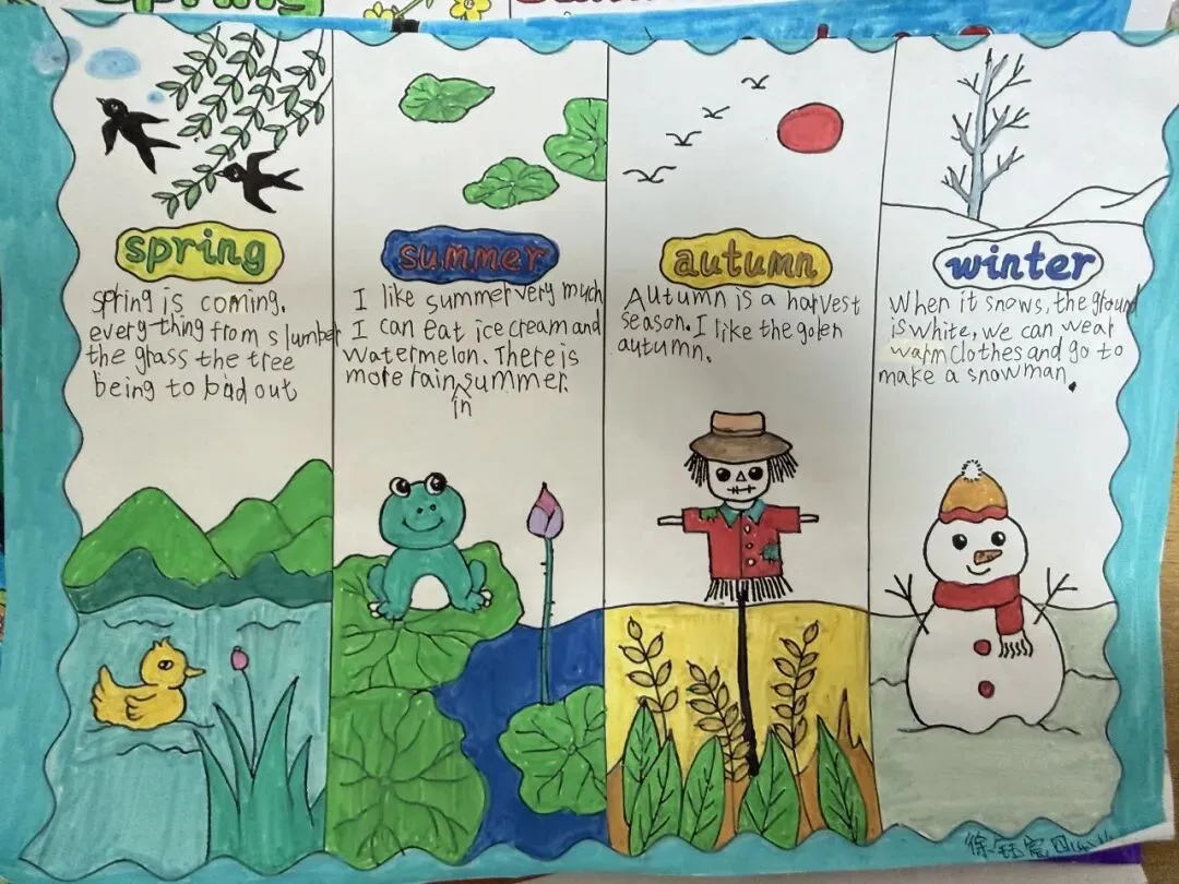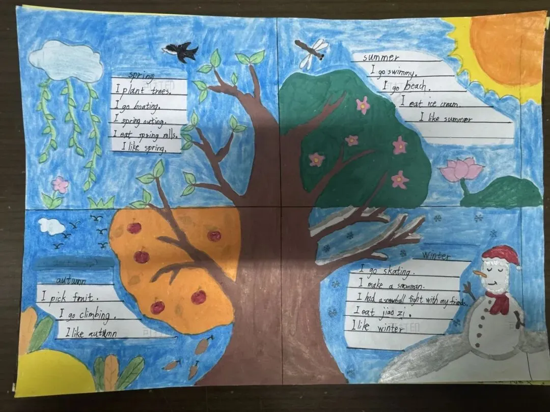 六年级同学的小报,不仅在内容上更有深度与思考,版面设计也更具巧思,排版错落有致、图文相得益彰,在锻炼英语写作能力的同时,更展现出同学们综合素养的全面提升。