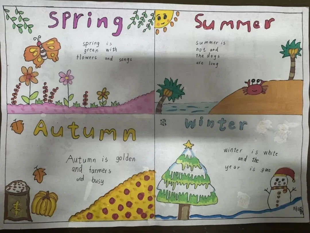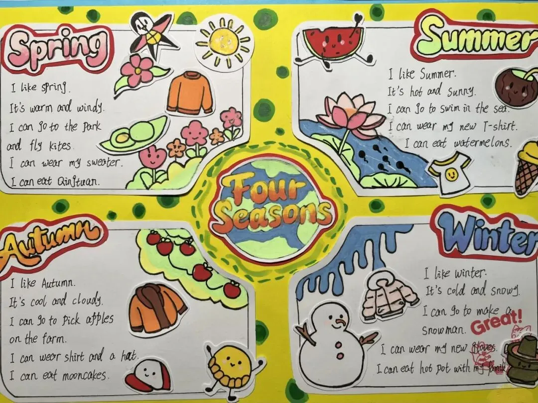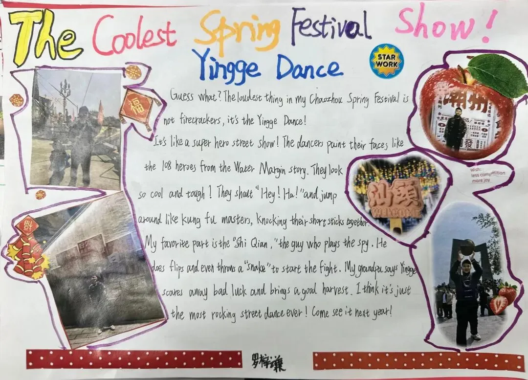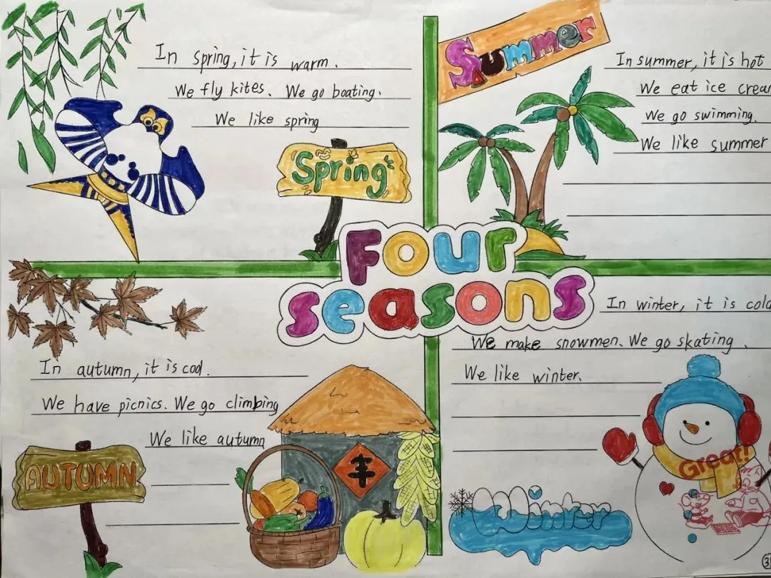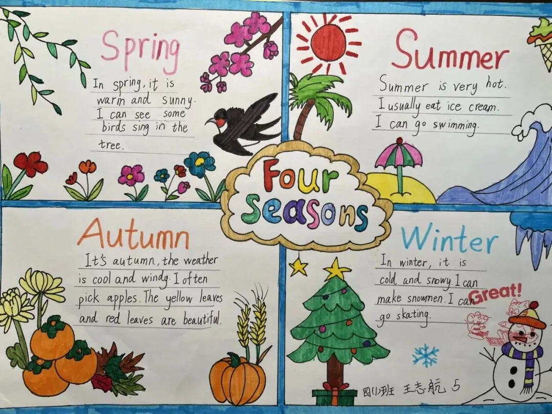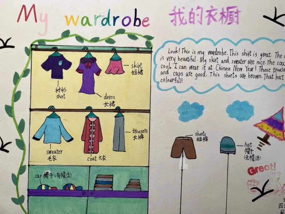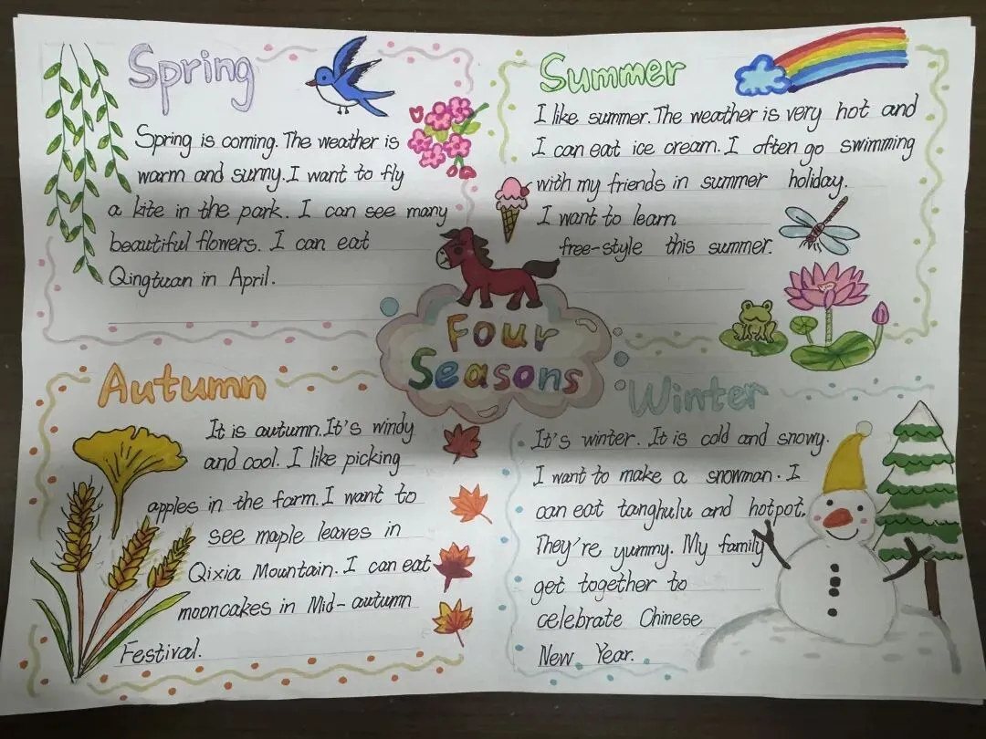 六年级同学的小报,不仅在内容上更有深度与思考,版面设计也更具巧思,排版错落有致、图文相得益彰,在锻炼英语写作能力的同时,更展现出同学们综合素养的全面提升。