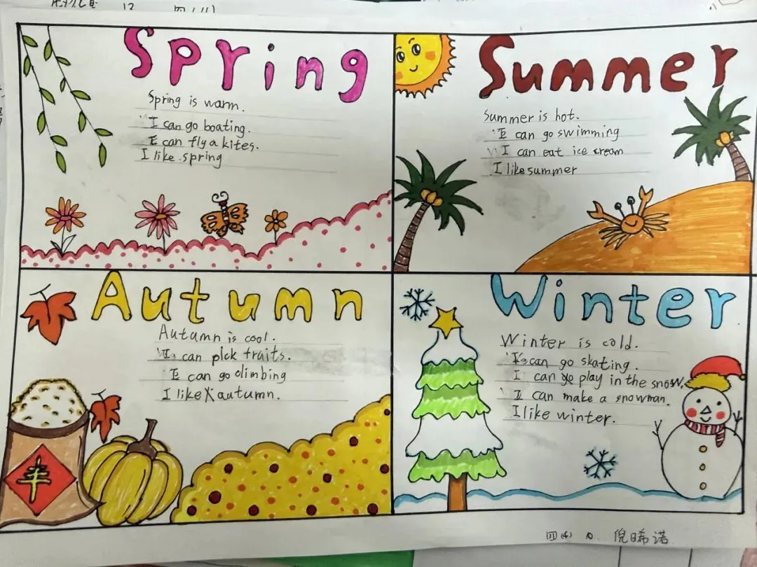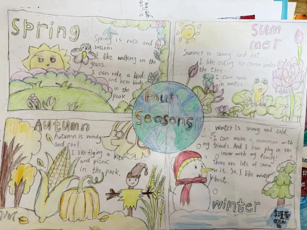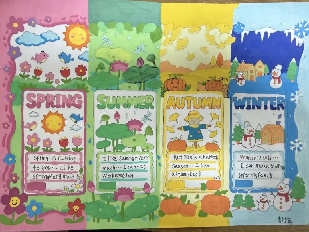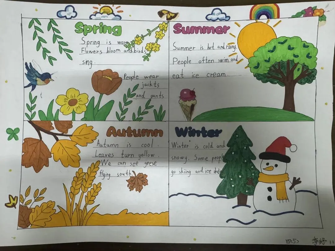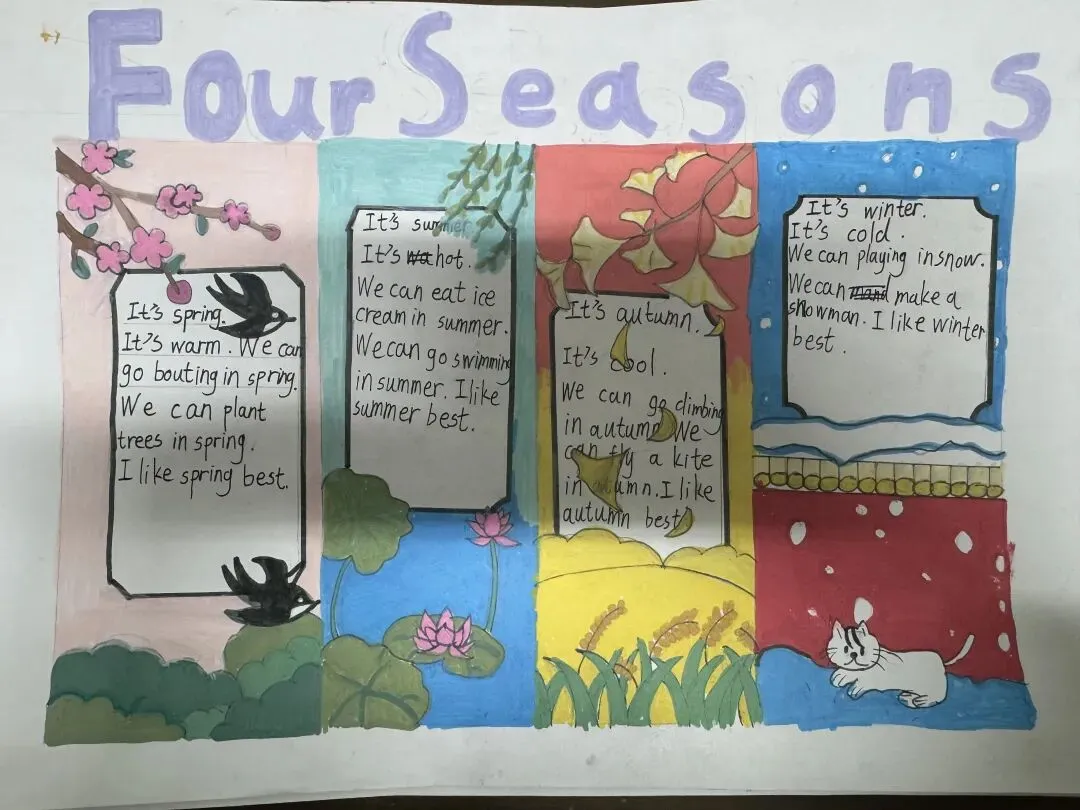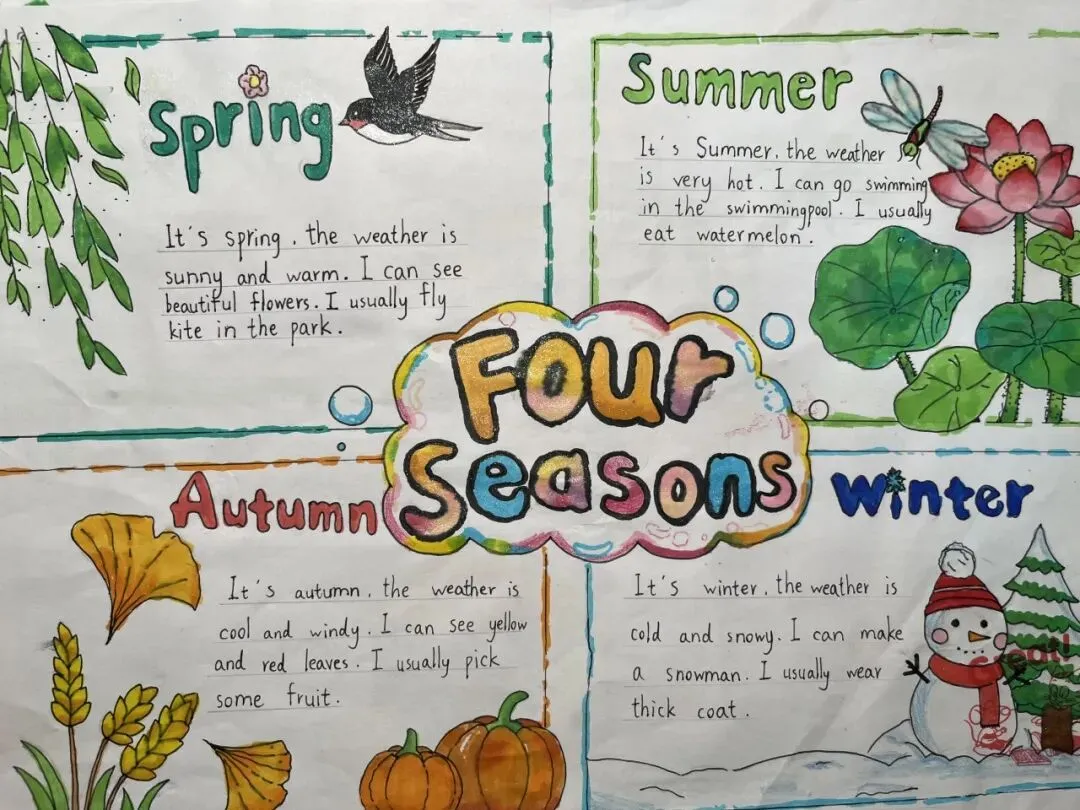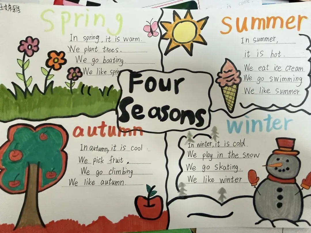 六年级同学的小报,不仅在内容上更有深度与思考,版面设计也更具巧思,排版错落有致、图文相得益彰,在锻炼英语写作能力的同时,更展现出同学们综合素养的全面提升。