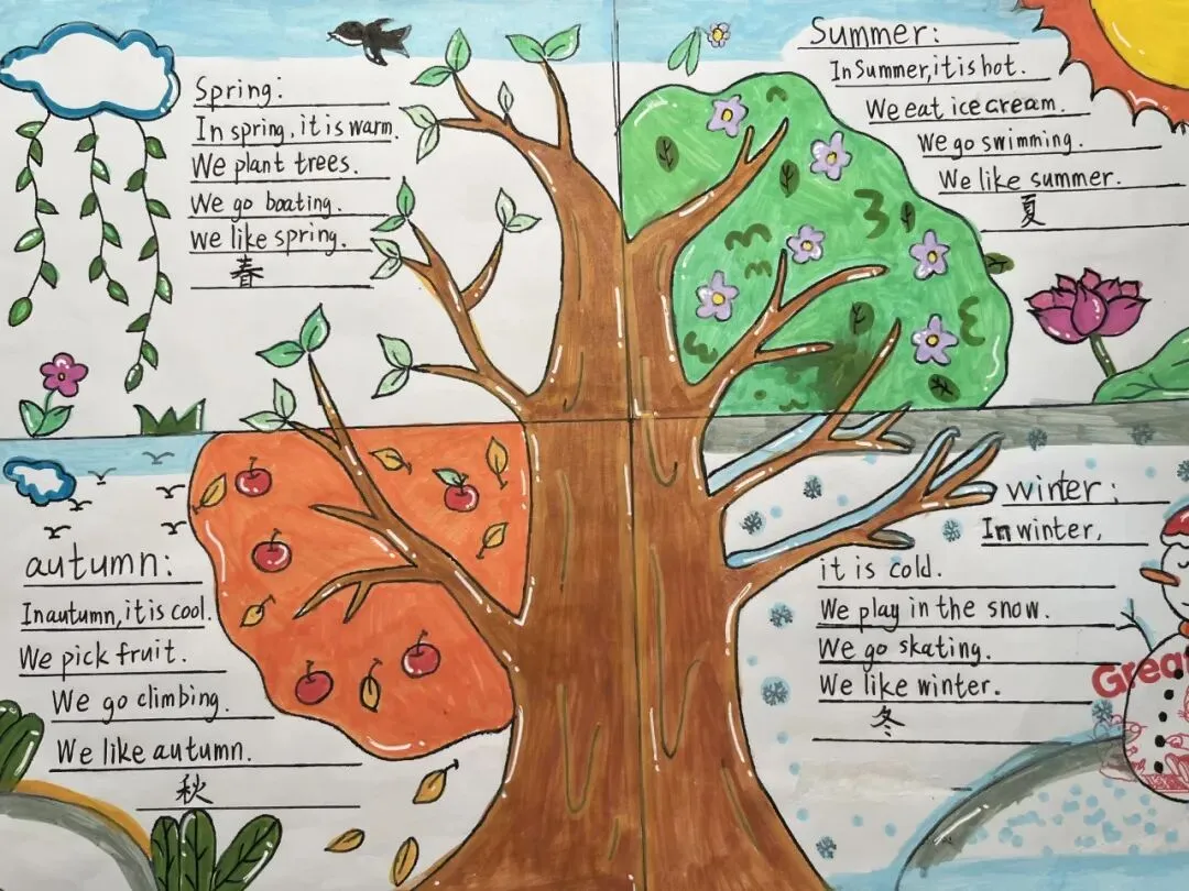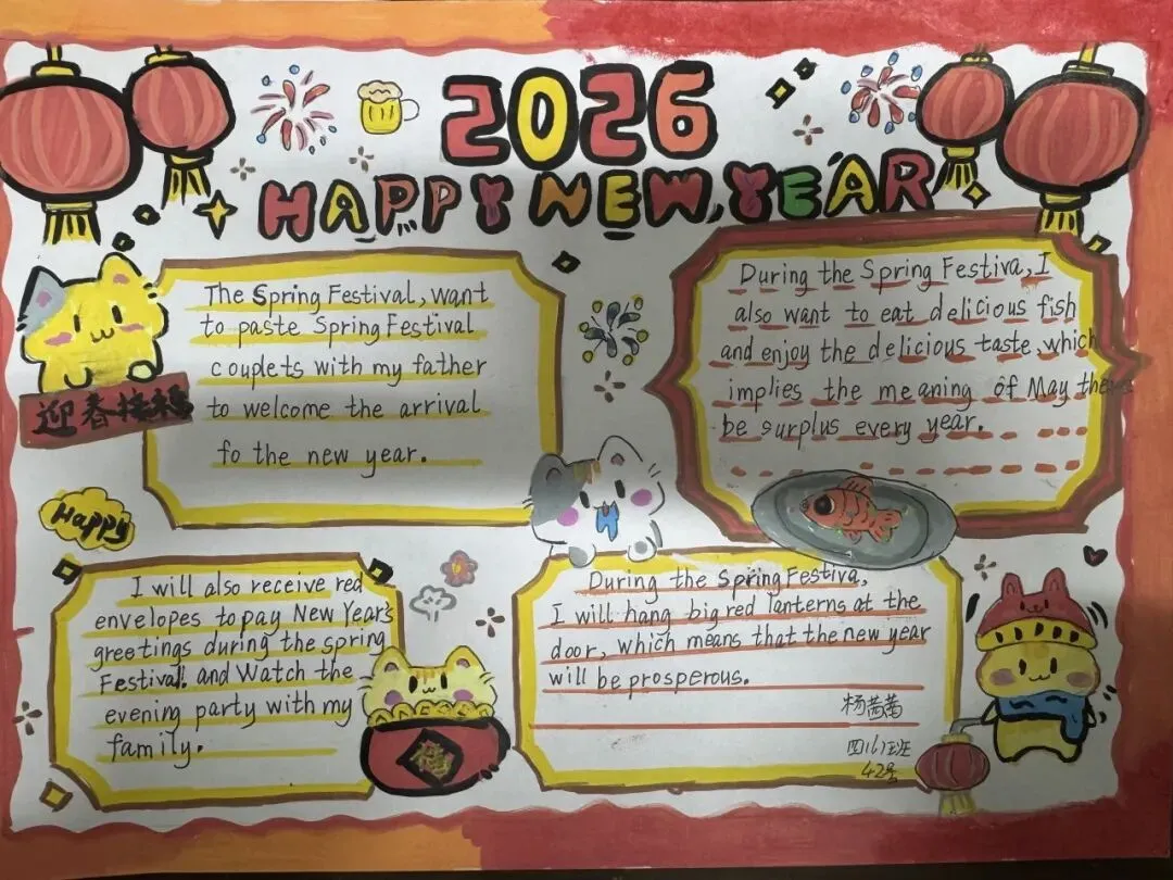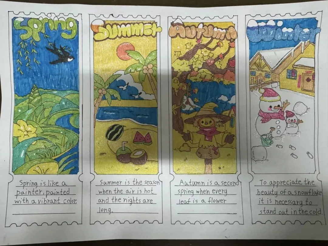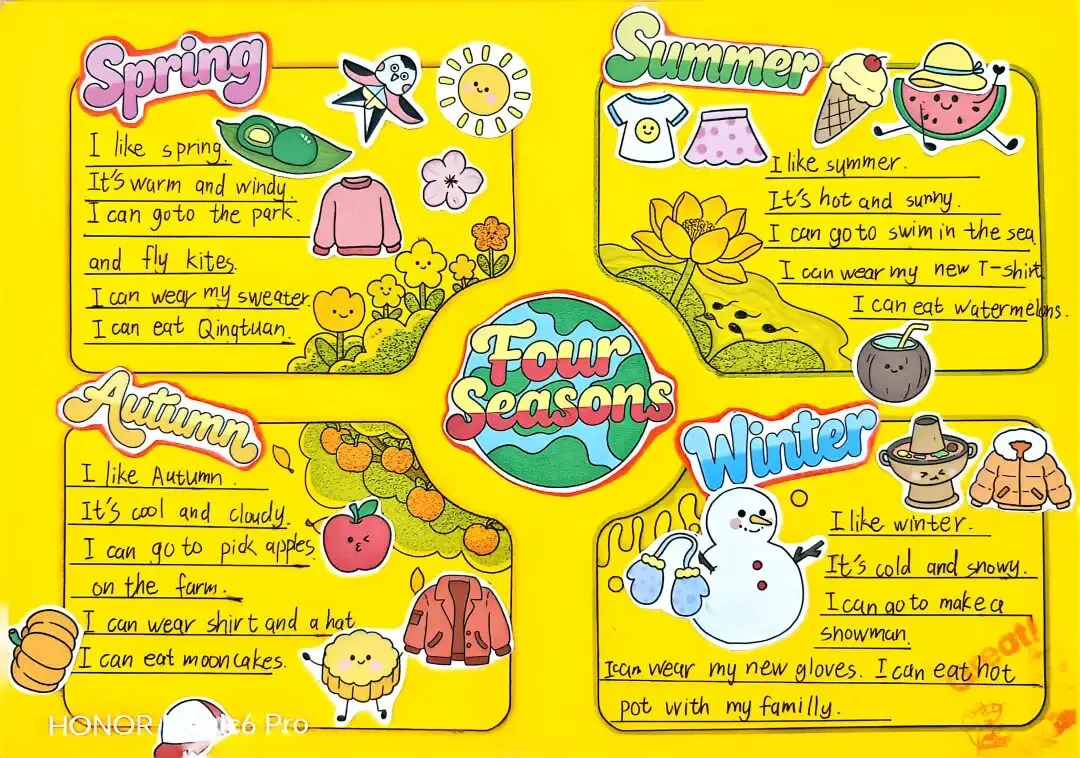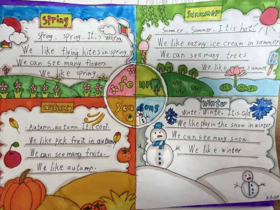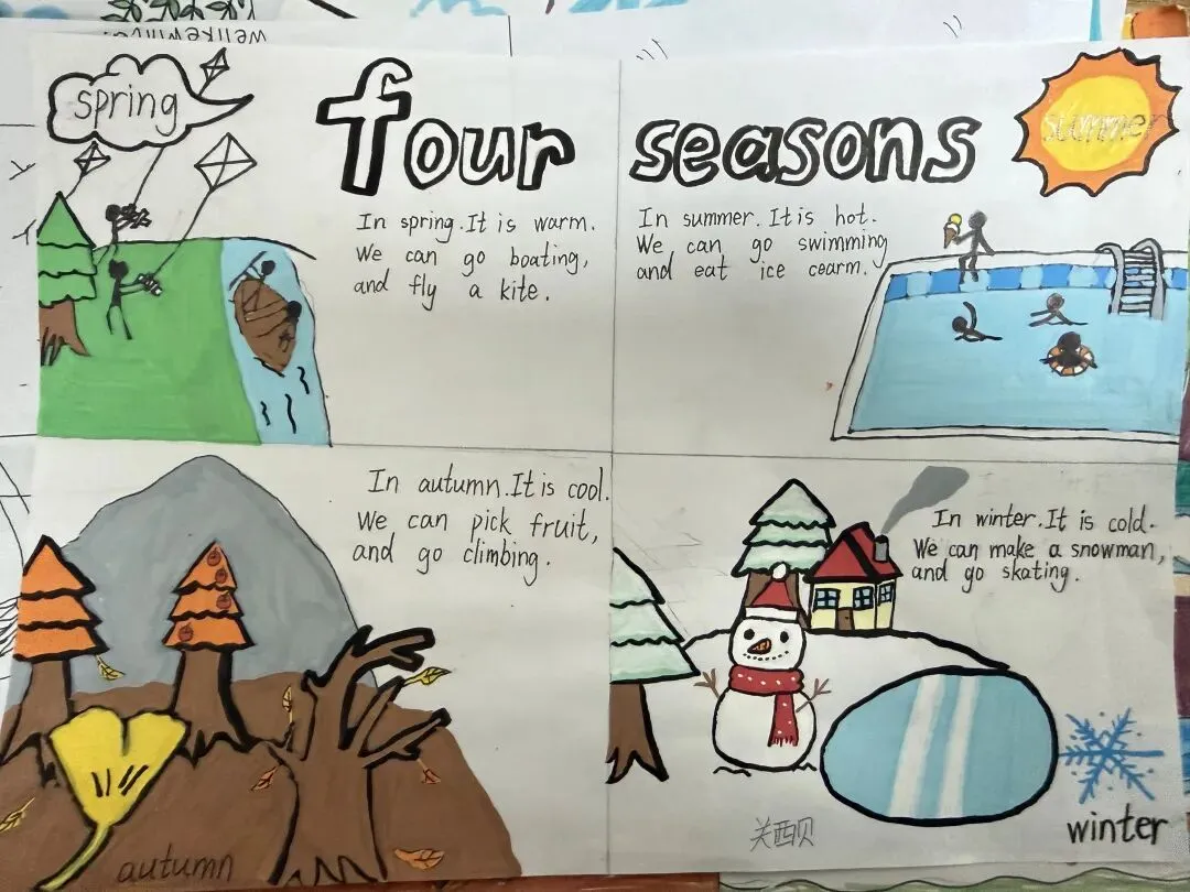 六年级同学的小报,不仅在内容上更有深度与思考,版面设计也更具巧思,排版错落有致、图文相得益彰,在锻炼英语写作能力的同时,更展现出同学们综合素养的全面提升。