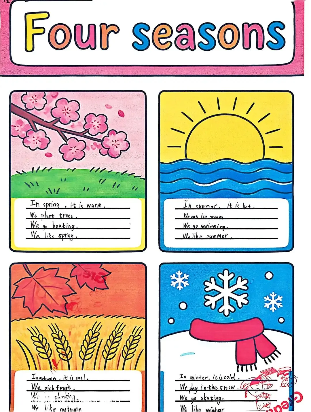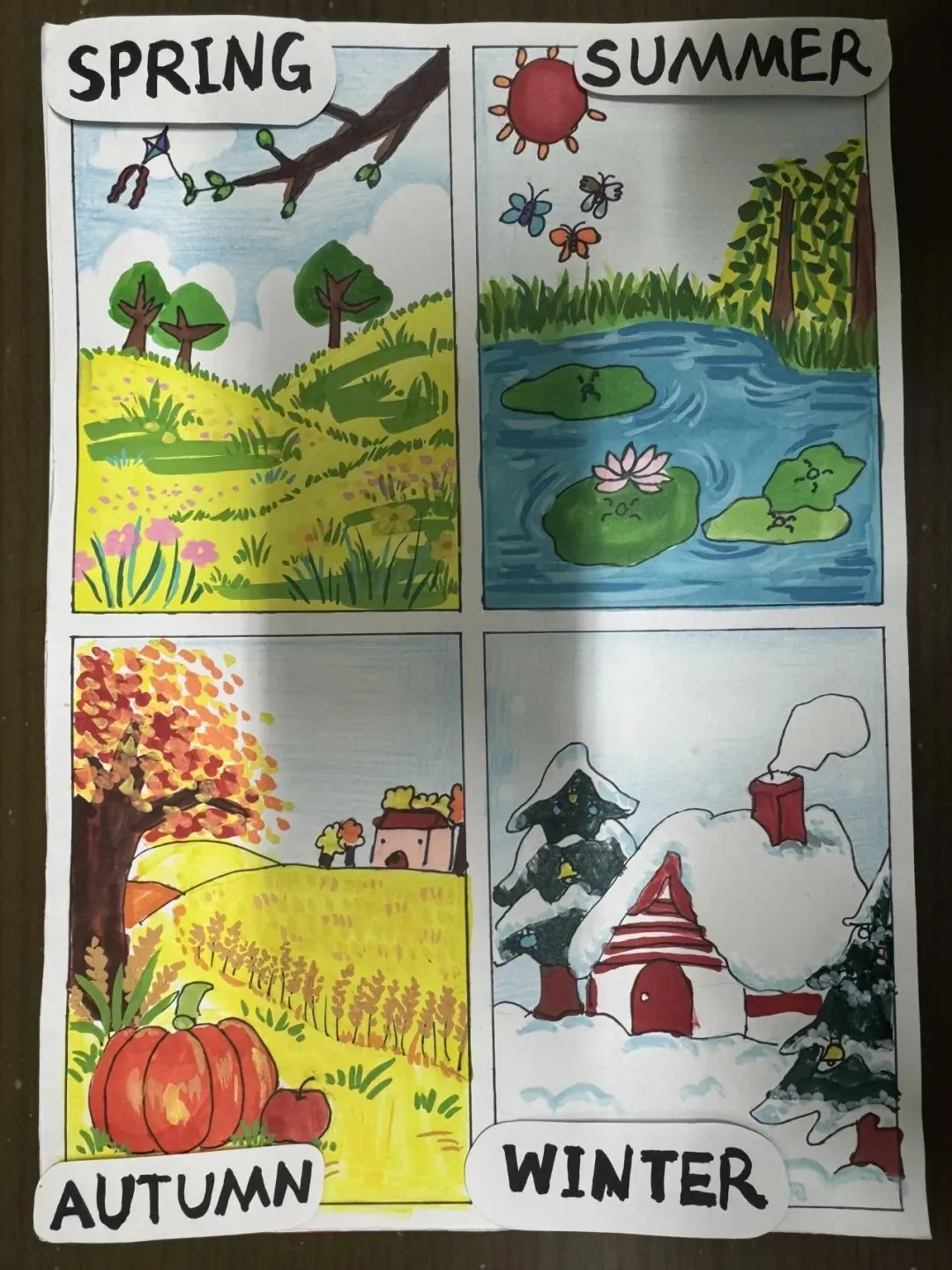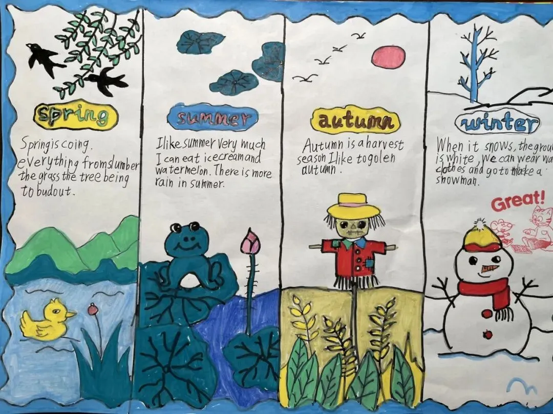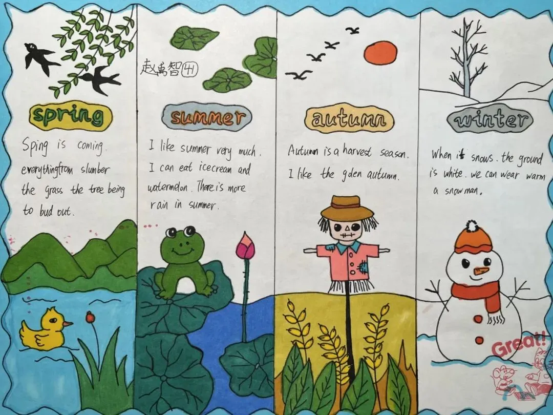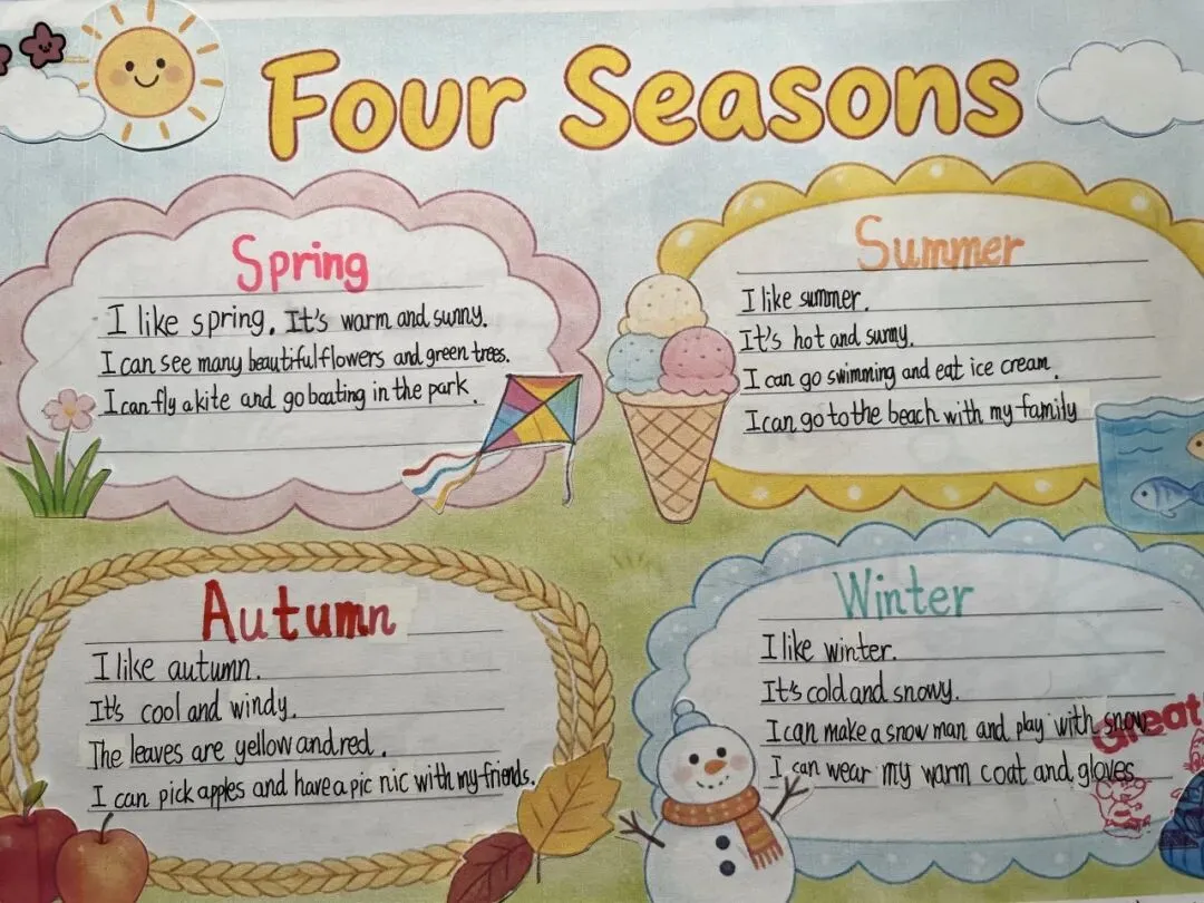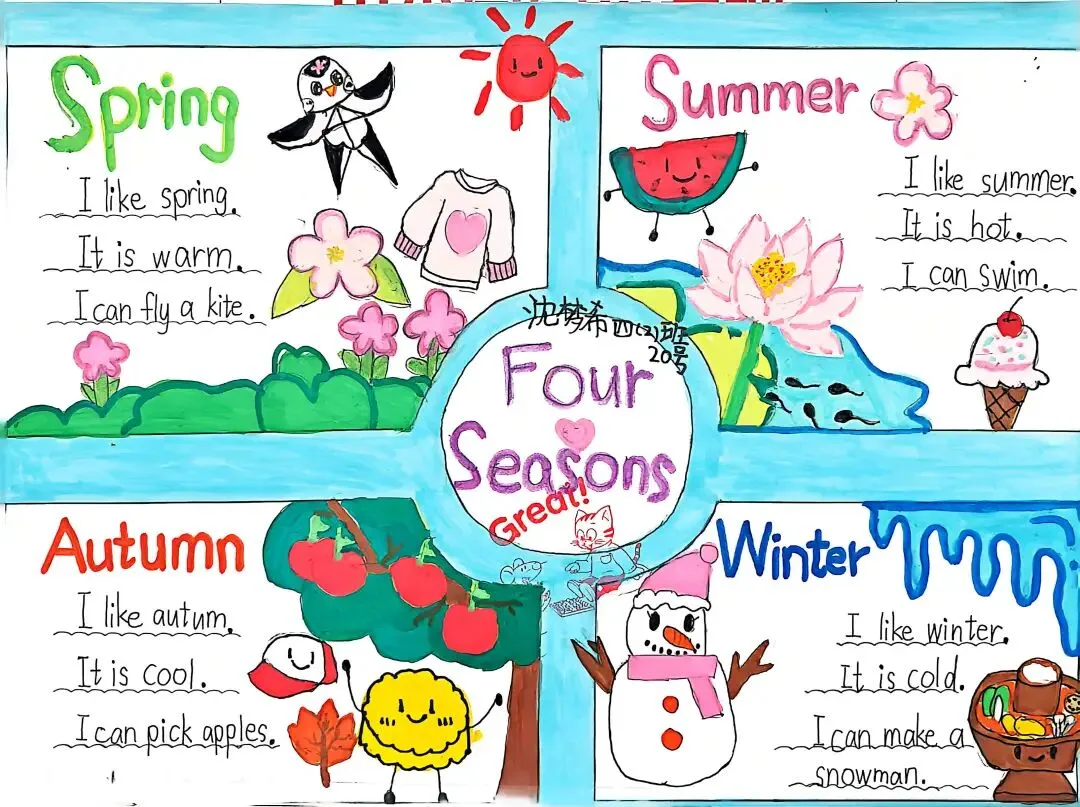 六年级同学的小报,不仅在内容上更有深度与思考,版面设计也更具巧思,排版错落有致、图文相得益彰,在锻炼英语写作能力的同时,更展现出同学们综合素养的全面提升。
