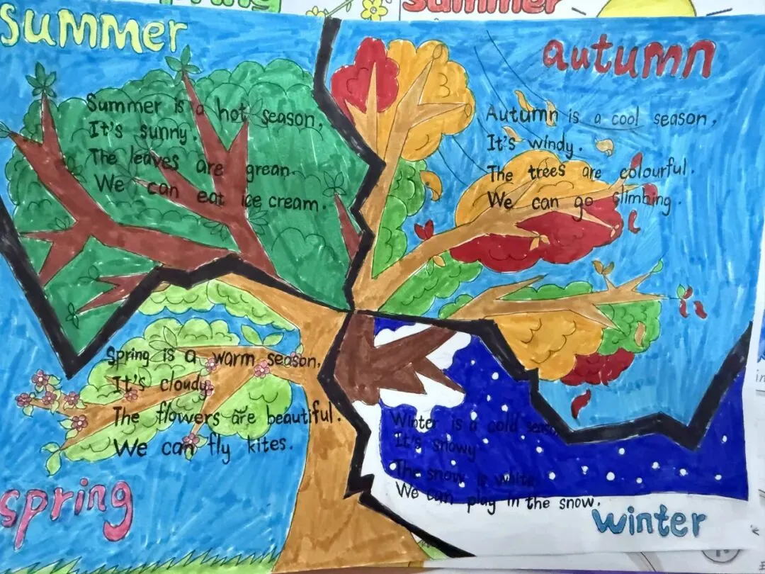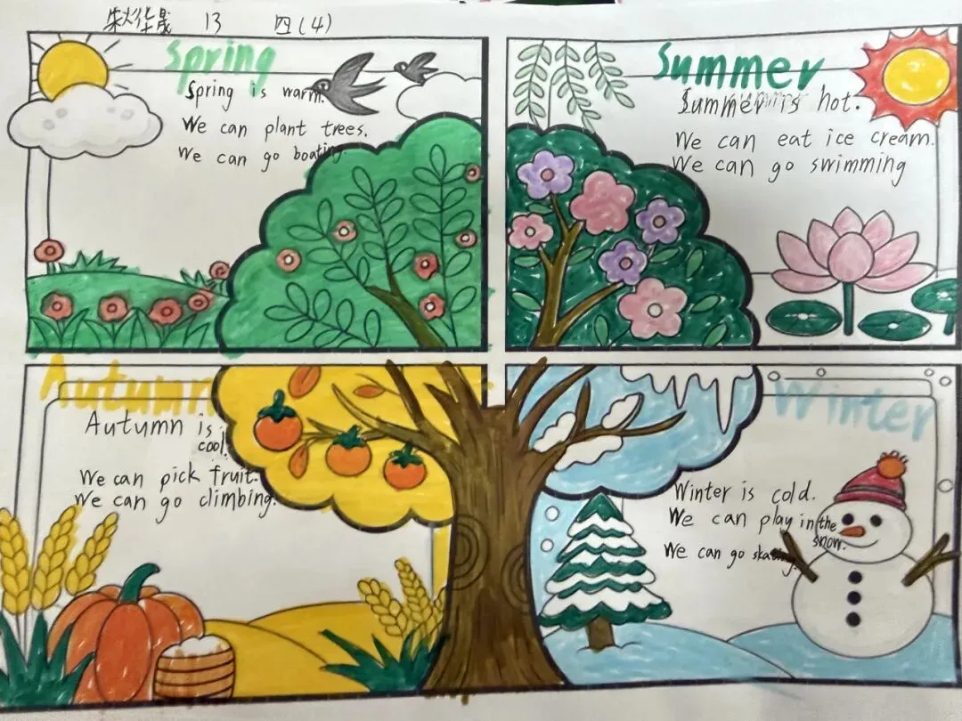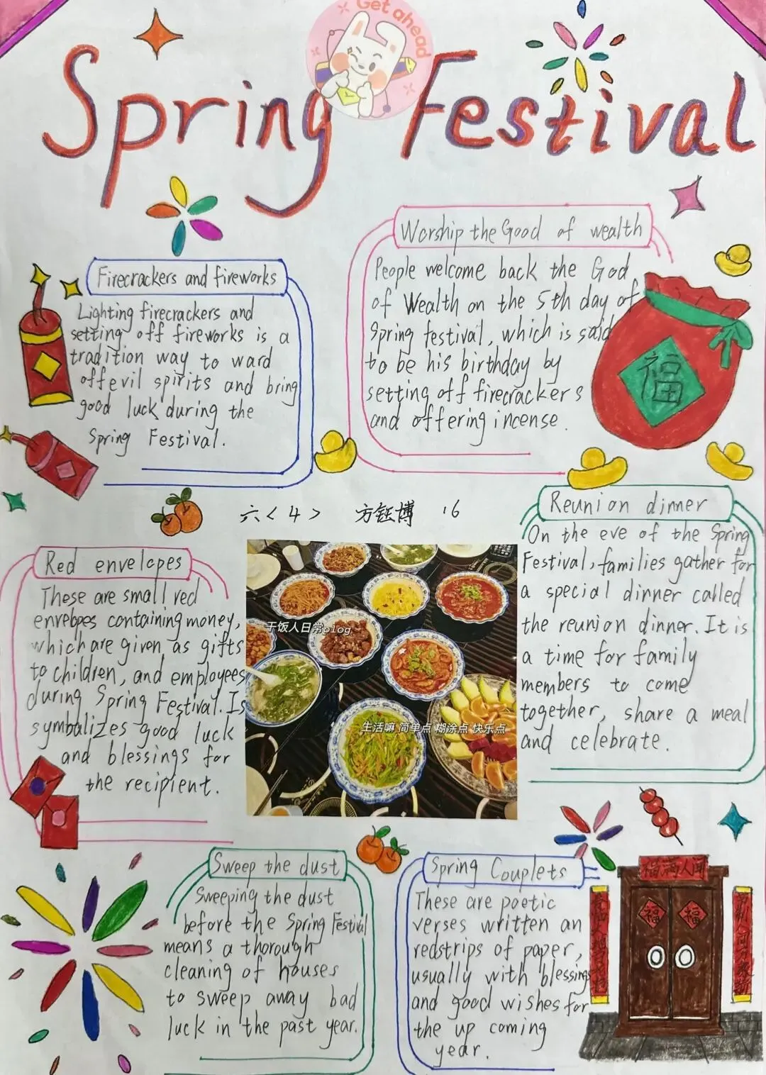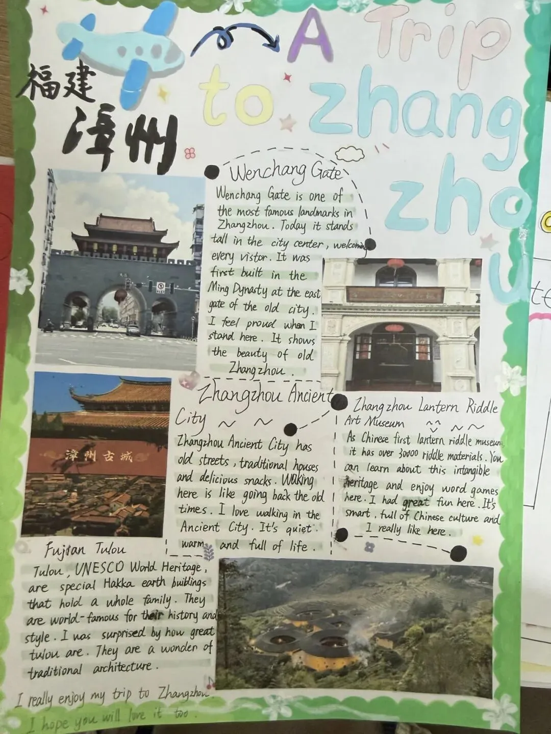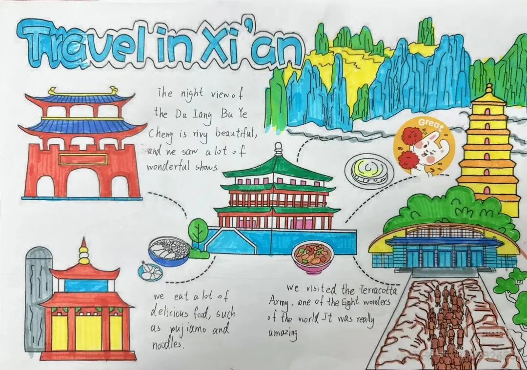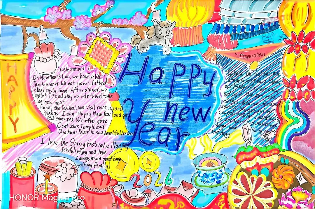 六年级的同学们则从My favourite food、A trip to...、The Spring Festival in Nanjing、Protect the Earth四大主题中选一自由创作,以更流畅的表达、更丰富的构思、更深刻的思考,呈现出别样的英语风采。