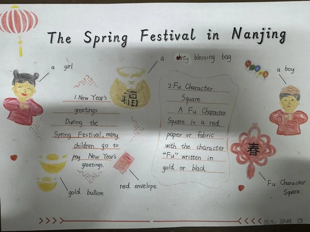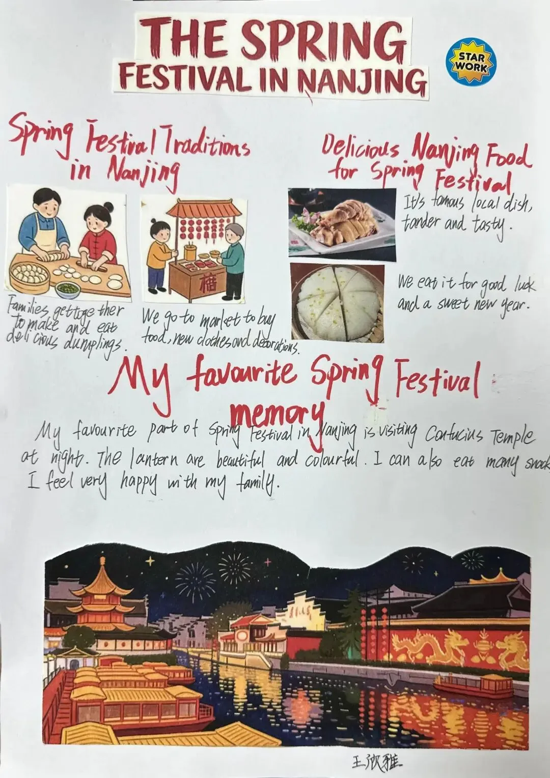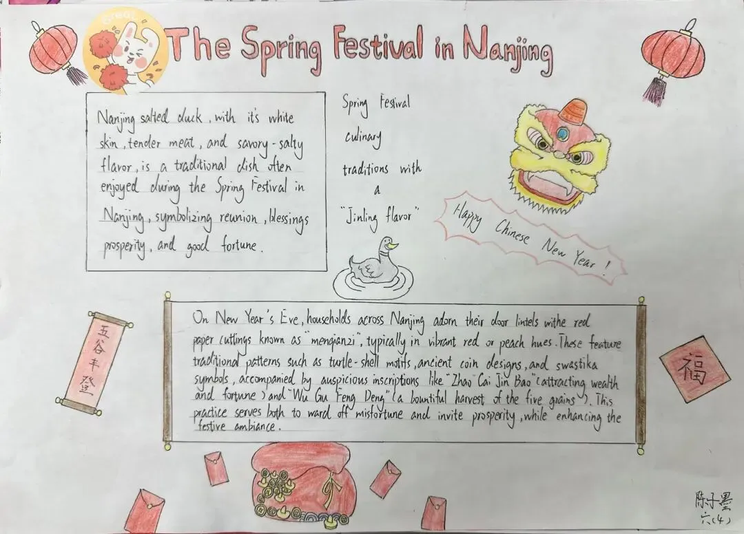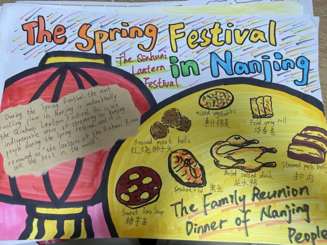 深耕The Spring Festival in Nanjing主题的同学们,深挖南京地域特色,用英语介绍盐水鸭、逛灯会等特色年俗,让传统节日与英语表达撞出奇妙火花。