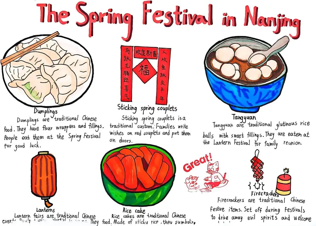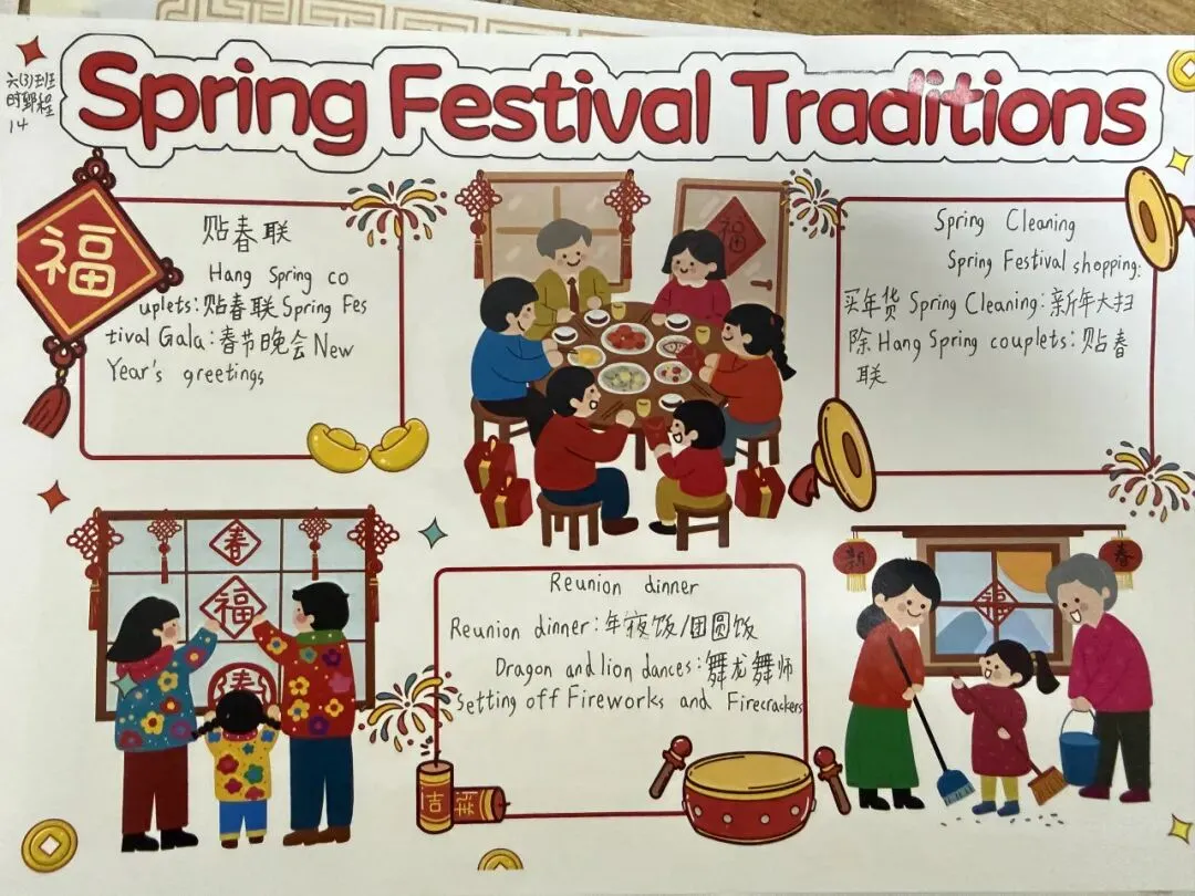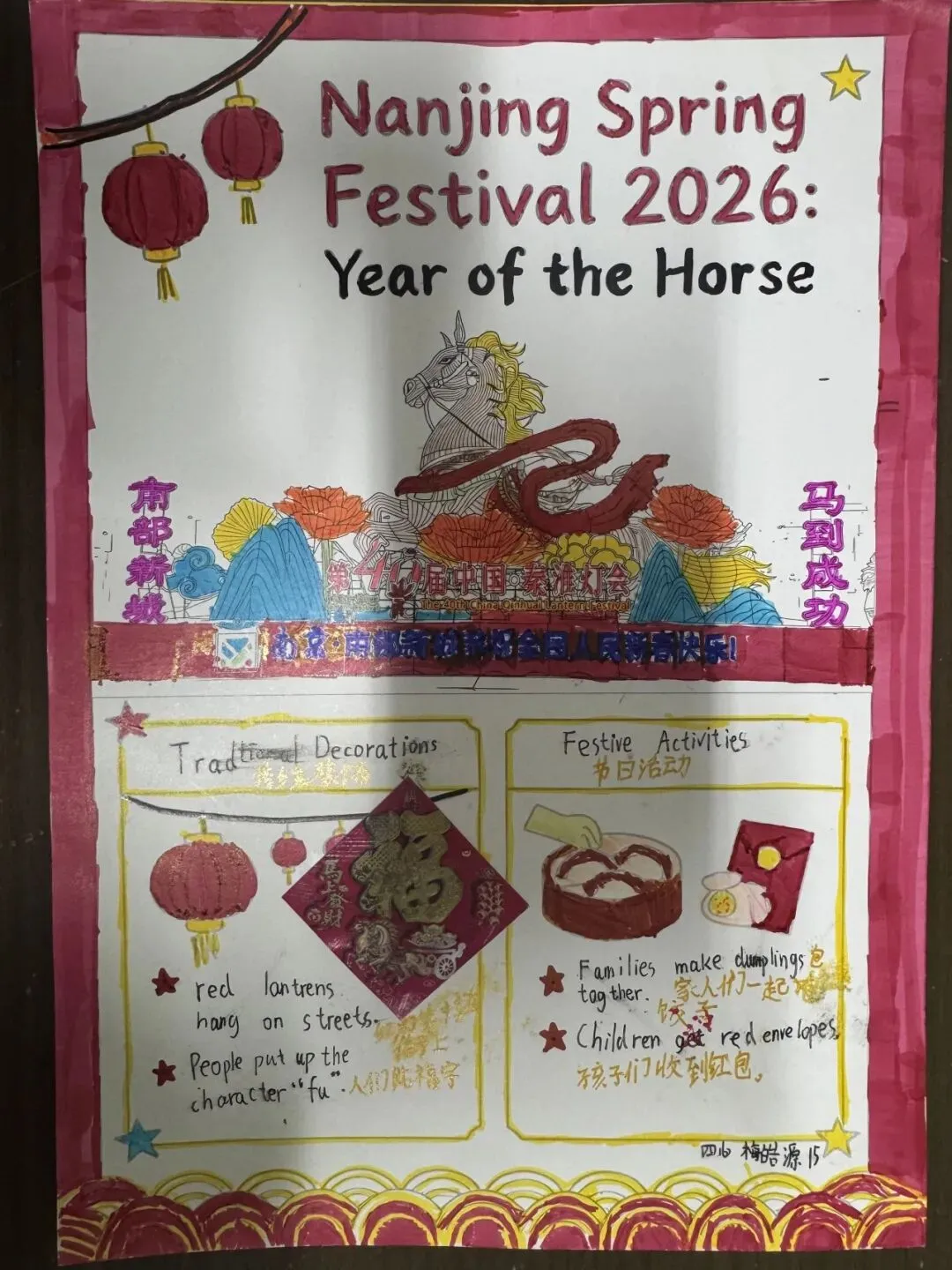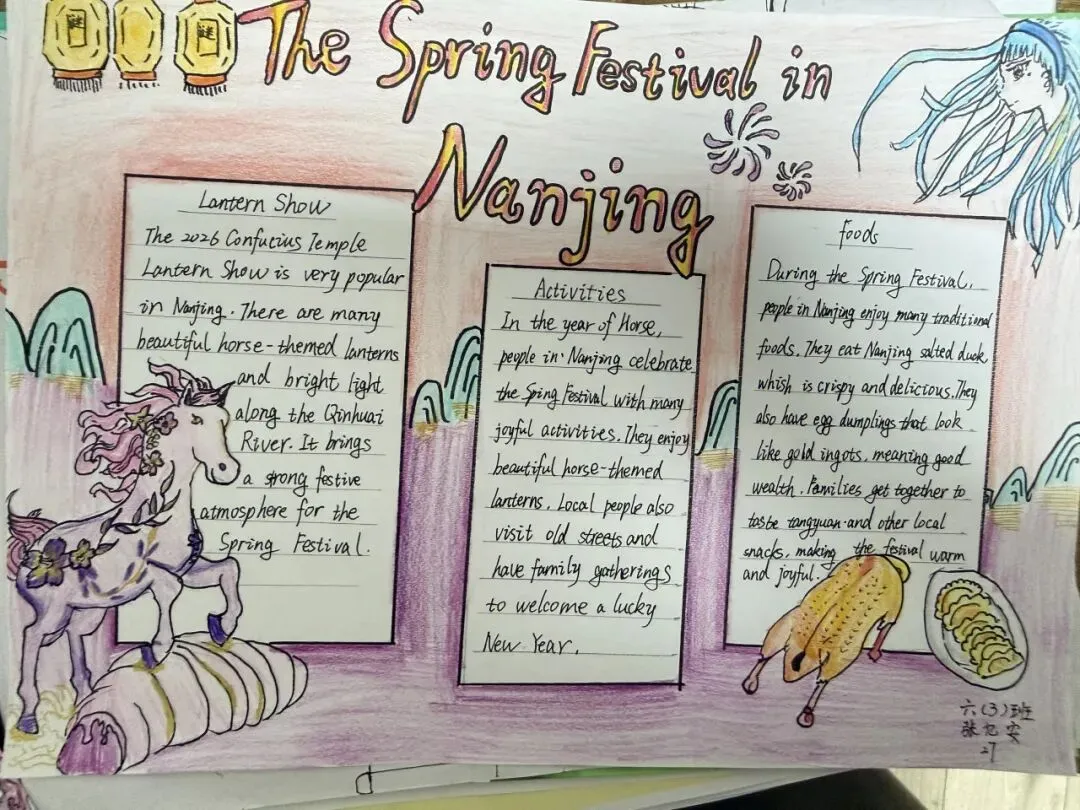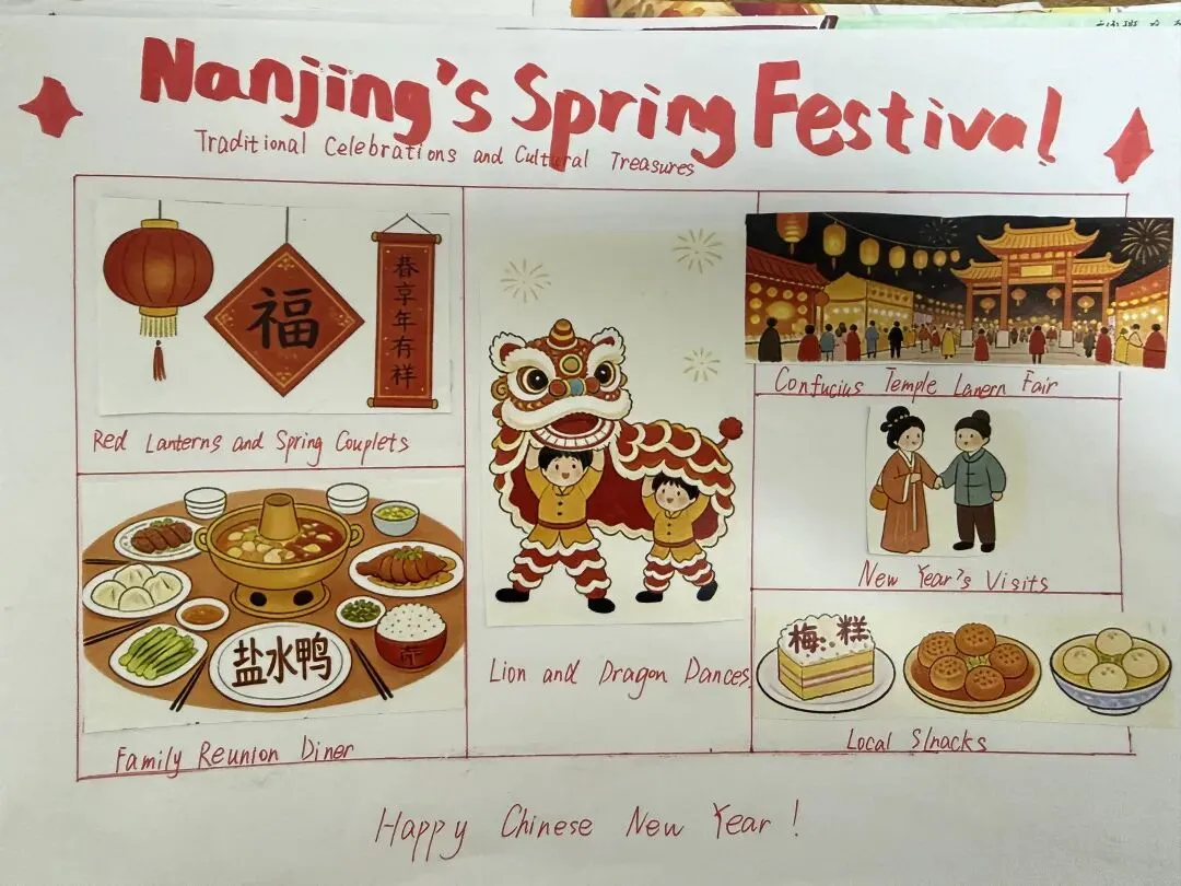 深耕The Spring Festival in Nanjing主题的同学们,深挖南京地域特色,用英语介绍盐水鸭、逛灯会等特色年俗,让传统节日与英语表达撞出奇妙火花。