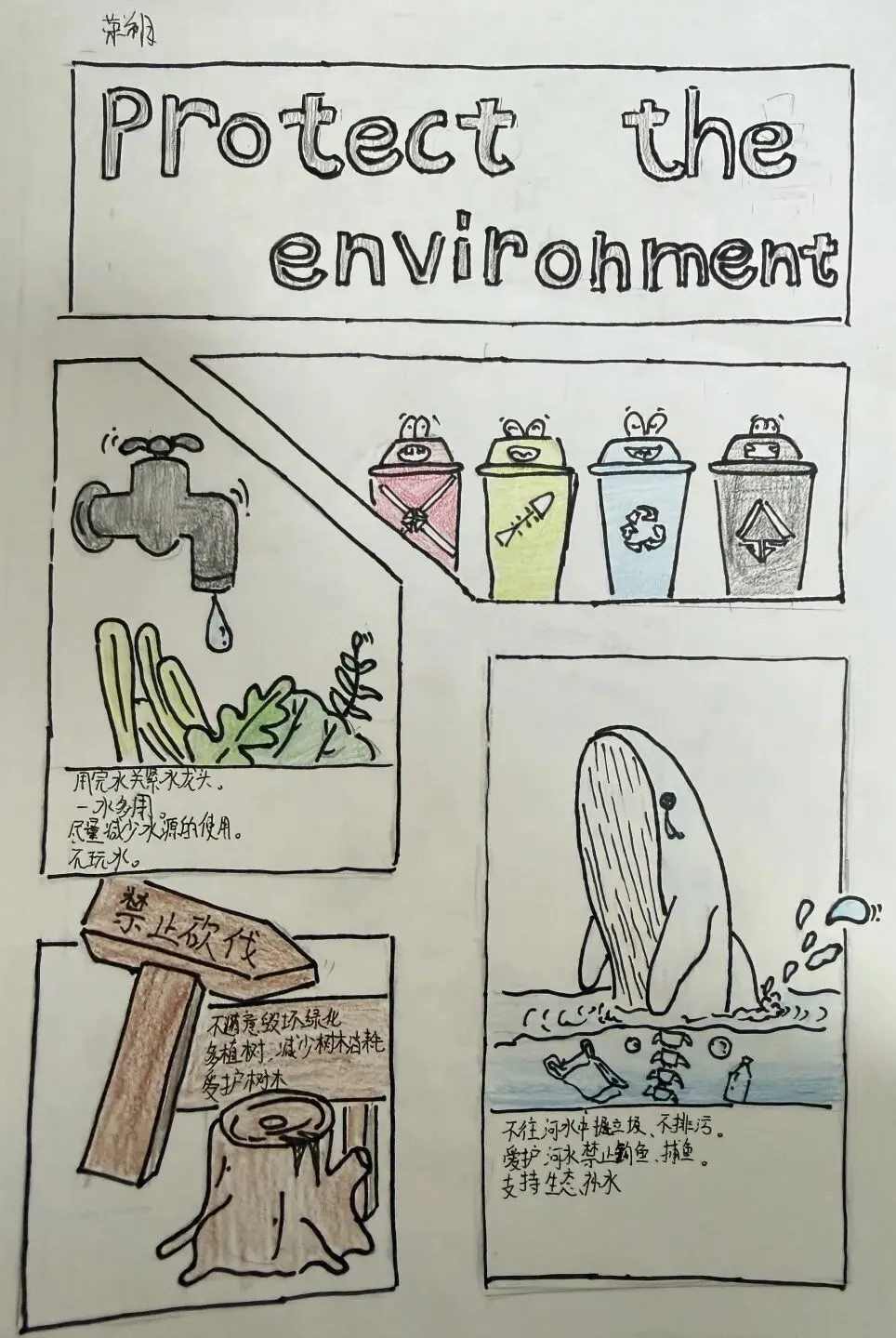 聚焦Protect the Earth主题的作品,孩子们以真诚的文字发出环保呼吁,倡导节约水电、垃圾分类,用英语传递绿色理念,尽显新时代少年的责任与担当。