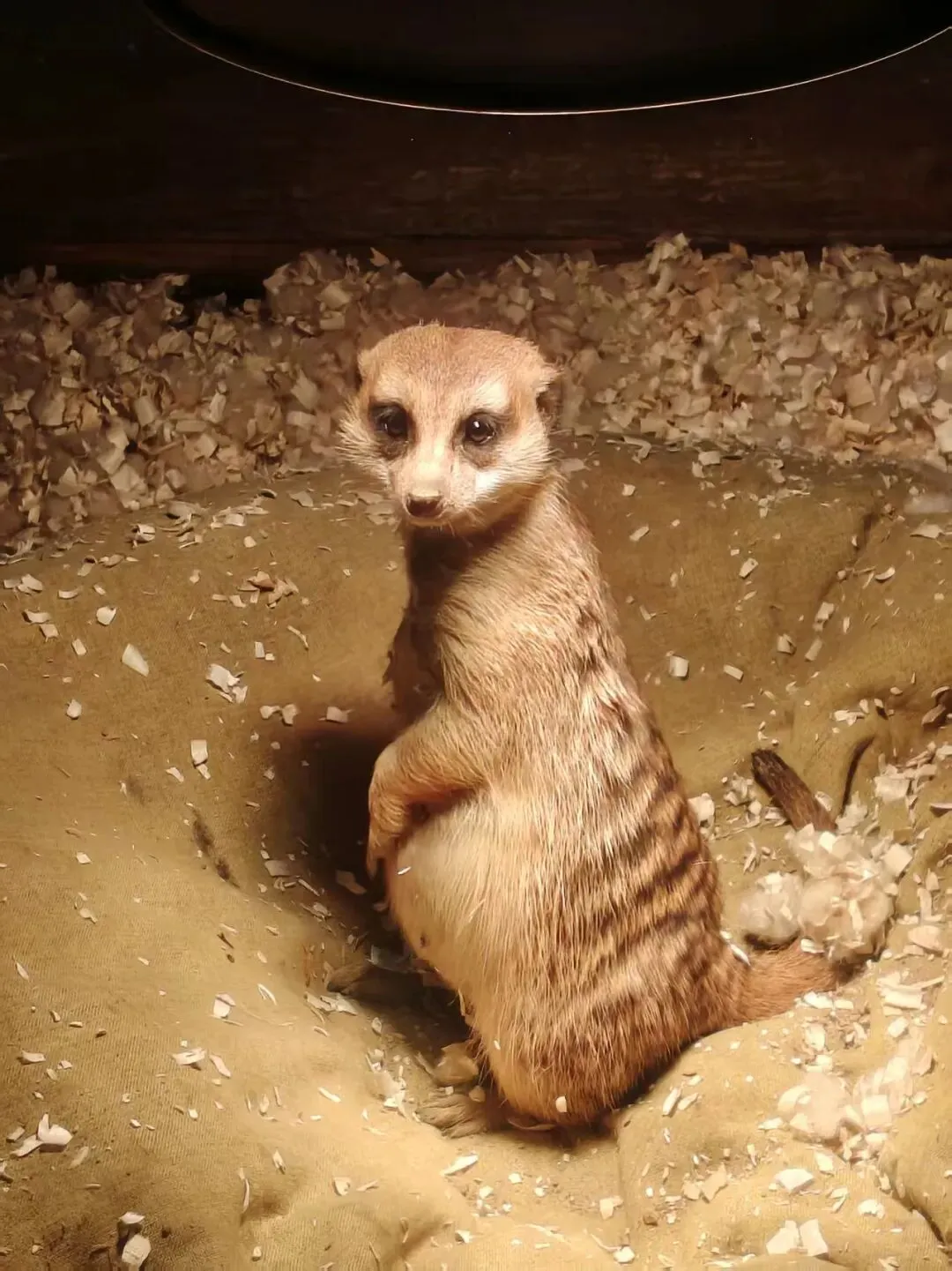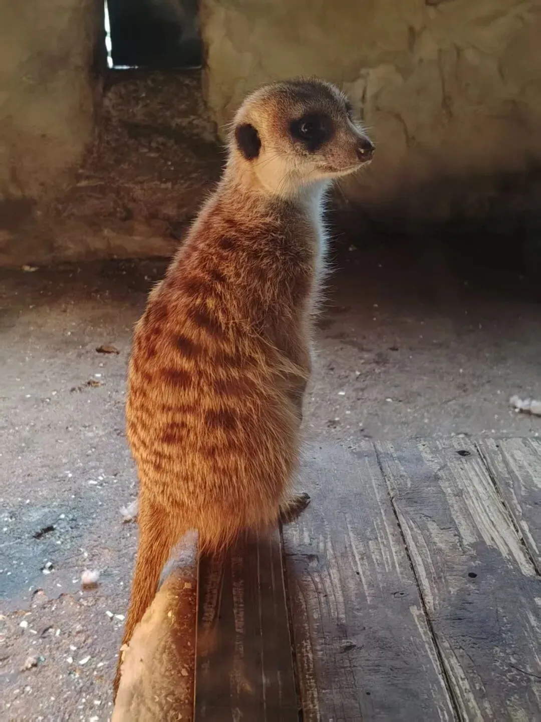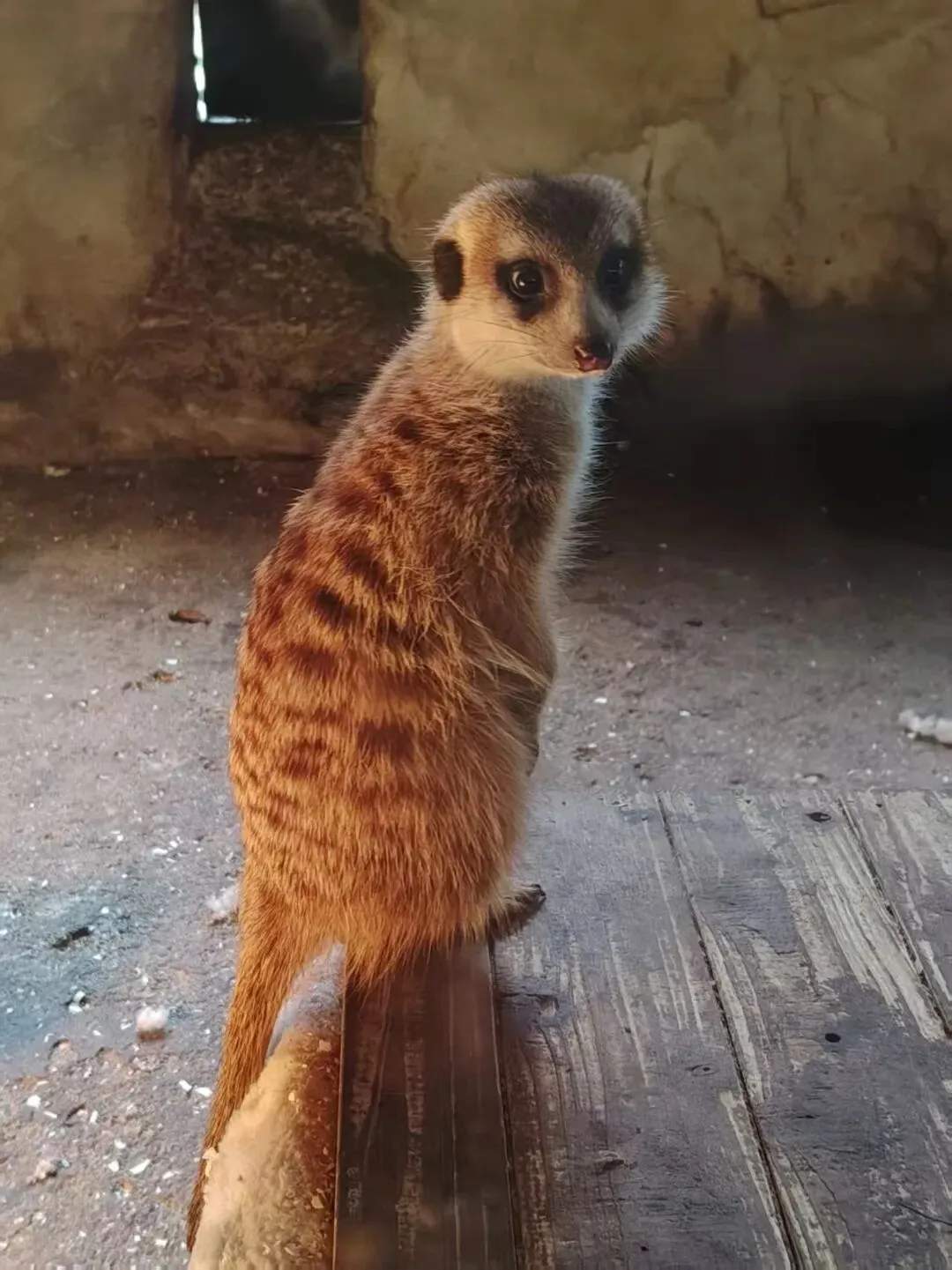 这小眼神,你就说萌不萌吧笔直的站在土坡上,黑眼眶像自带着墨镜,小脑袋转来转去,认真又呆萌!