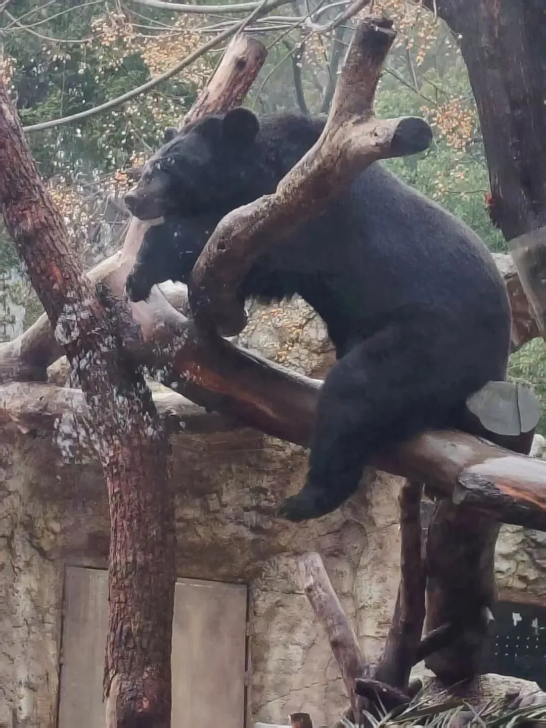 瞧这慵懒的姿态,简直懒的不要不要的 大懒熊慵懒的挂在树上,这小日子,过得悠哉悠哉的!