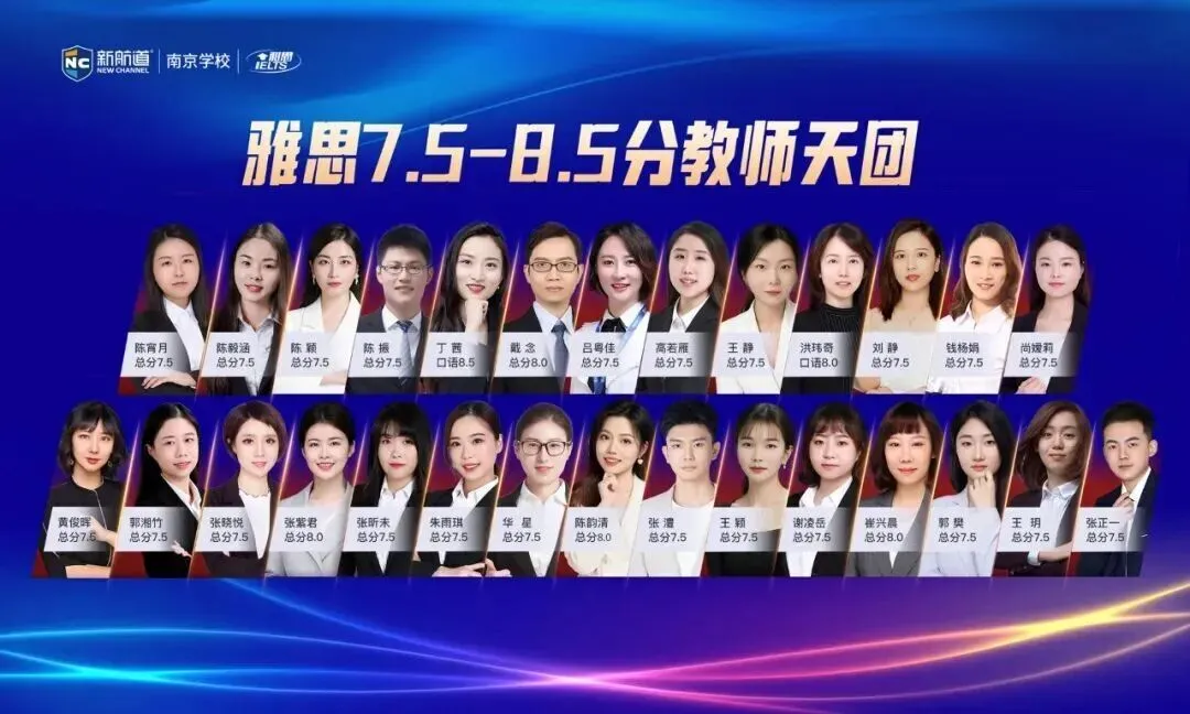 新航道南京学校拥有一支稳定而强大的雅思教学团队,官考成绩均达到7.5分至8.5分,80%左右海内外名校硕士。