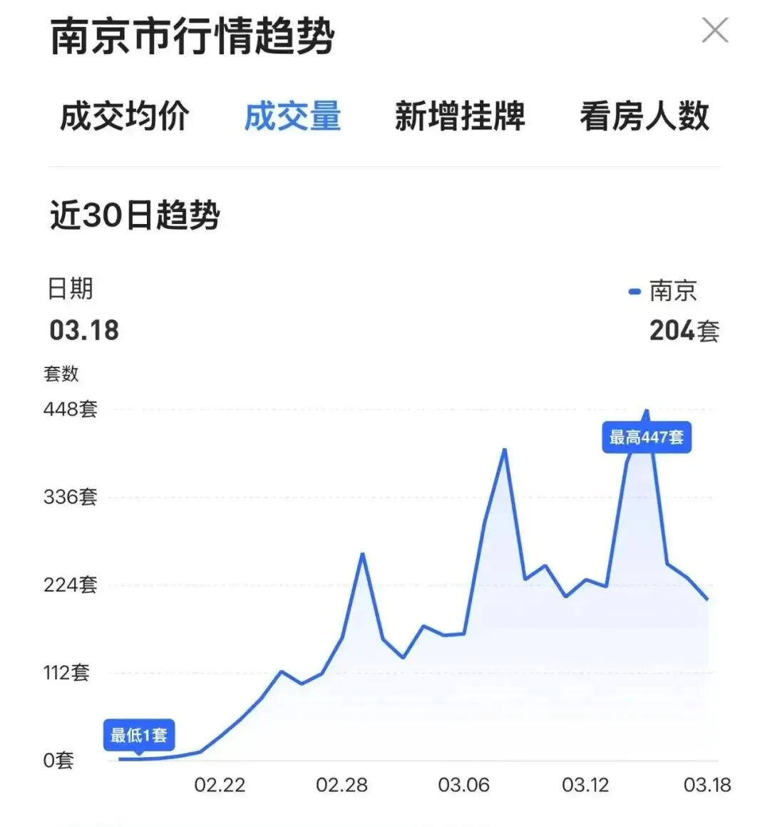 • 南京网上房地产:3月单日成交一度冲上447套,创近一年新高