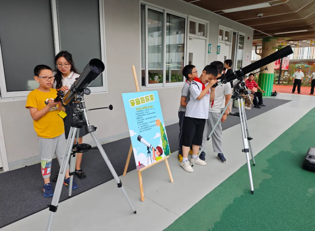 室内体育馆则摇身一变成为“科学游乐园”。生物观察角、天文趣探索、科普阅读等10余个科普摊位前挤满了“好奇宝宝”。学生们手持“集章卡”穿梭其间,每完成一个实验就能盖一个章。在科普阅读角,大家围坐一圈,分享“我最爱的科普书”,答题赢书签的活动让阅读变得趣味十足。“我的集章卡都盖满啦!”二年级的小张同学举着徽章,怀里塞满了“战利品”,脸上洋溢着满足的笑容。