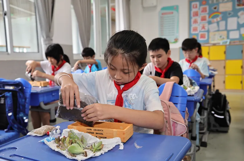 与此同时,教室也化身“科学工坊”,两场妙趣横生的科普讲座火热进行。在“天气预报瓶”手作课上,学生们化身“小小科学家”,用玻璃瓶、彩虹珠和安全化学试剂DIY专属气象站,通过观察液体变化来预测阴晴。而在“园艺大讲堂”绿植课堂上,绿植达人分享多肉养护知识,并手把手教大家种出“桌面小森林”,多肉在学生们指尖绽放出勃勃生机。