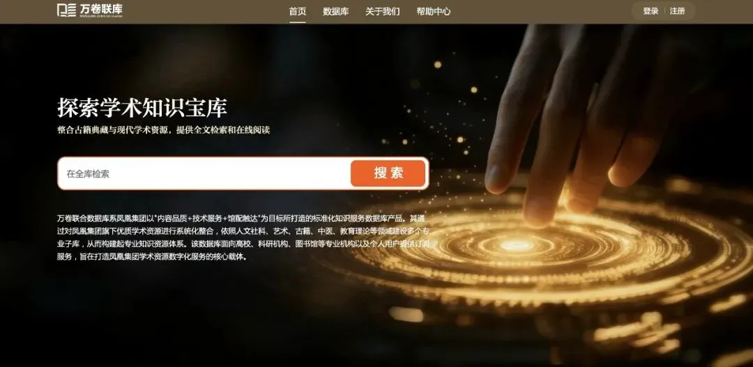 馆藏会首日将举办“万卷联合数据库”发布仪式,重磅推出由凤凰出版传媒集团自主研发、独立运营的学术资源服务平台。该数据库依托集团丰富的学术图书资源,秉承“内容壁垒+技术服务+馆配触达”的理念,系统整合社科、古籍、教育、科技、艺术、文学等领域独家精品资源,旨在为高等院校、科研机构及图书馆等专业人士提供标准化知识服务。核心资源均未授权第三方,保证资源独有性。