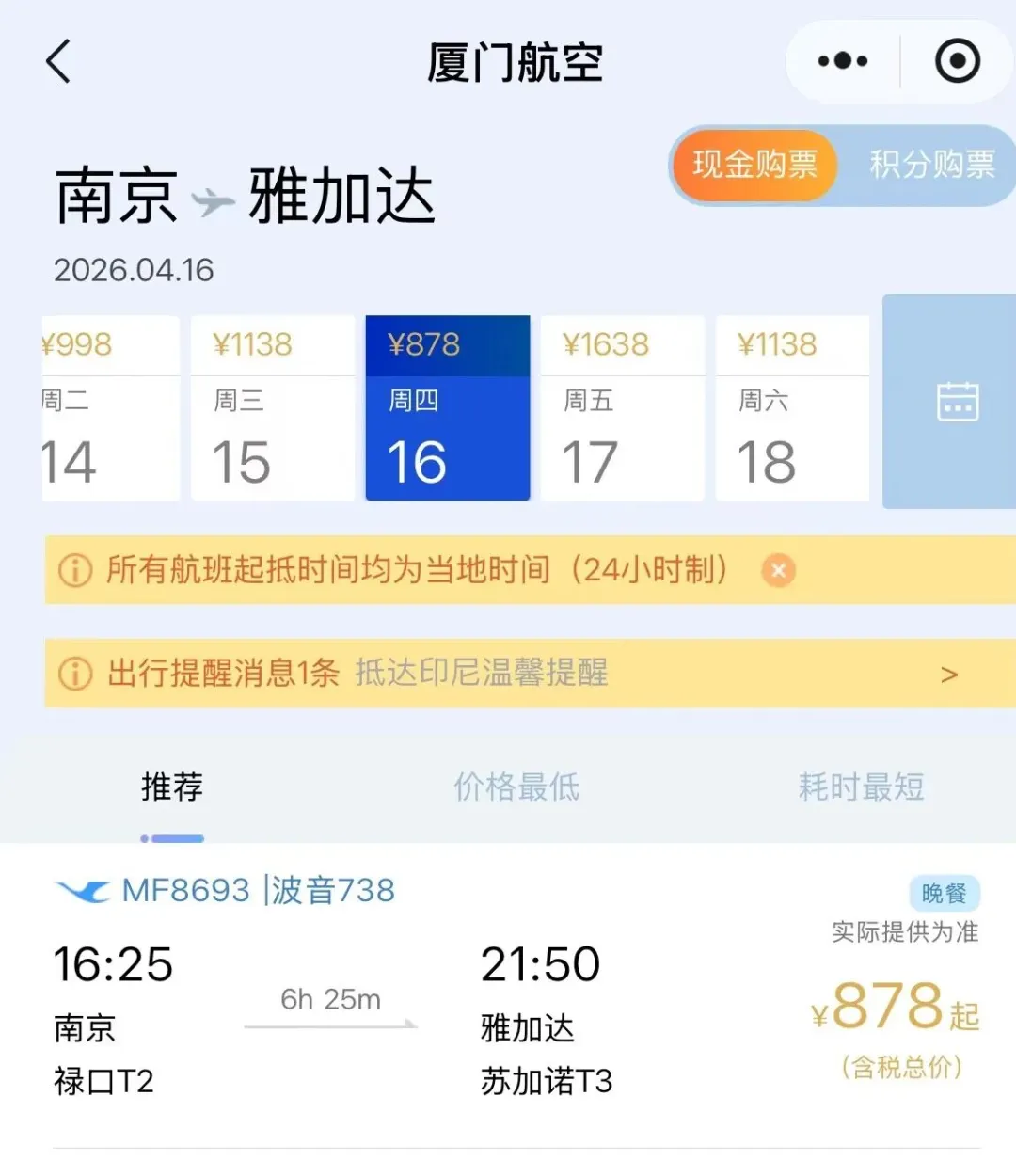 记者今天在厦门航空小程序搜索查看