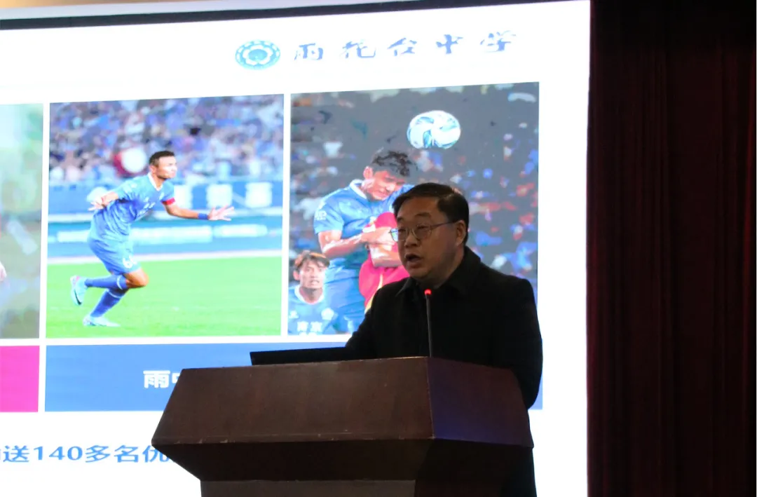 在校园足球工作经验分享环节,雨花台初级中学杨波副校长、雨花台中学王波副校长分别分享了校园足球建设与人才培养经验,充分展示南京市校园足球冠军学校的特色做法与育人成果。