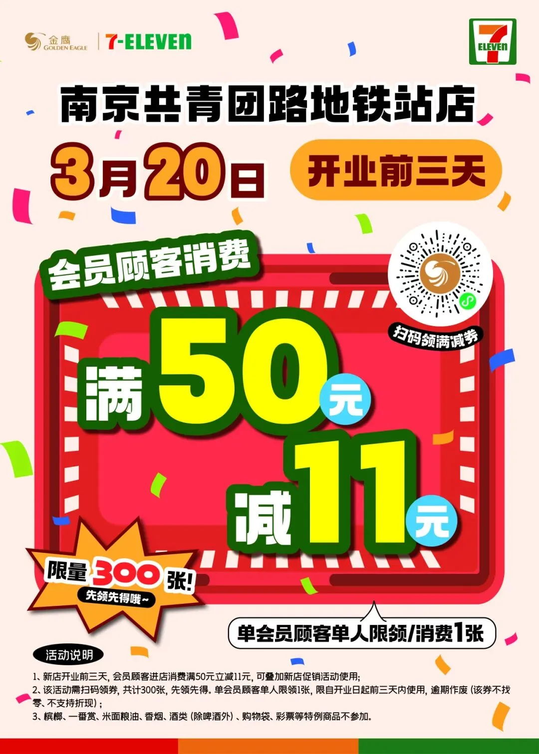 为庆祝双店开业,开业前3天凡在以上两家南京地铁·7-Eleven门店消费,即可享受新店福利: