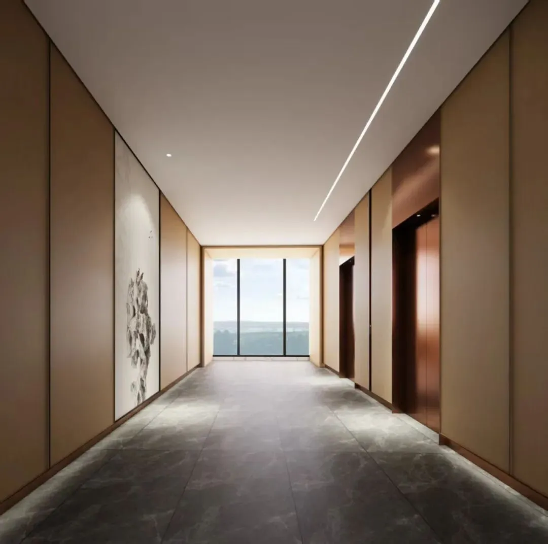 过道作为公共与私密之间的缓冲界面,通过高度克制的界面处理与节奏控制,使空间完成情绪上的过渡。行走其间,环境逐渐安静,人的节奏自然放慢。