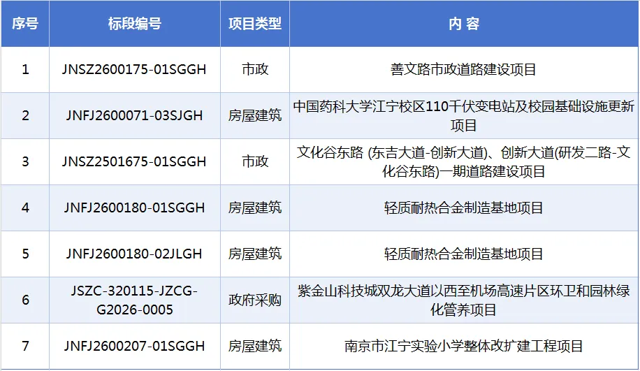 >南京市公共资源交易中心江宁分中心开标计划(2026.03.23-2026. 03.27)
