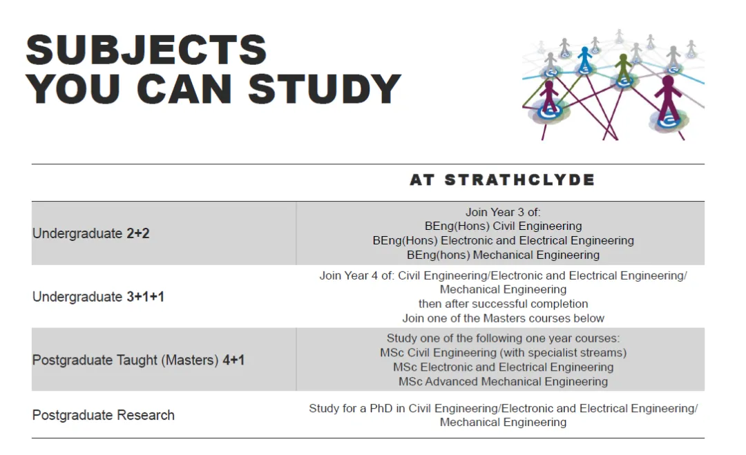 我校本科毕业学生,获取学士学位证书后,前往思克莱德大学学习1年,满足条件的学生获取英方硕士学位