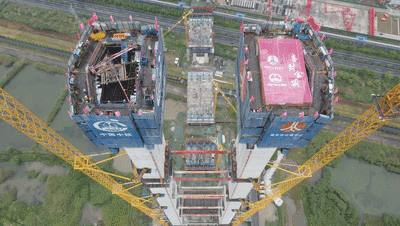 在塔柱施工中,为确保混凝土能顺利泵送至200多米的塔顶,项目建设团队通过优化季节性配合比,在保证混凝土强度要求、降低水化热的同时,使混凝土各项性能指标达到最优,确保完成高塔混凝土垂直输送。