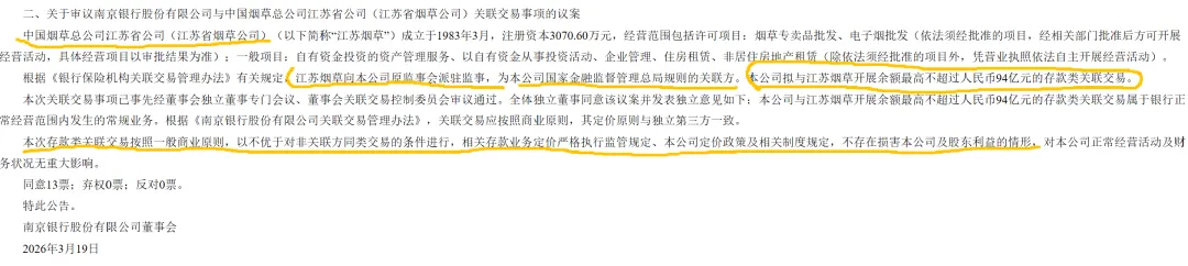 这可不是普通的存款业务,而是“关联交易”。啥意思呢?就是江苏烟草公司是南京银行的股东,持股3.81%,而且还往南京银行监事会派了人。简单说,就是“自家人跟自家人做生意”。