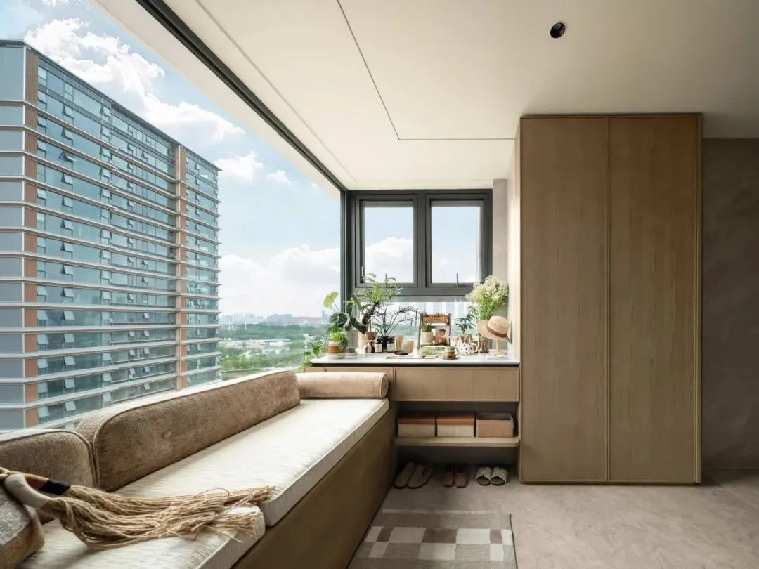 市场罕见,采用超大的玻璃采光立面,消融自然与电梯厅的边界,同时兼具收纳属性和实用性。室内装修大地色系,贴近自然,更显美感