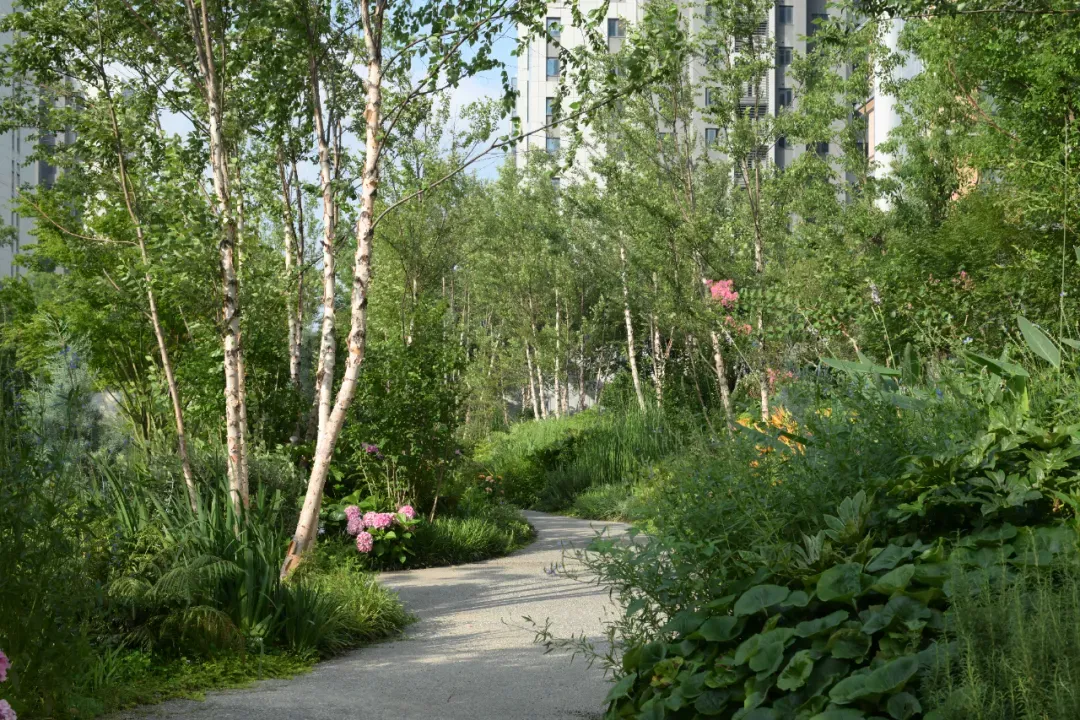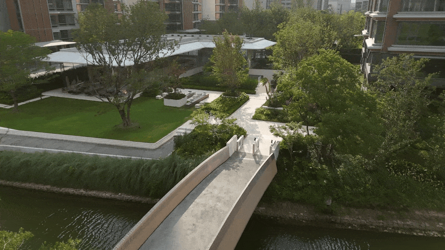 弱化边界:临水区域摒弃传统围墙,借助河道天然屏障,实现自然与景观无界融合。