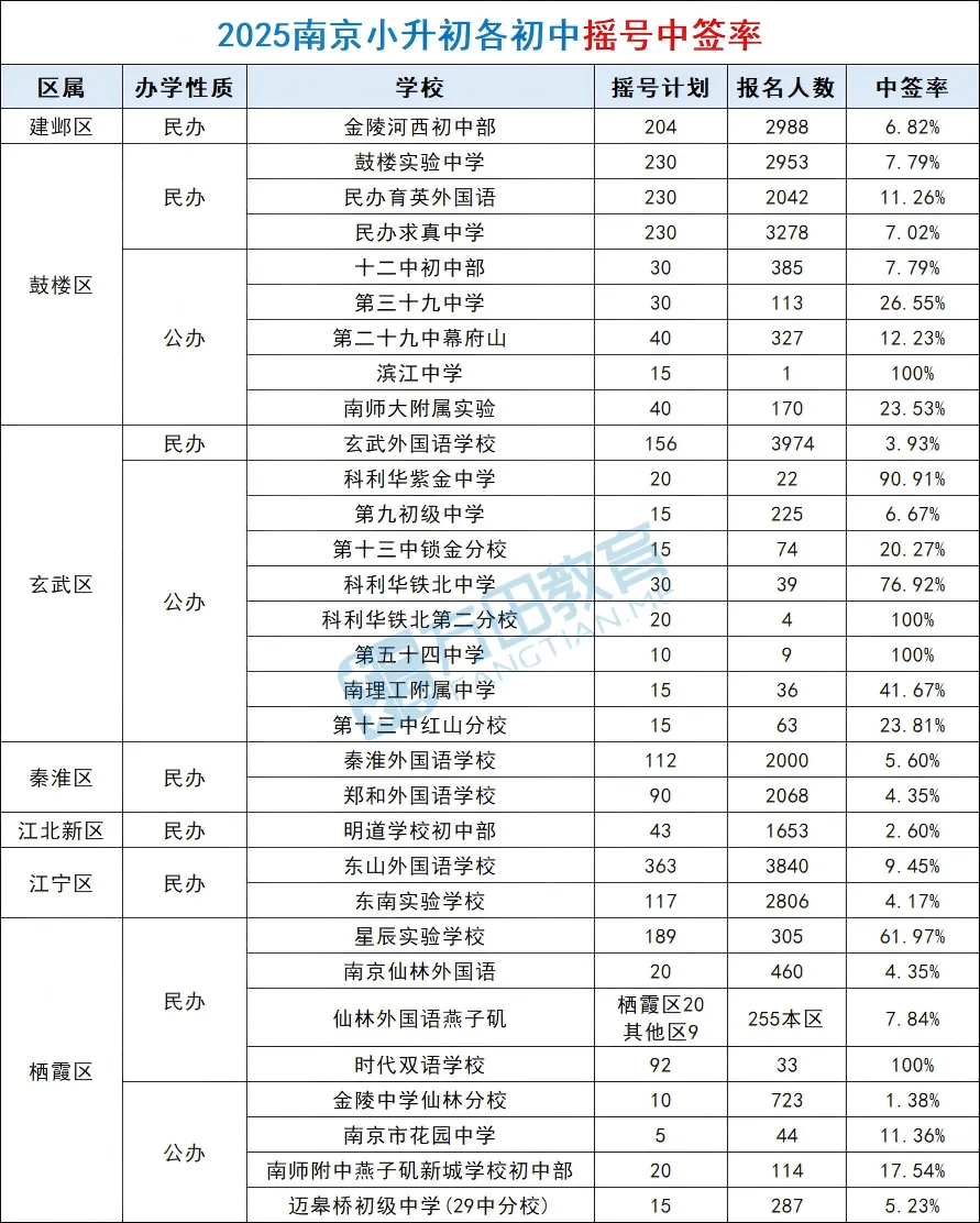 2025年南京小升初部分摇号情况汇总,大家可以参考下~