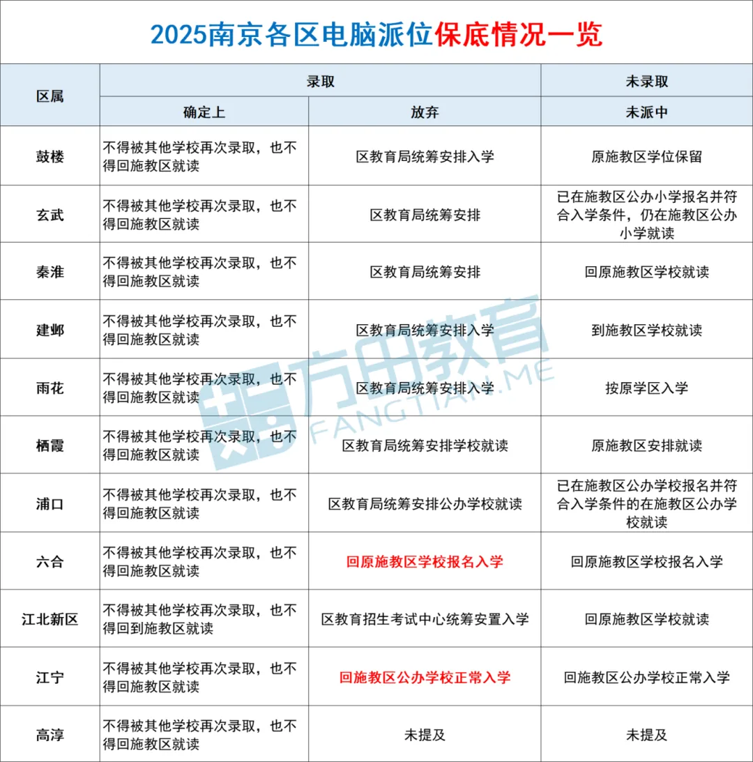 注意!除了江宁和六合区回到原学籍,其他区都是教育局统筹安排。