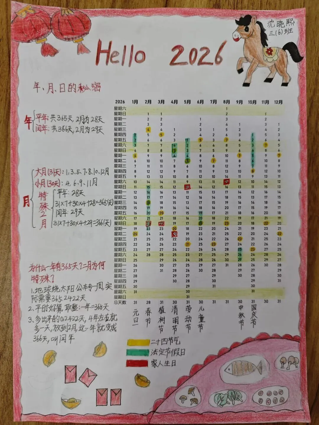 三年级同学巧手制作“创意年历”,在年月日的奥秘中规划新年。
