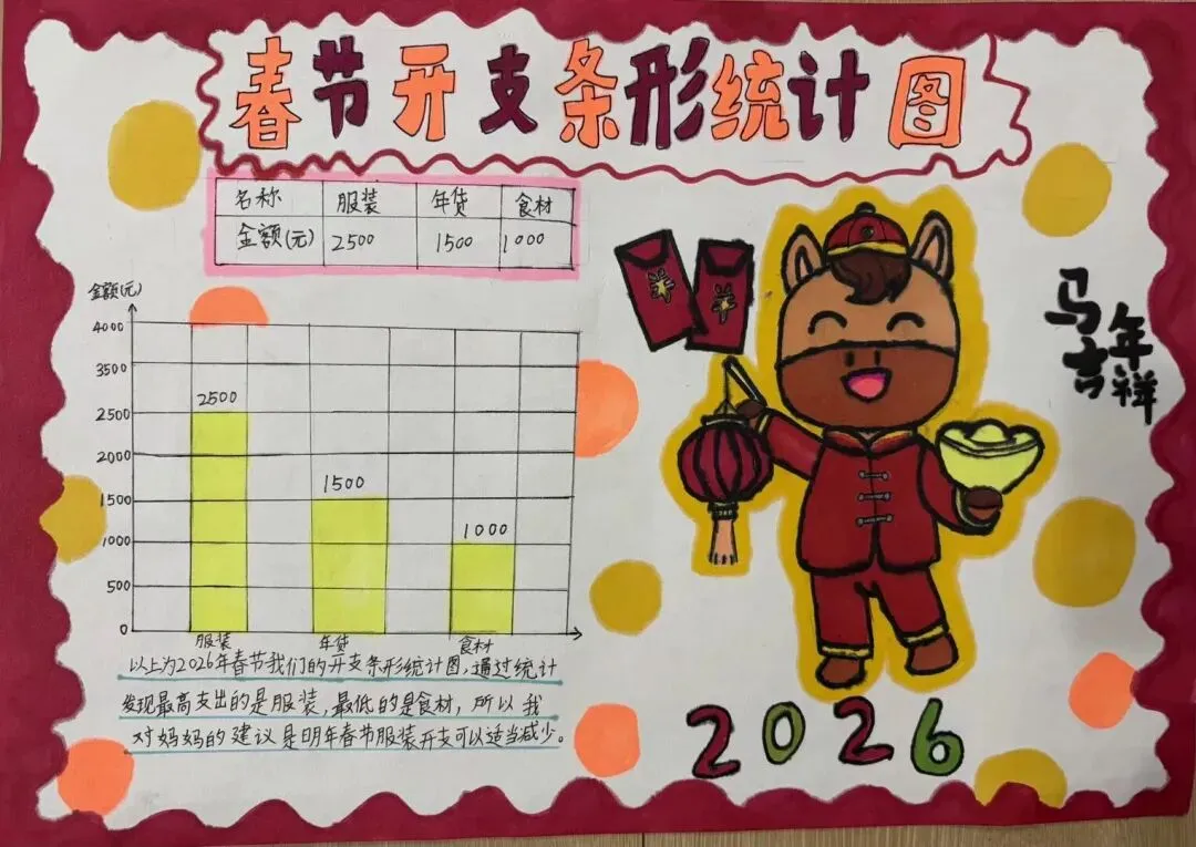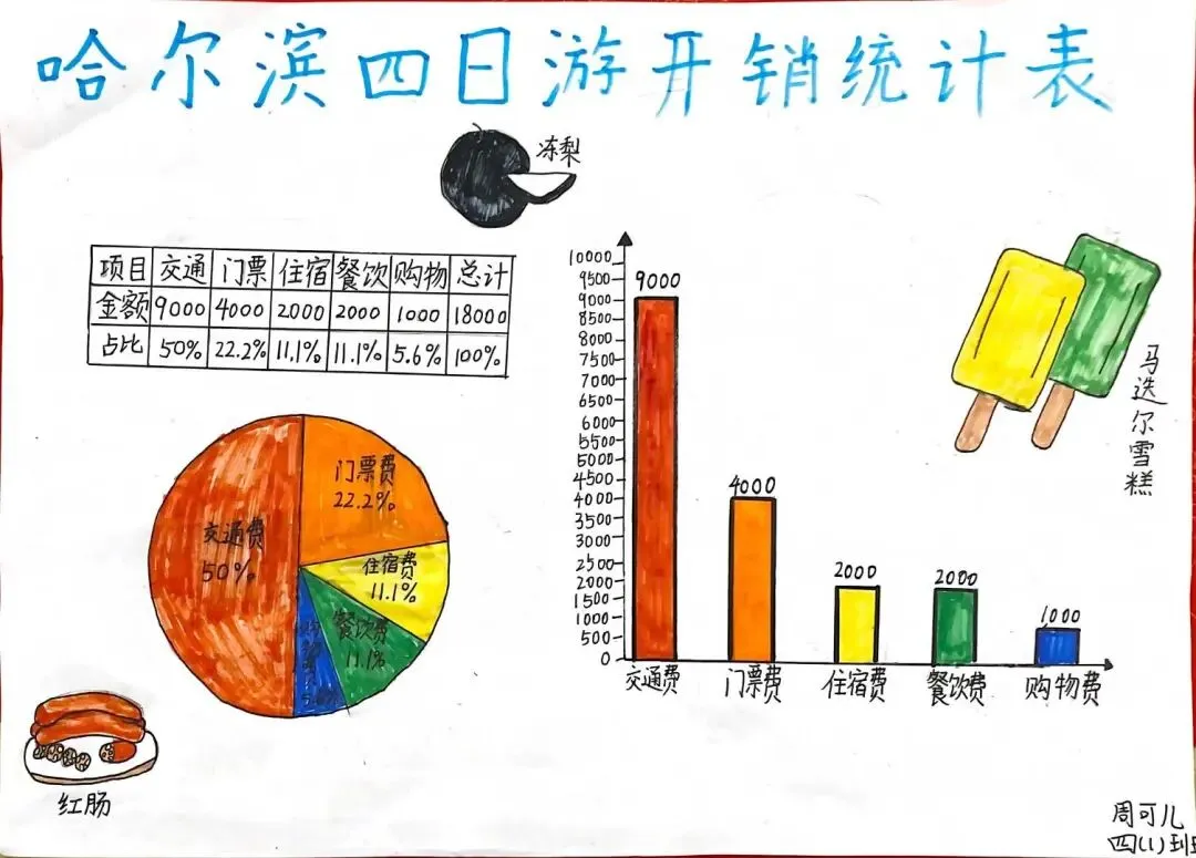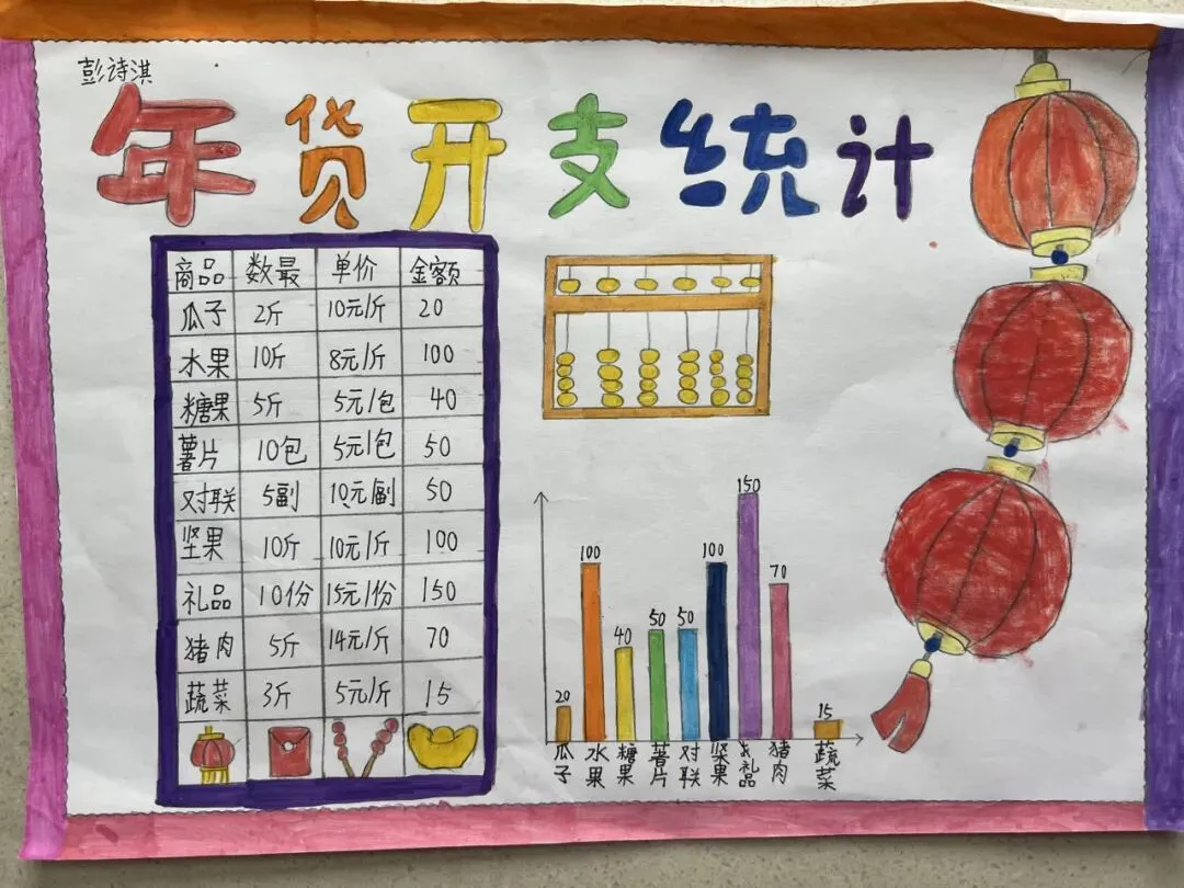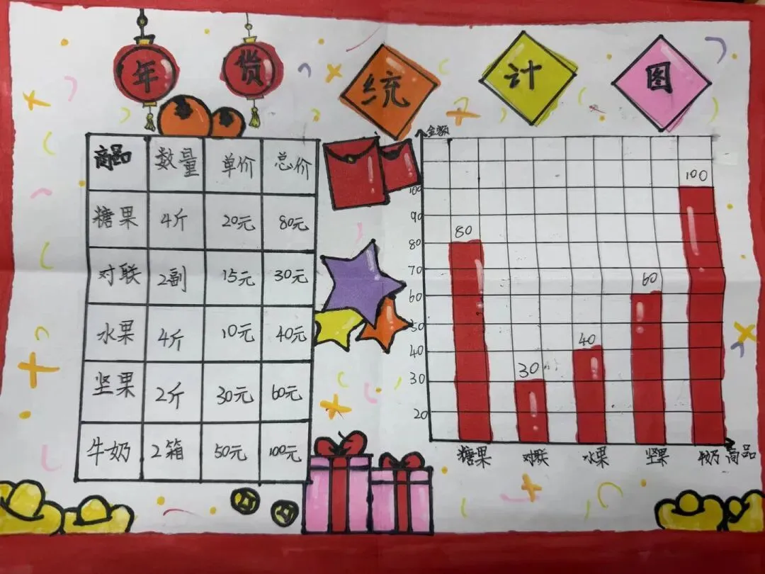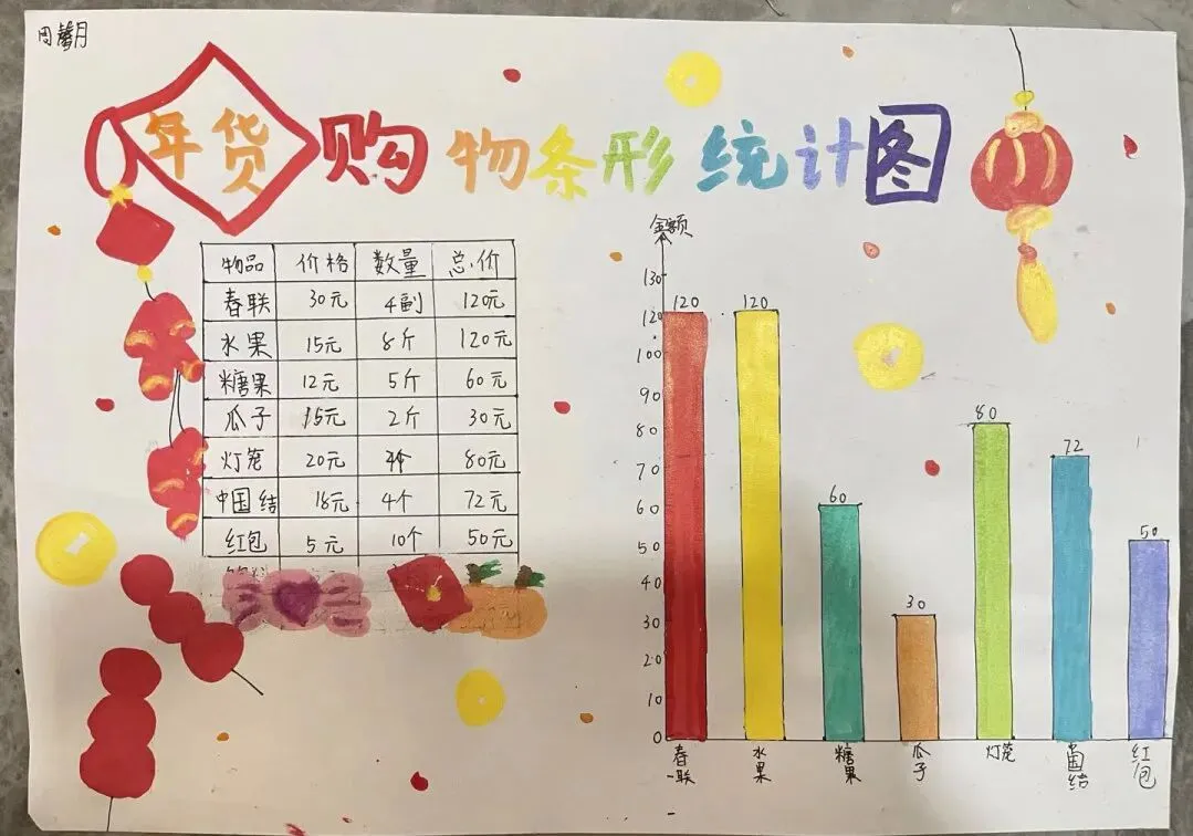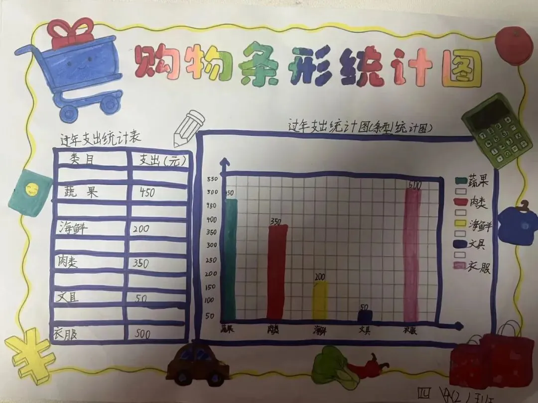 数学学习不止于课本,更在生活中。此次生活实践,数学实践作品成为一大亮点。从购物记账到路线设计,从统计图表到几何模型,孩子们在动手实践中将数学知识转化为解决问题的钥匙。