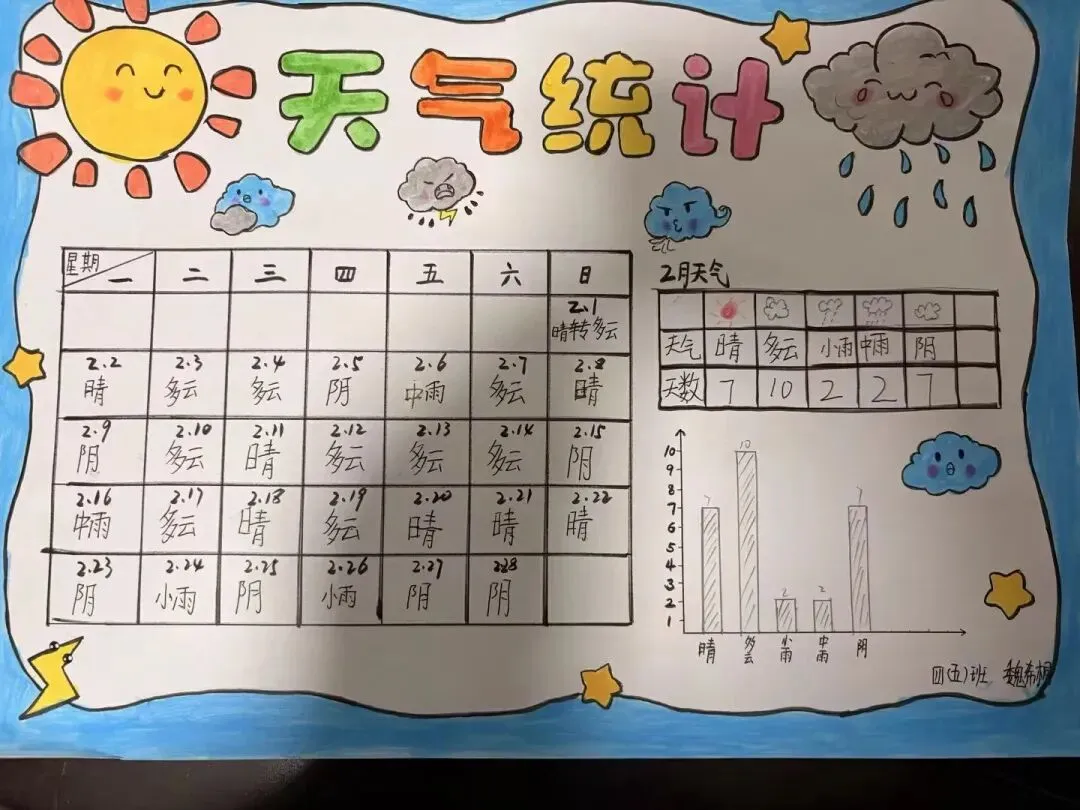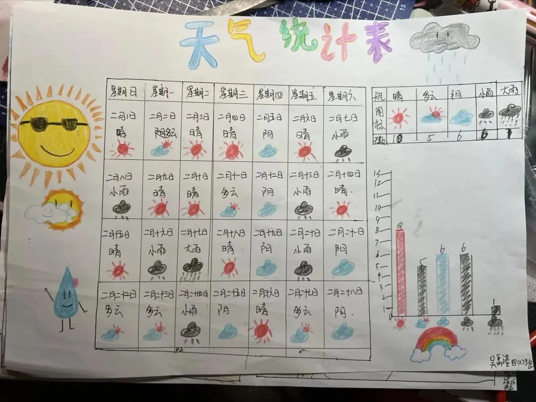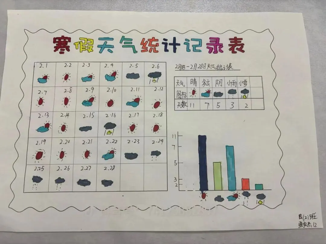 四年级“数据小侦探”们则绘制了生动的统计图,理性分析了假期生活。