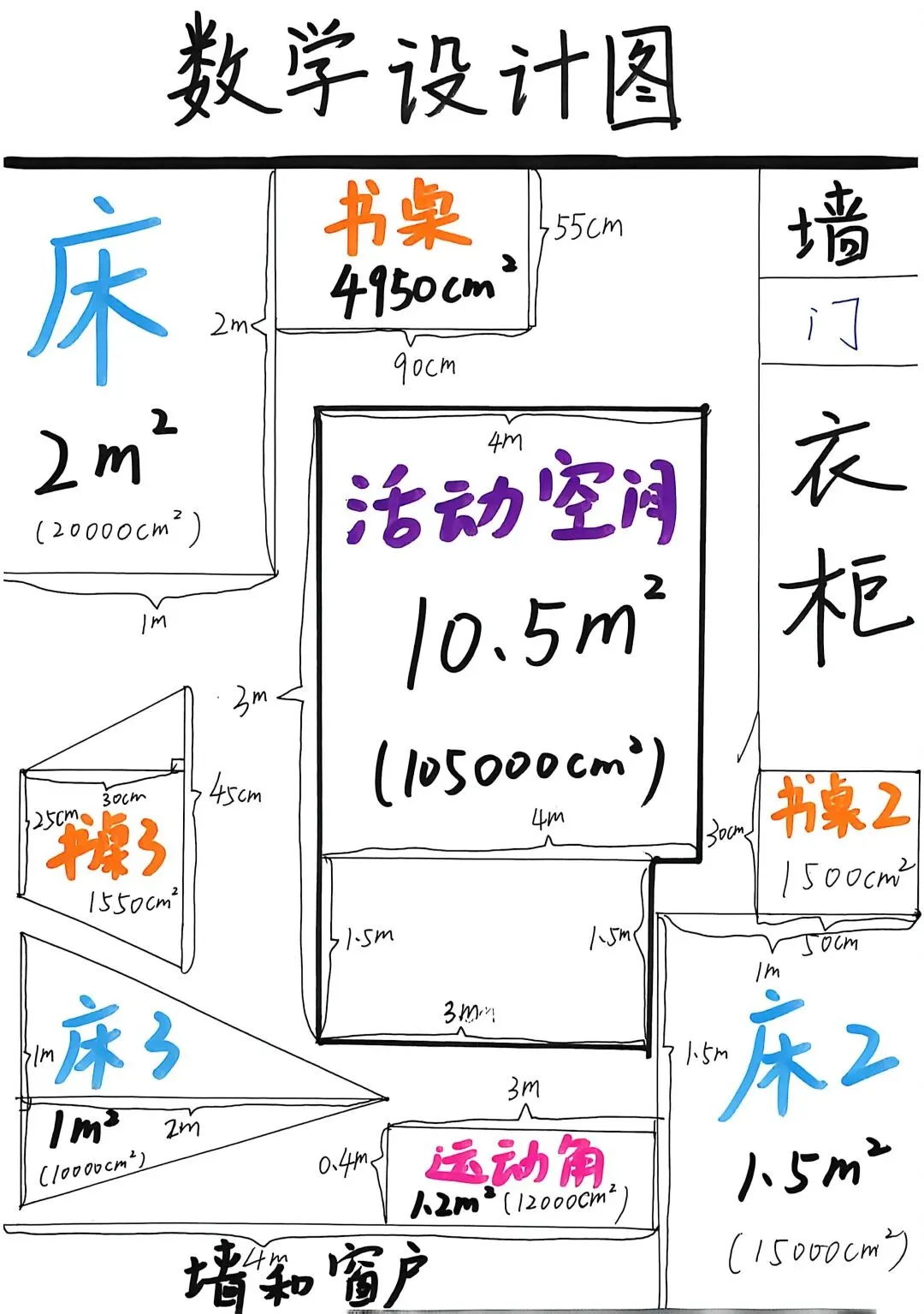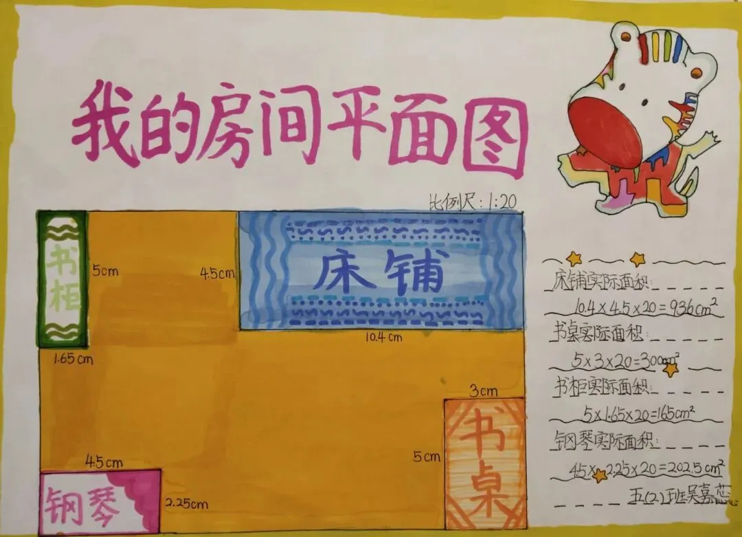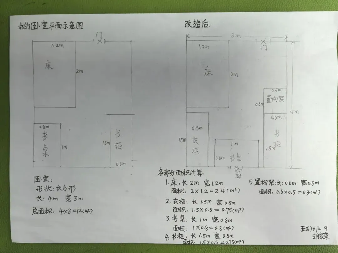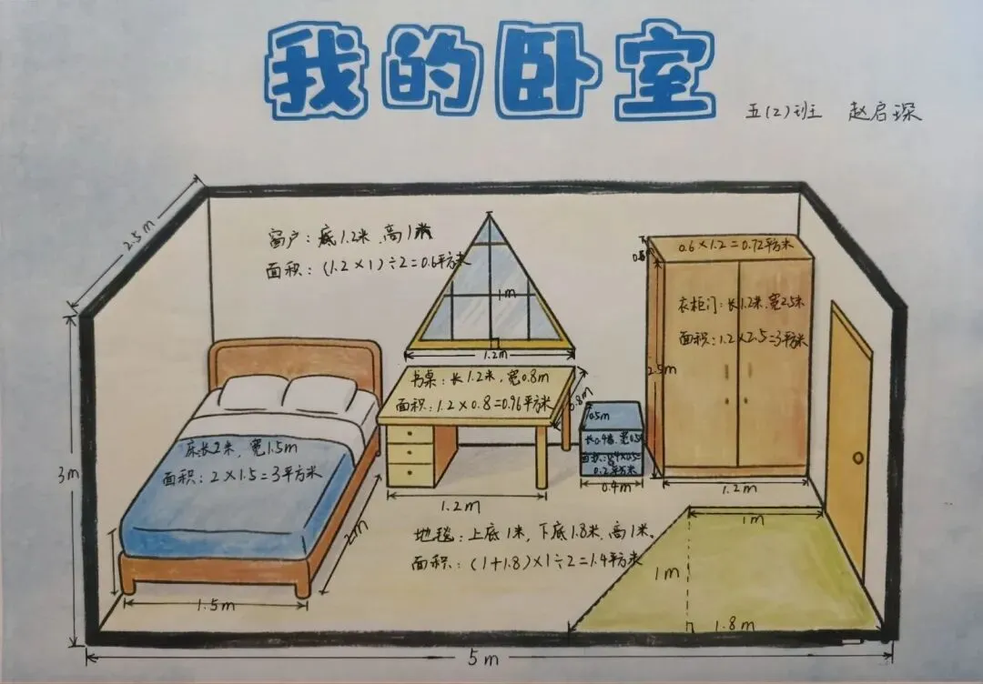 五年级同学化身“空间设计师”,绘制卧室改造平面图,精准测算面积。