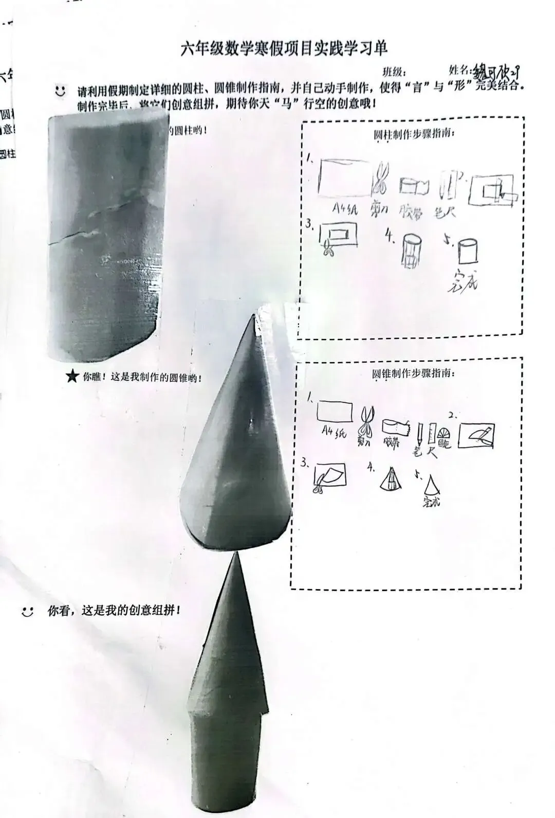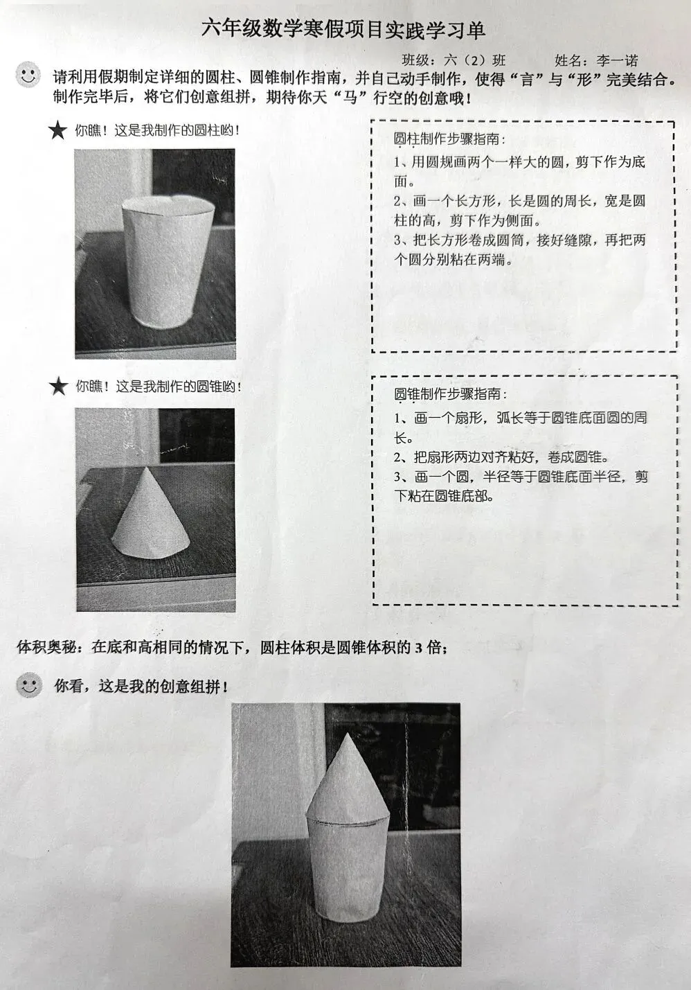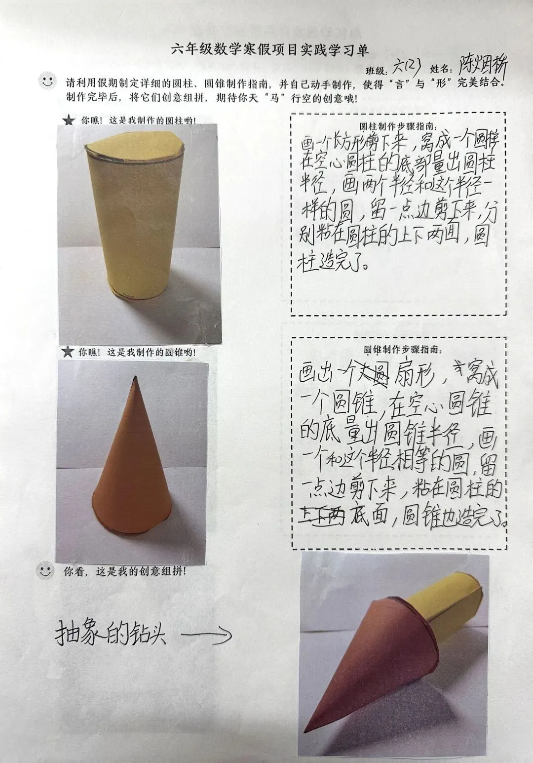 六年级的“空间探索者”动手制作圆柱与圆锥模型,通过实验验证体积奥秘。