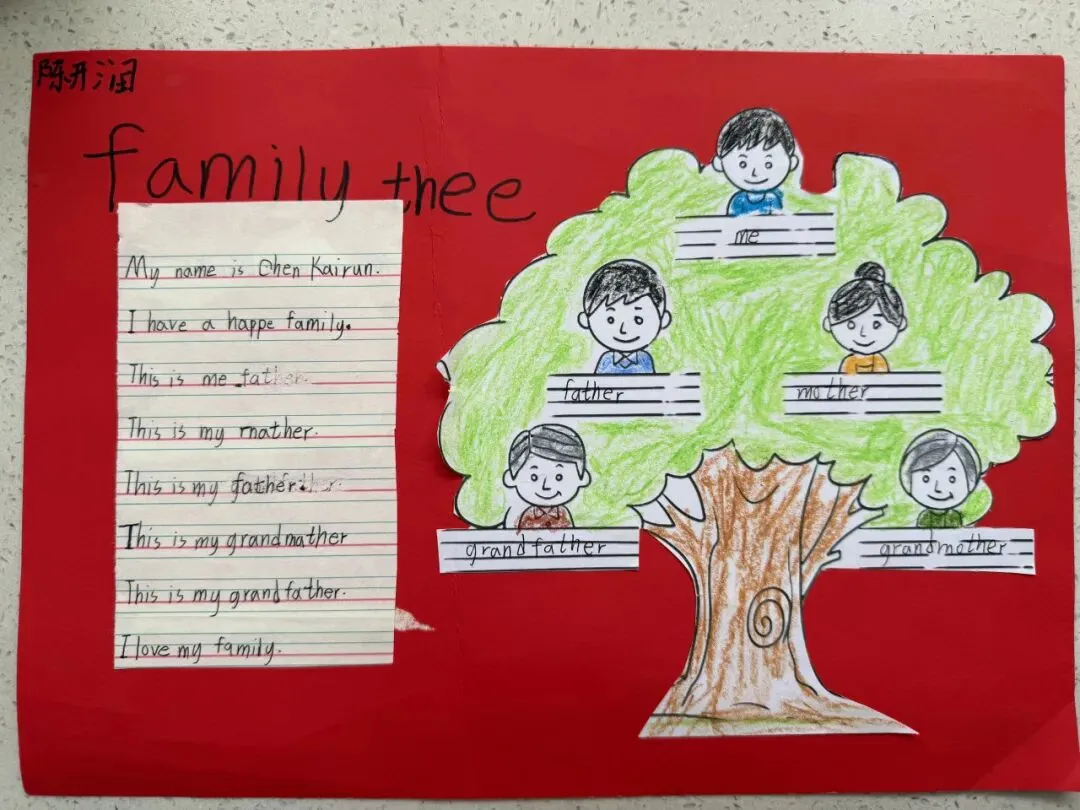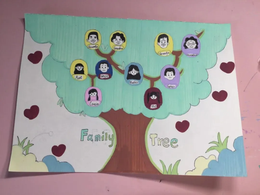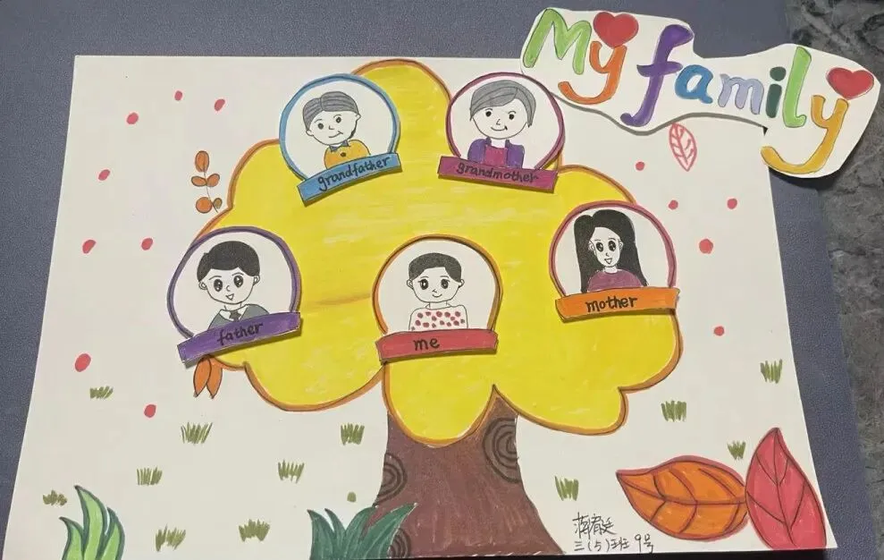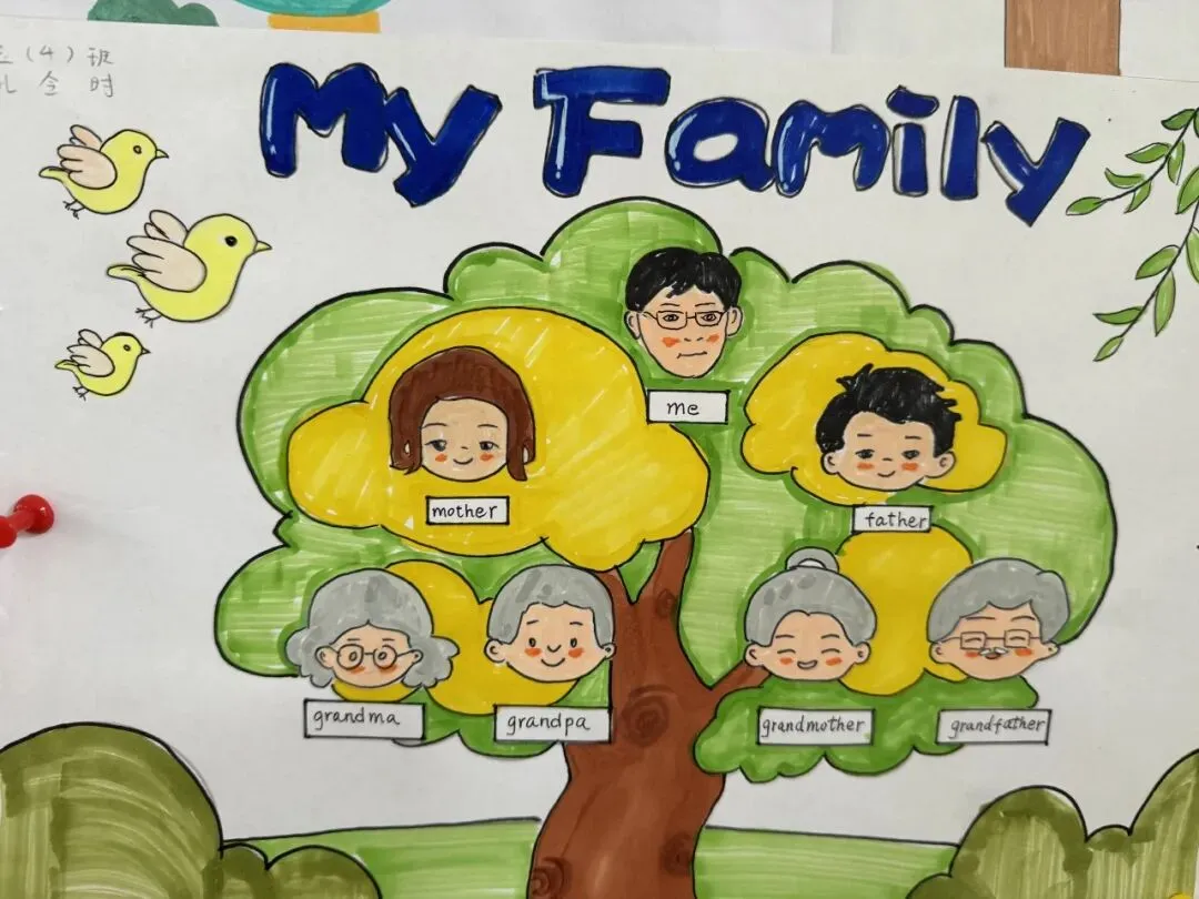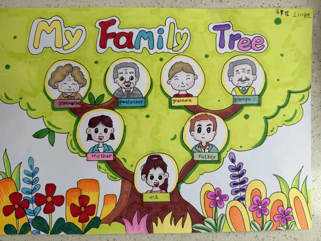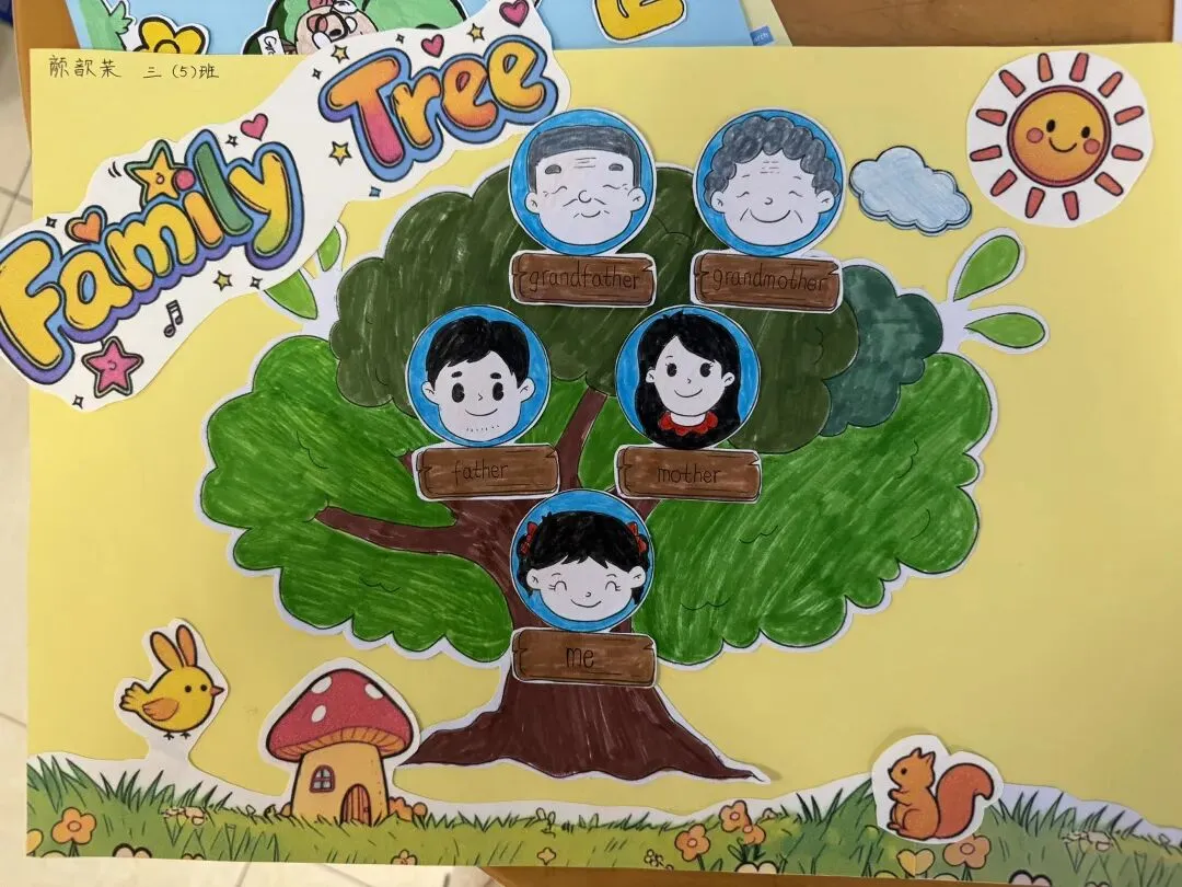 三年级同学绘制了温馨的“创意家庭树”并录制视频介绍家人。