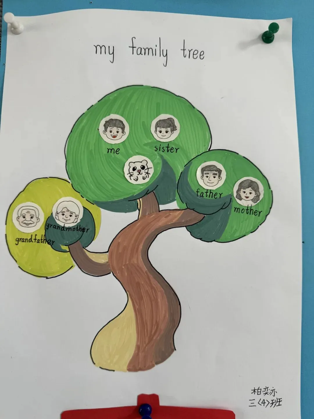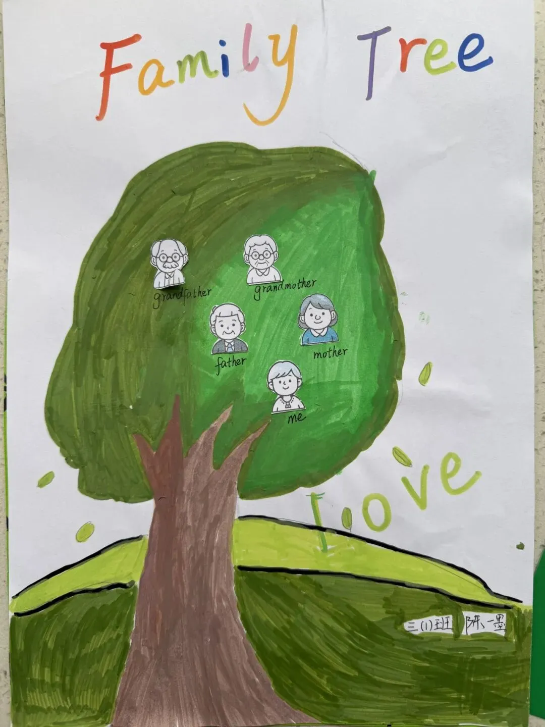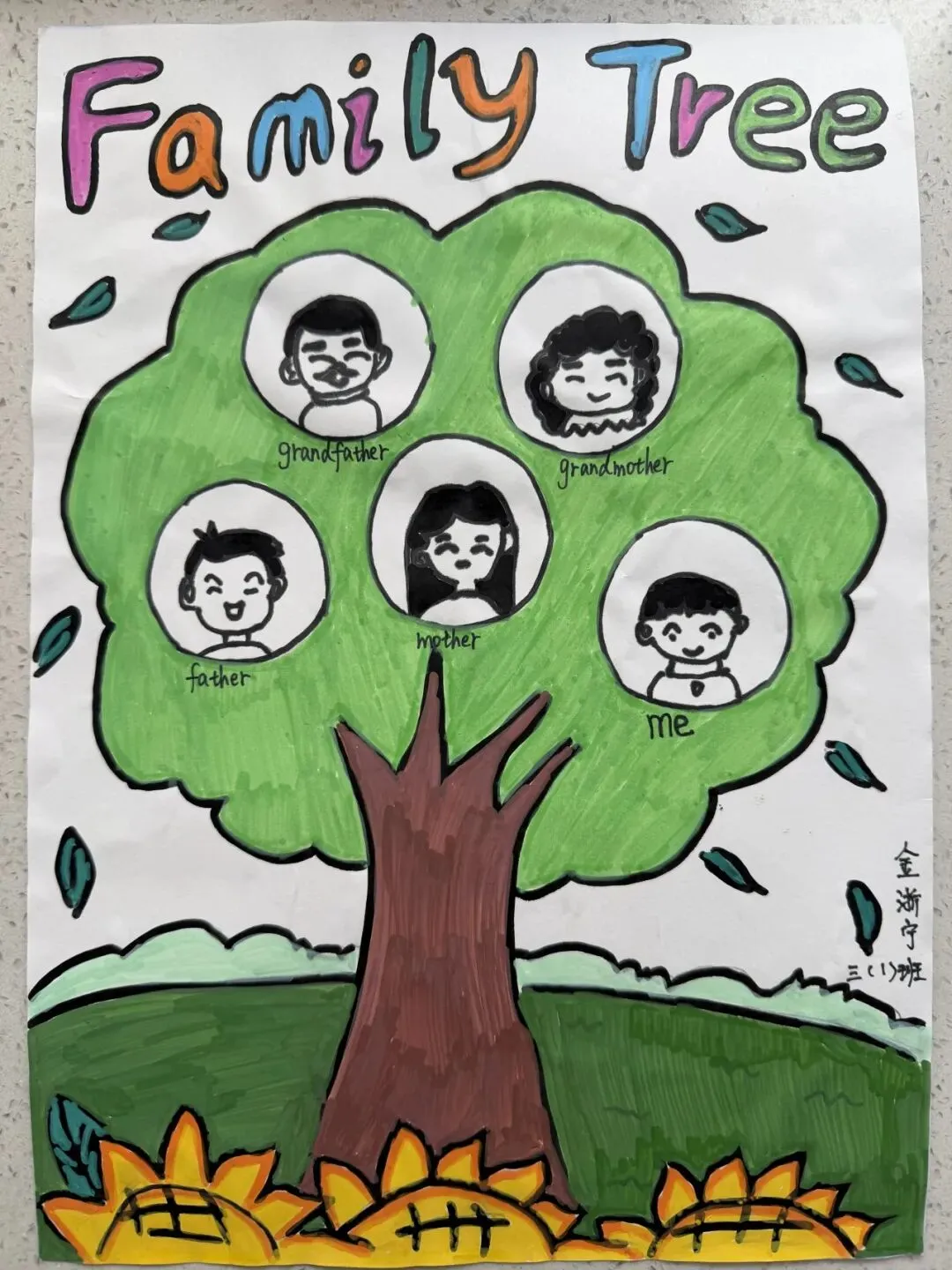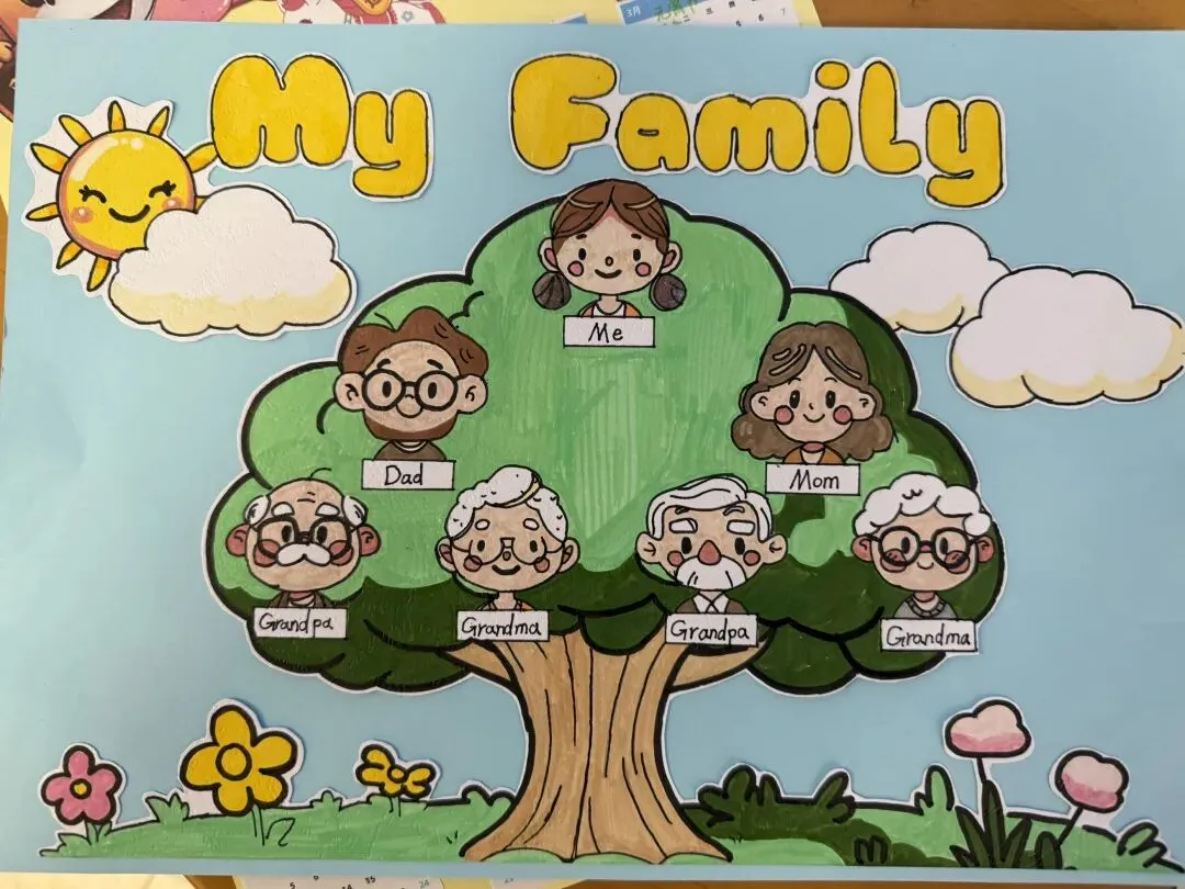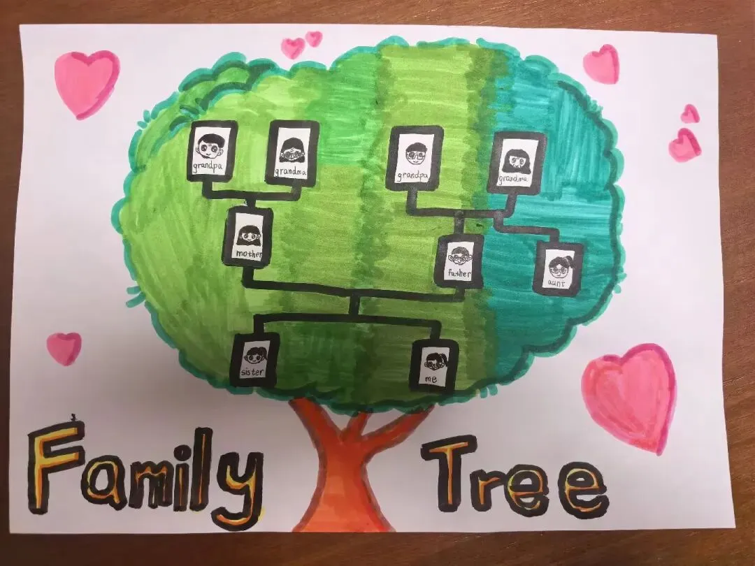 三年级同学绘制了温馨的“创意家庭树”并录制视频介绍家人。