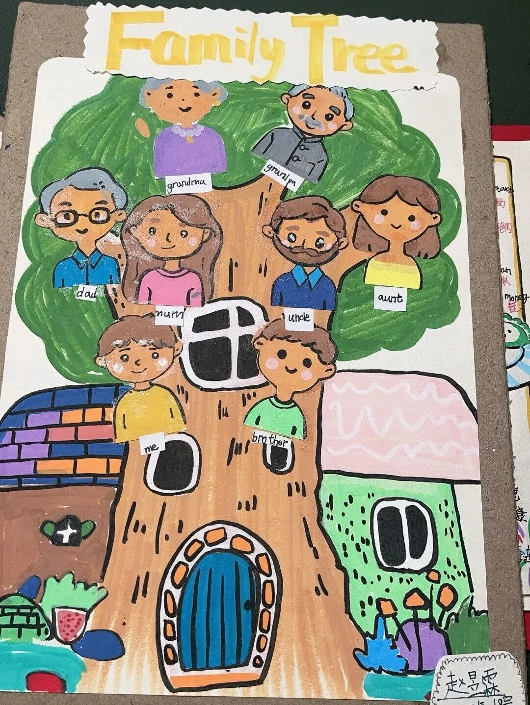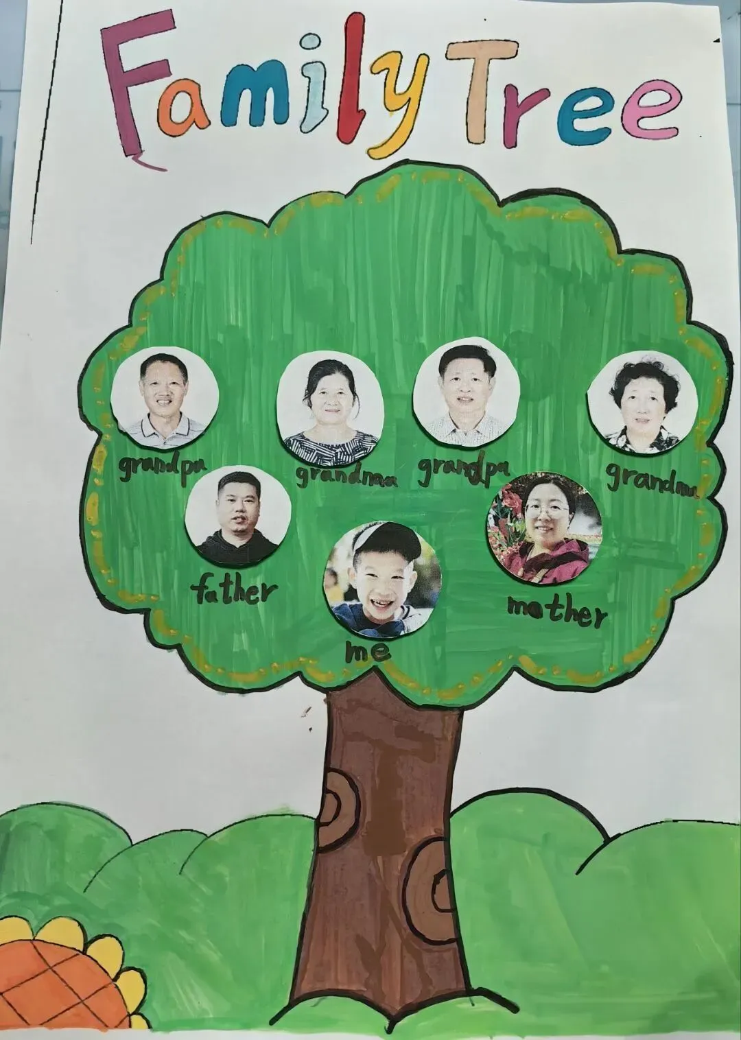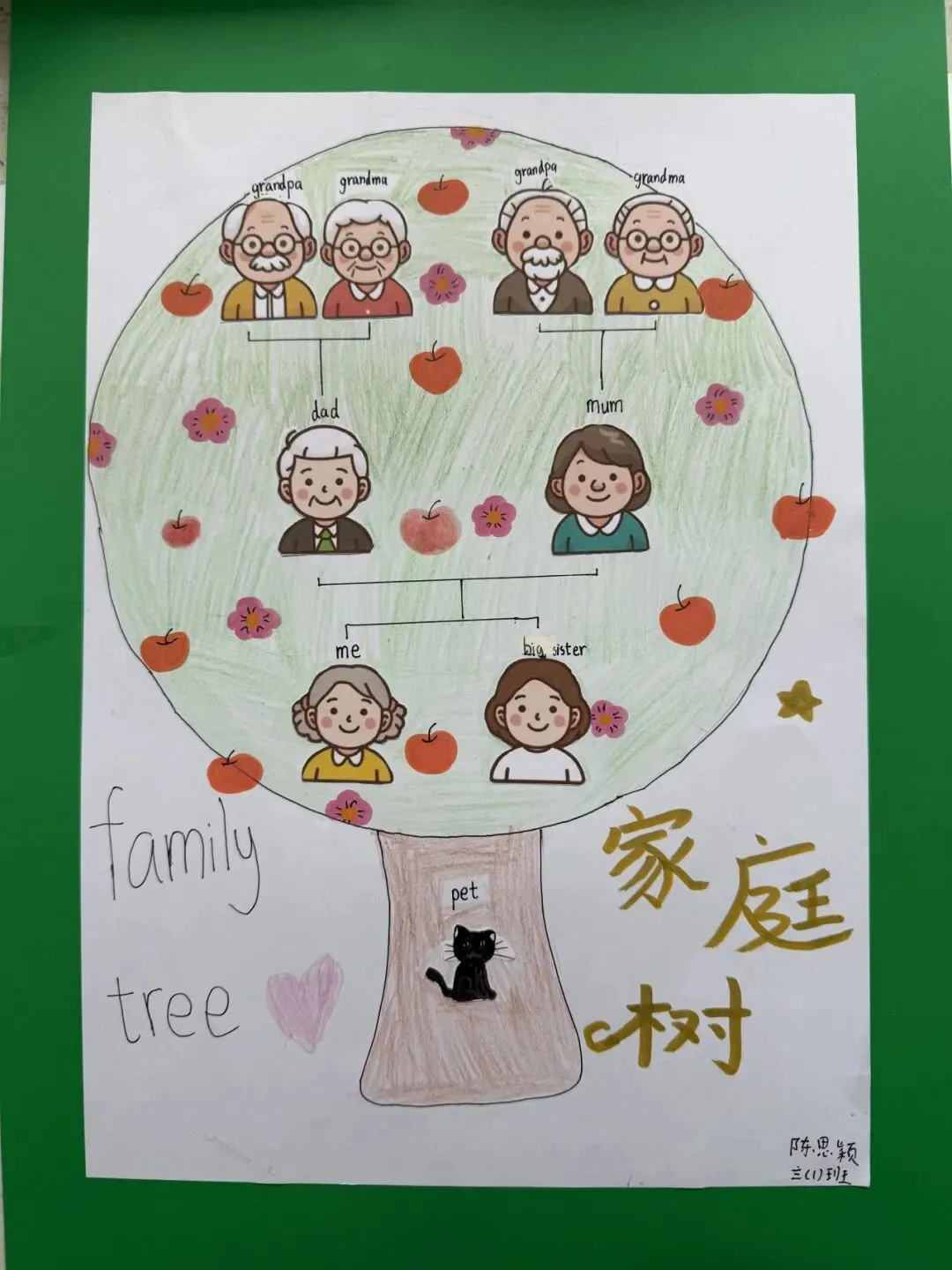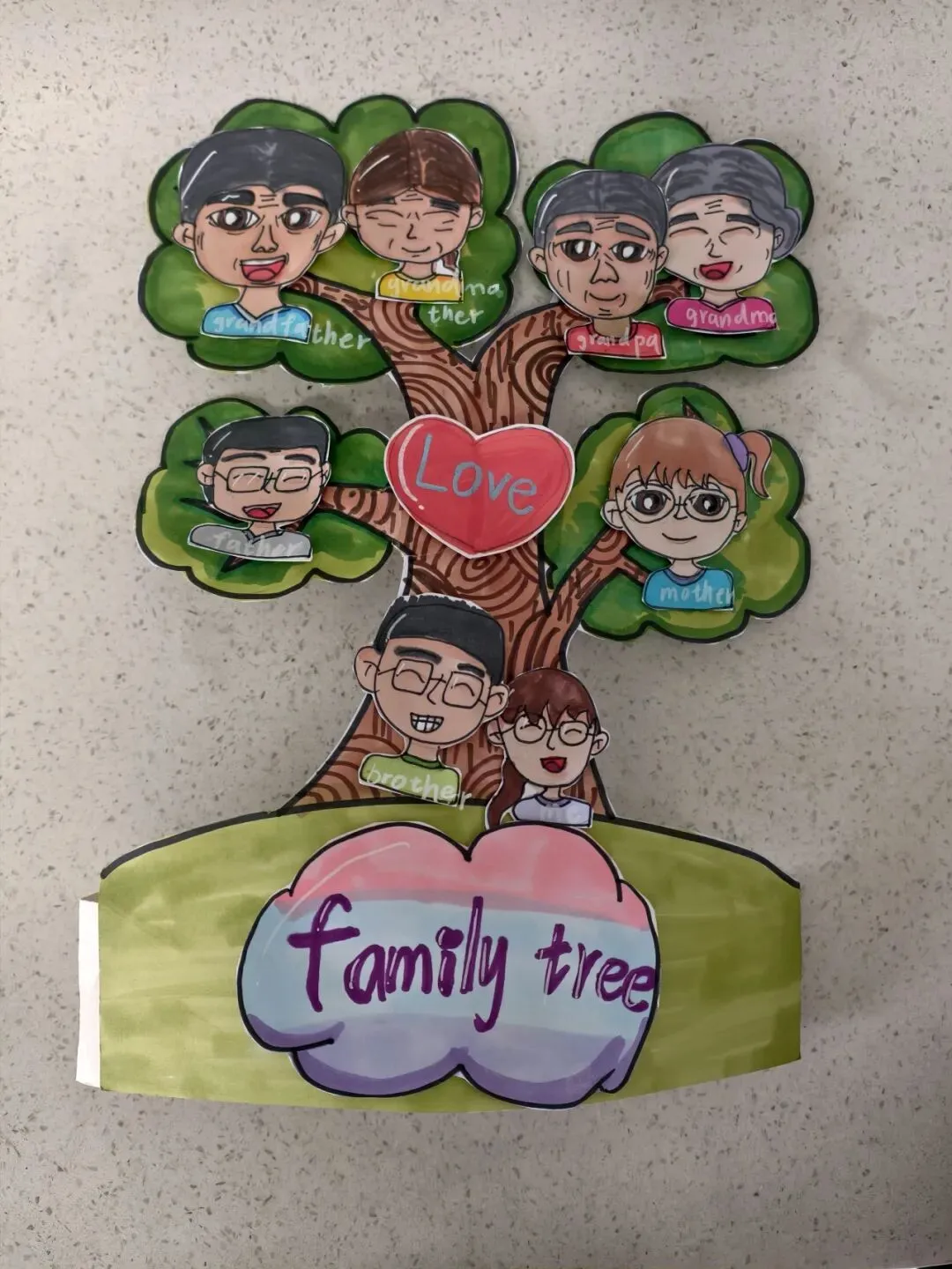 三年级同学绘制了温馨的“创意家庭树”并录制视频介绍家人。