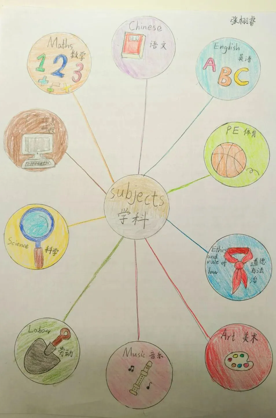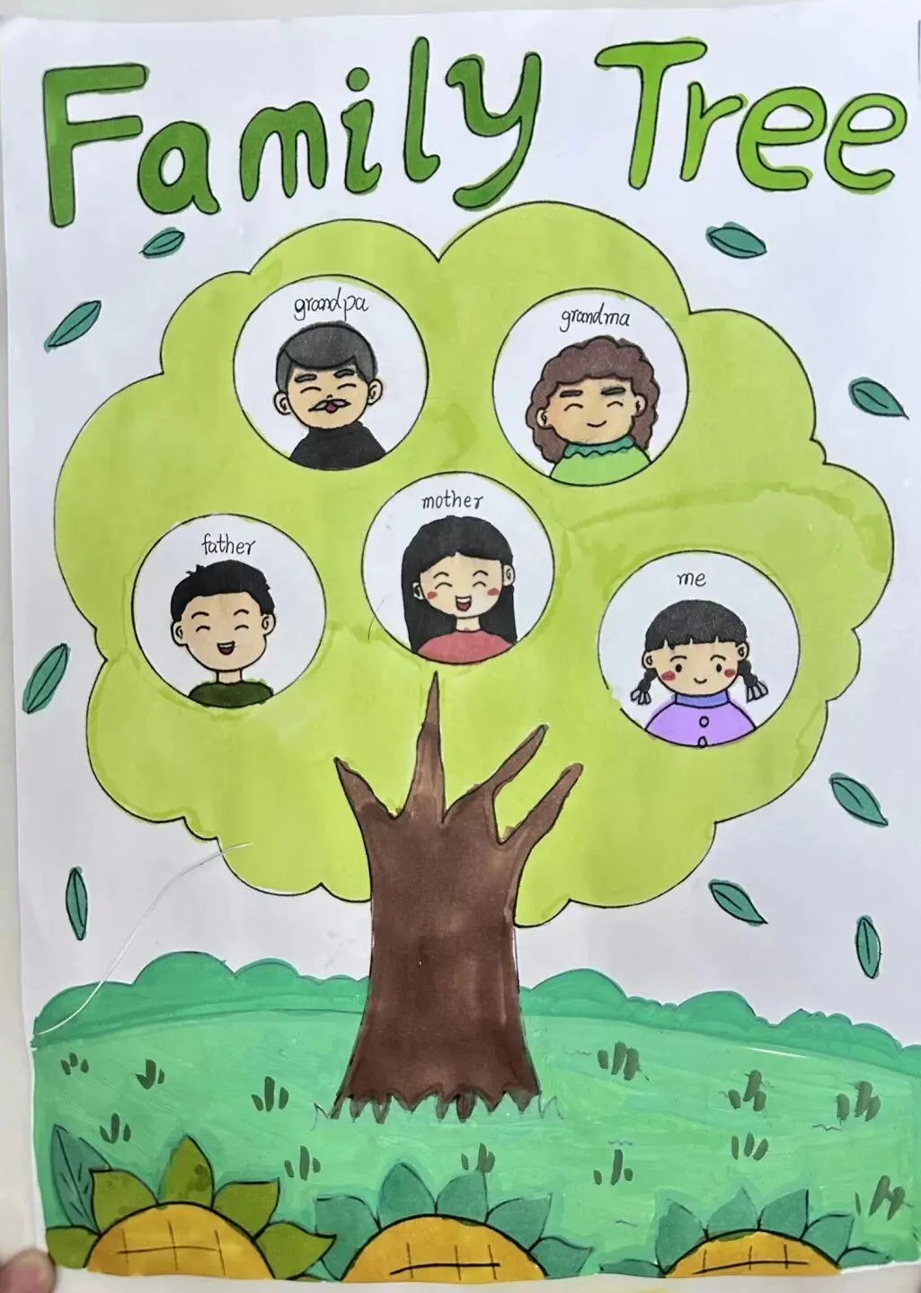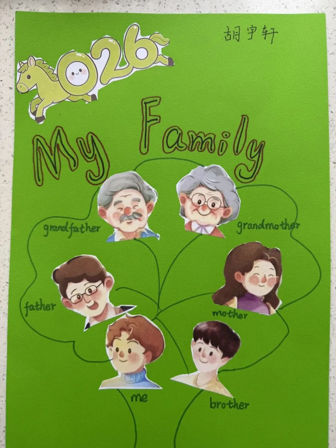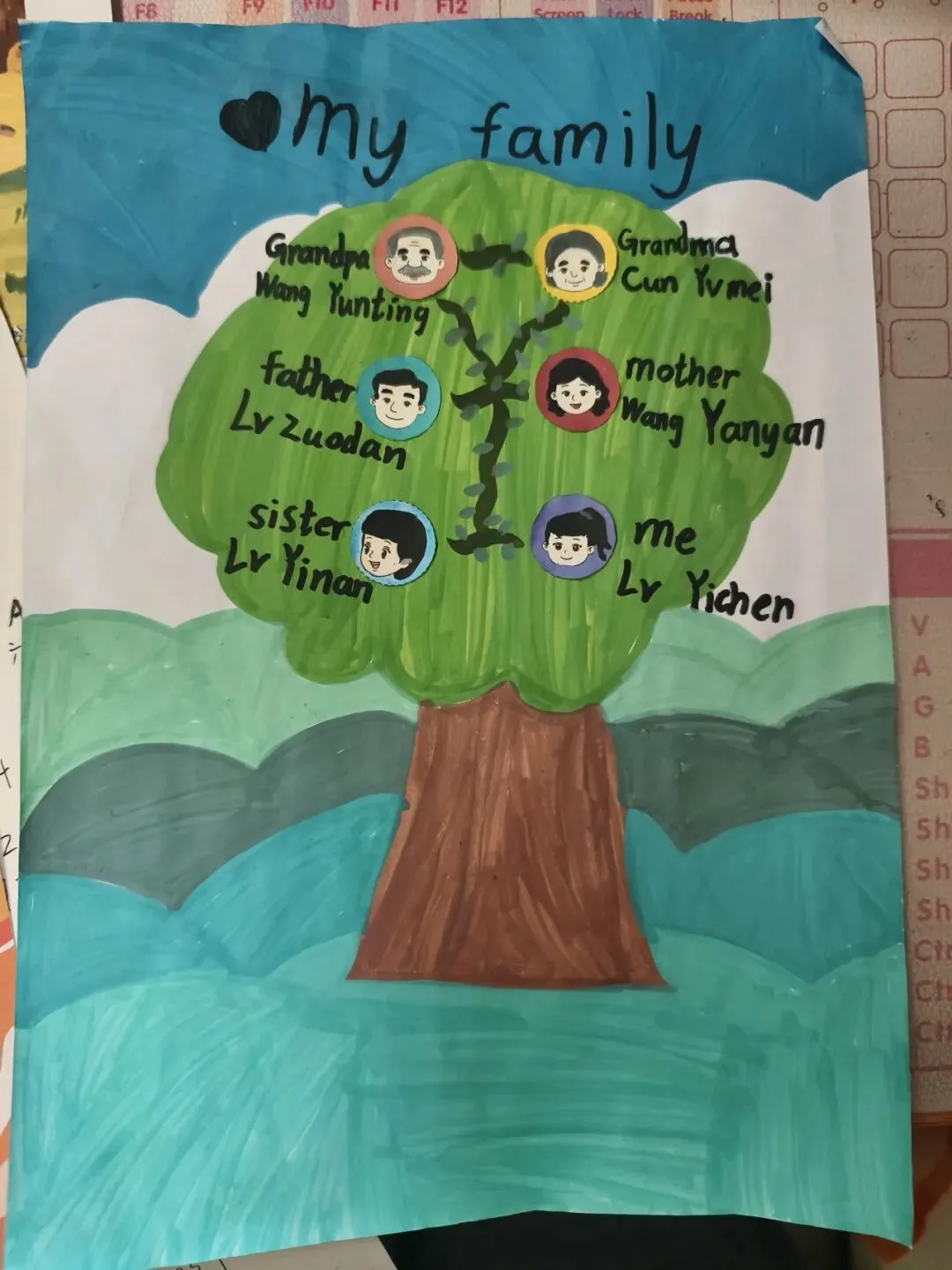 三年级同学绘制了温馨的“创意家庭树”并录制视频介绍家人。