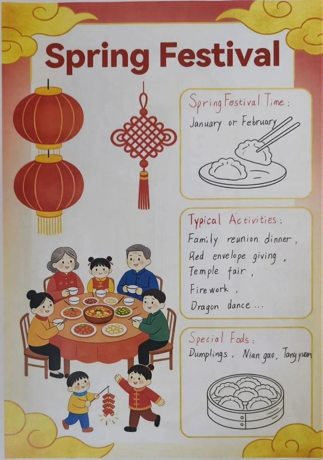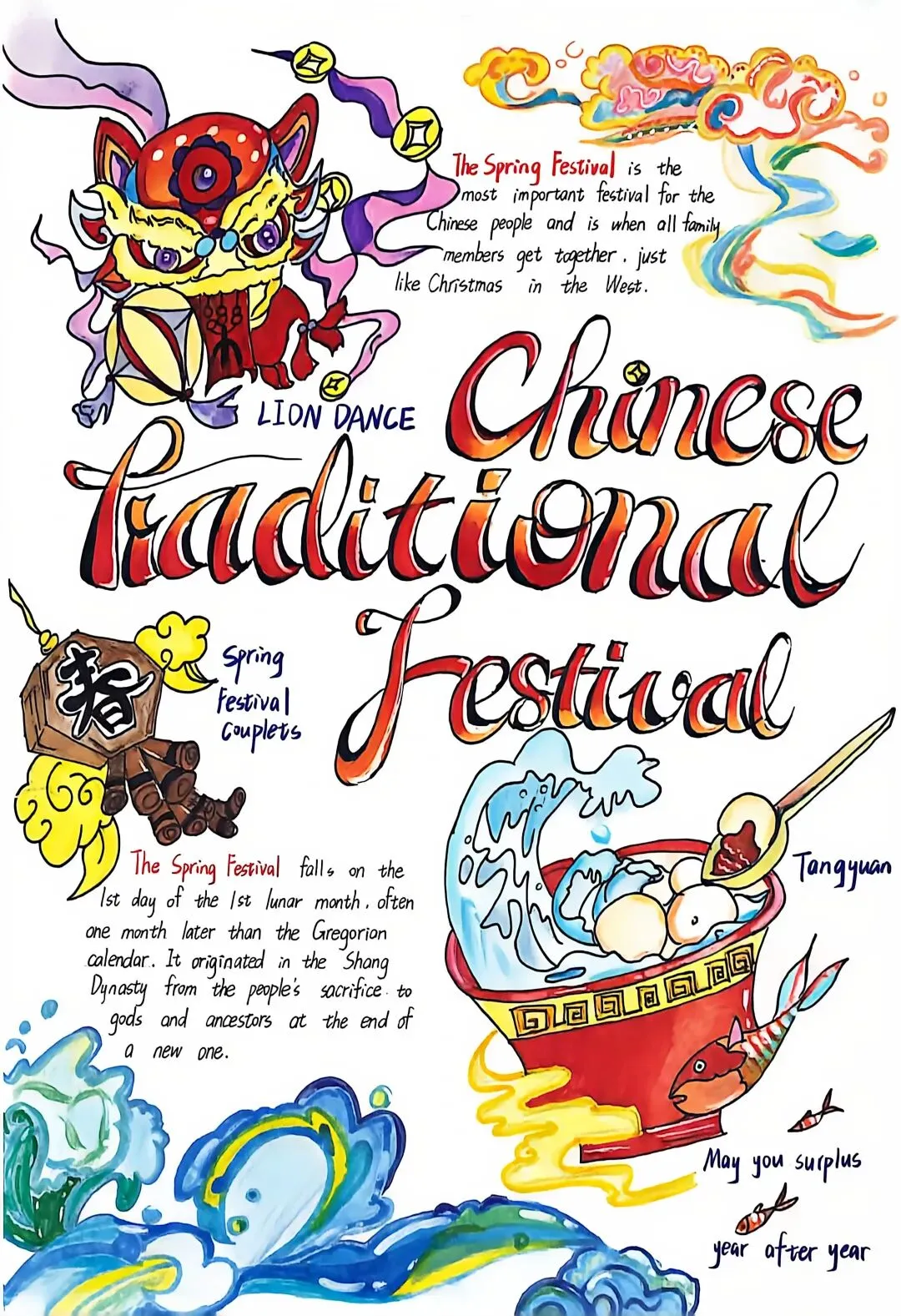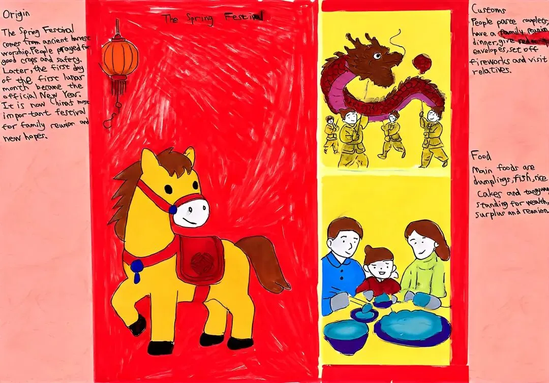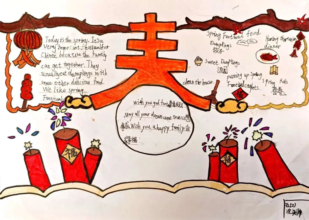 五年级制作精美的英语海报,探究中国传统节日的英文表达。