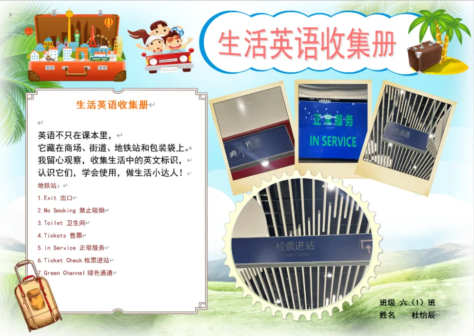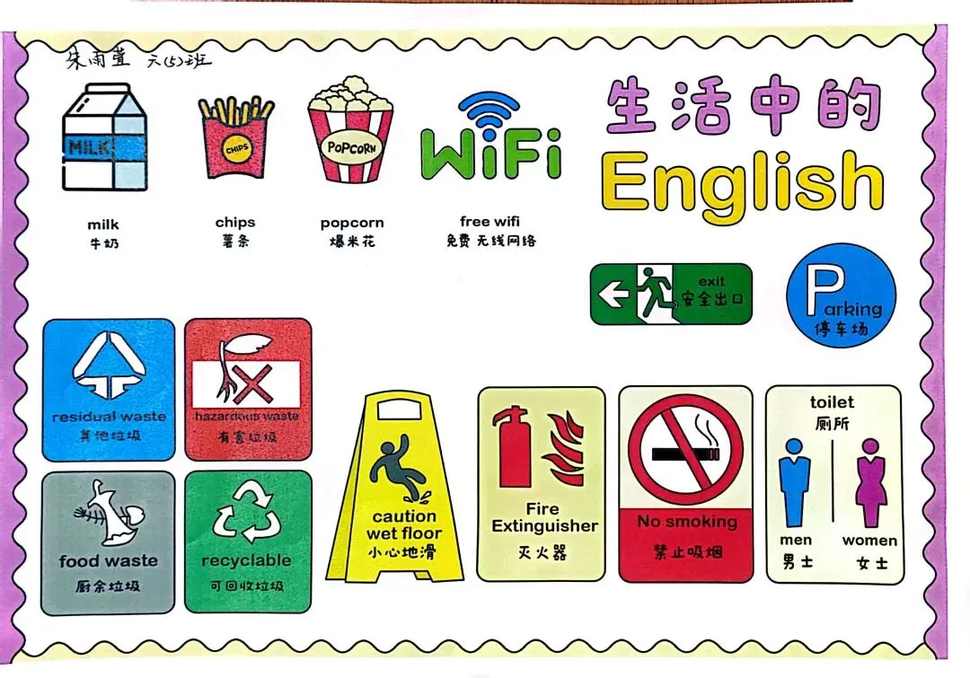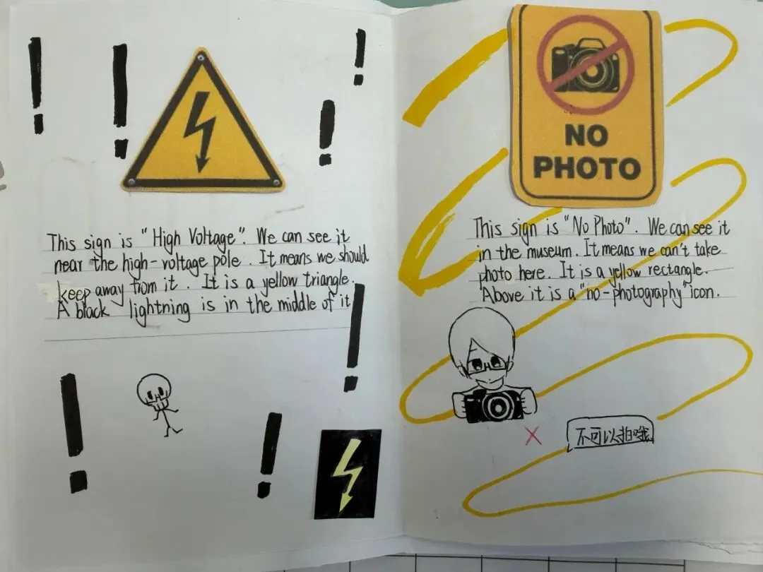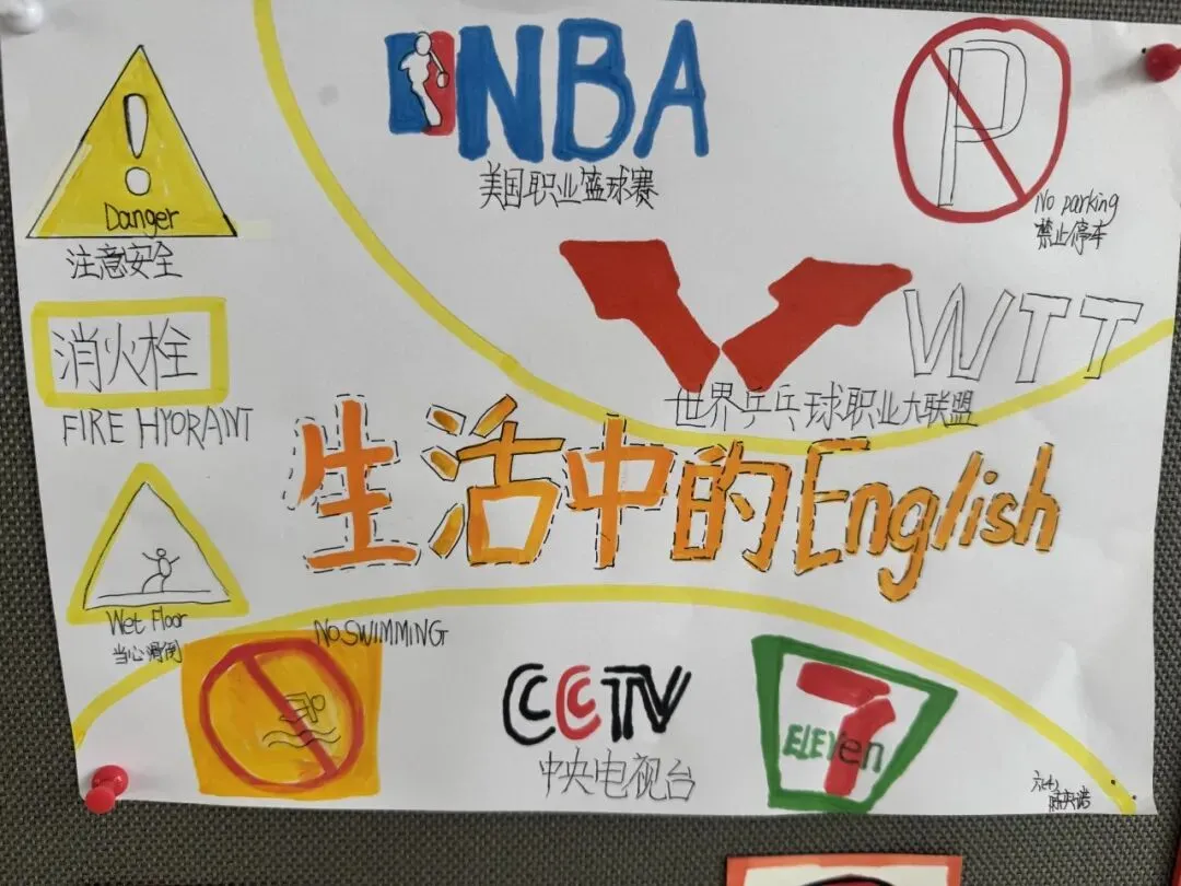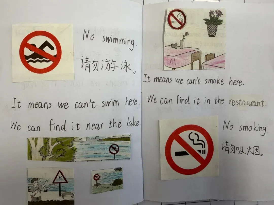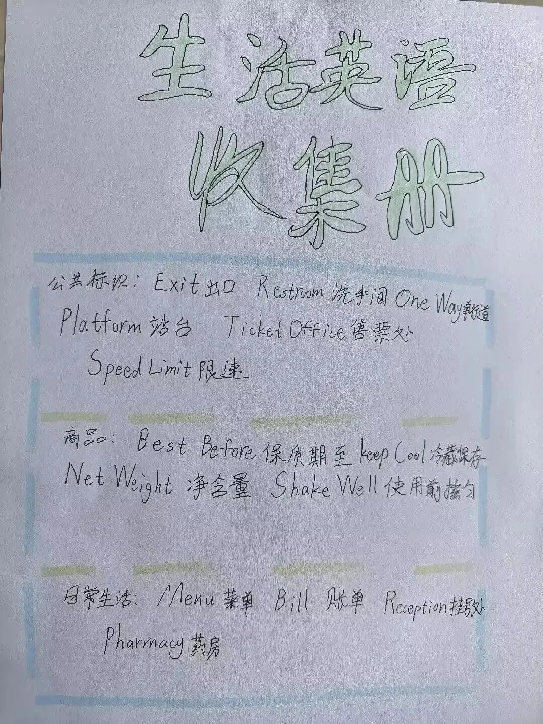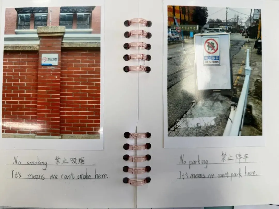 六年级则化身“城市小侦探”,制作“生活英语收集册”,捕捉身边英语标识。
