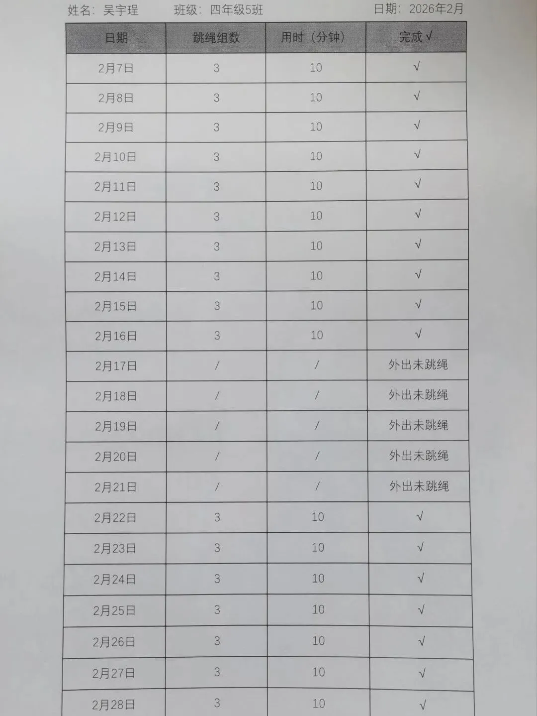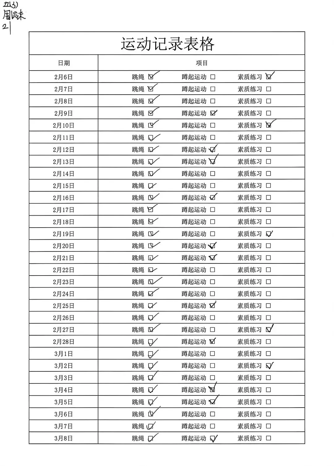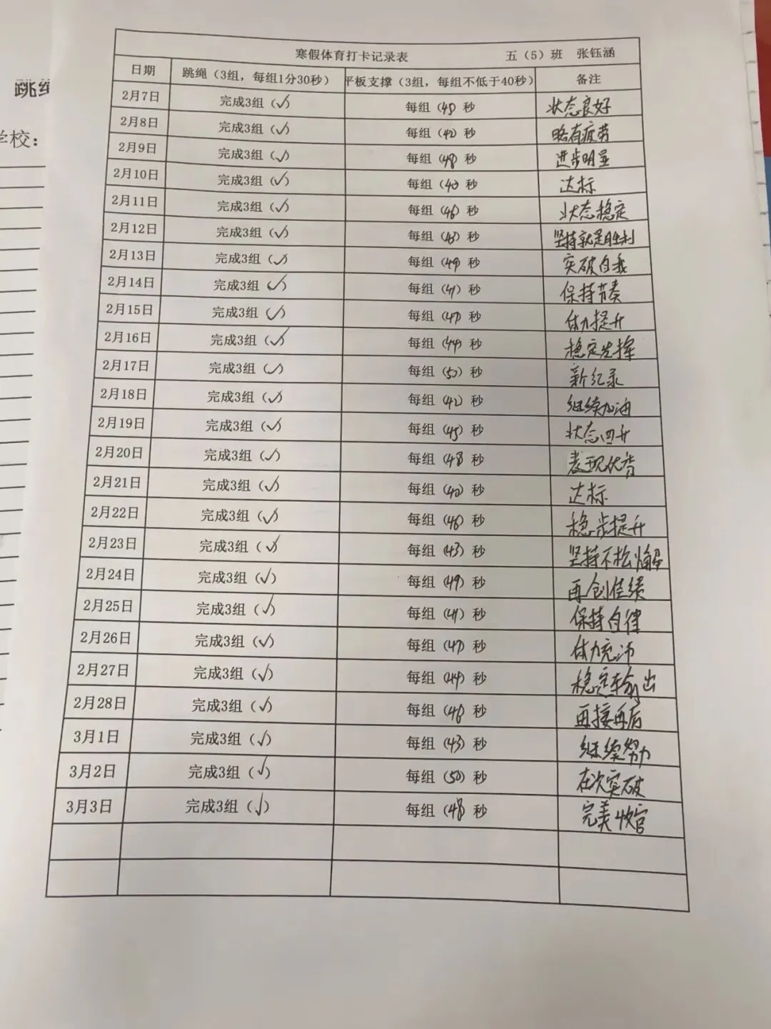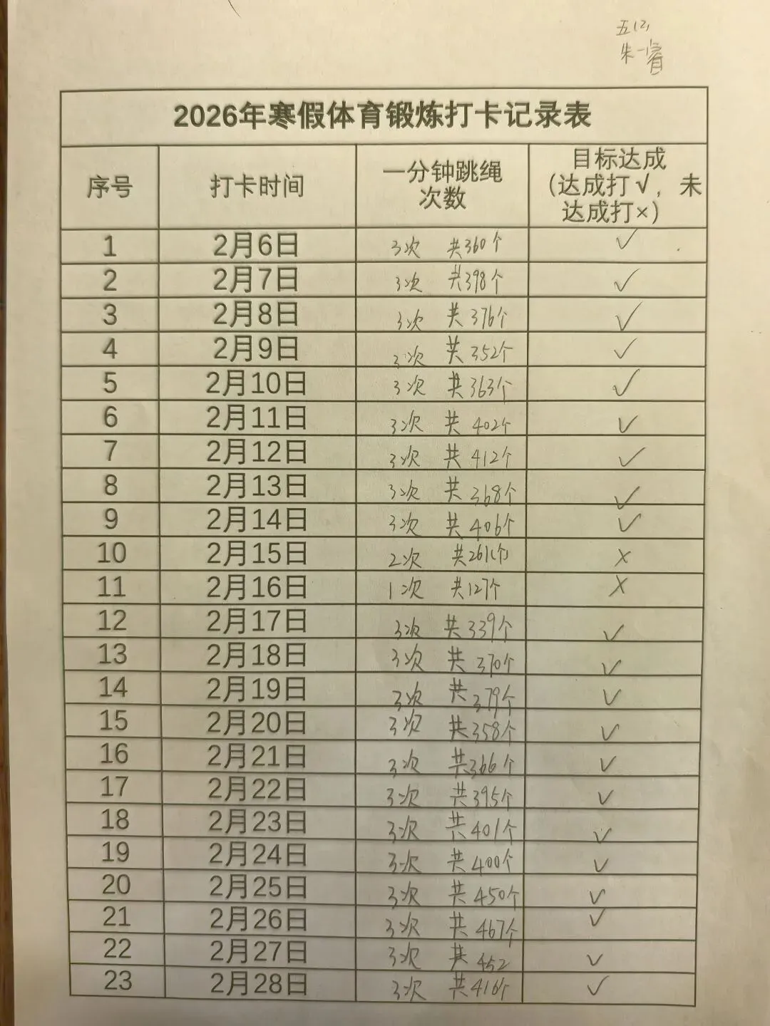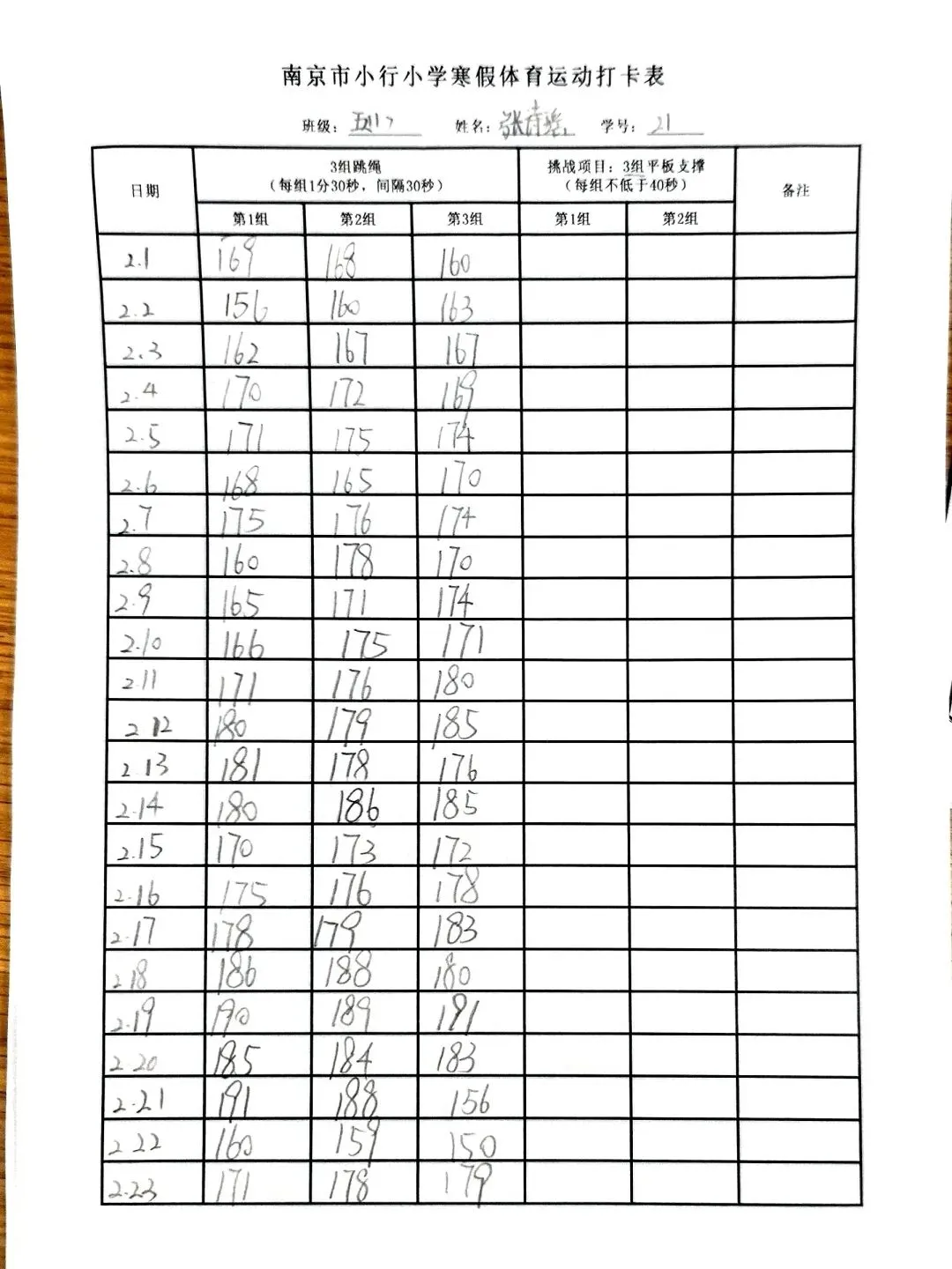 健康的体魄是成长的基石。寒假期间,中高年级同学们积极响应“一年之计在于春”的号召,坚持每日运动打卡。从跳绳挑战到篮球、俯卧撑练习,从个人闯关到亲子双人跳绳,孩子们在汗水中磨练意志,在运动中享受快乐。一张张填满记录的运动打卡表,不仅记录了数据的增长,更见证了“小行家”们坚持不懈的体育精神。