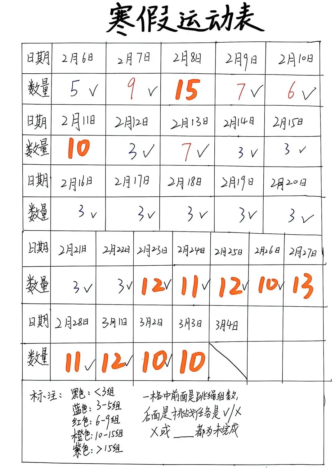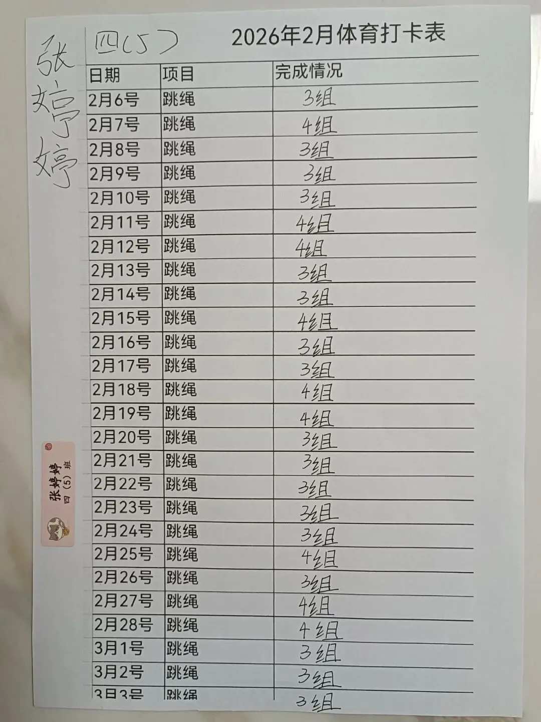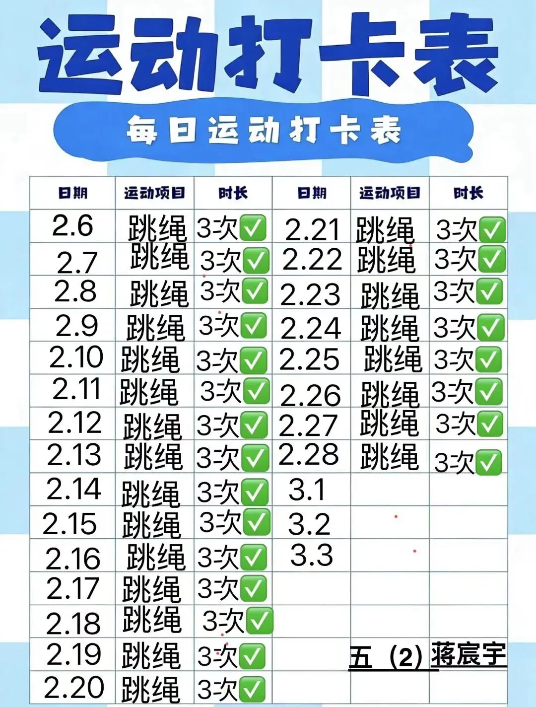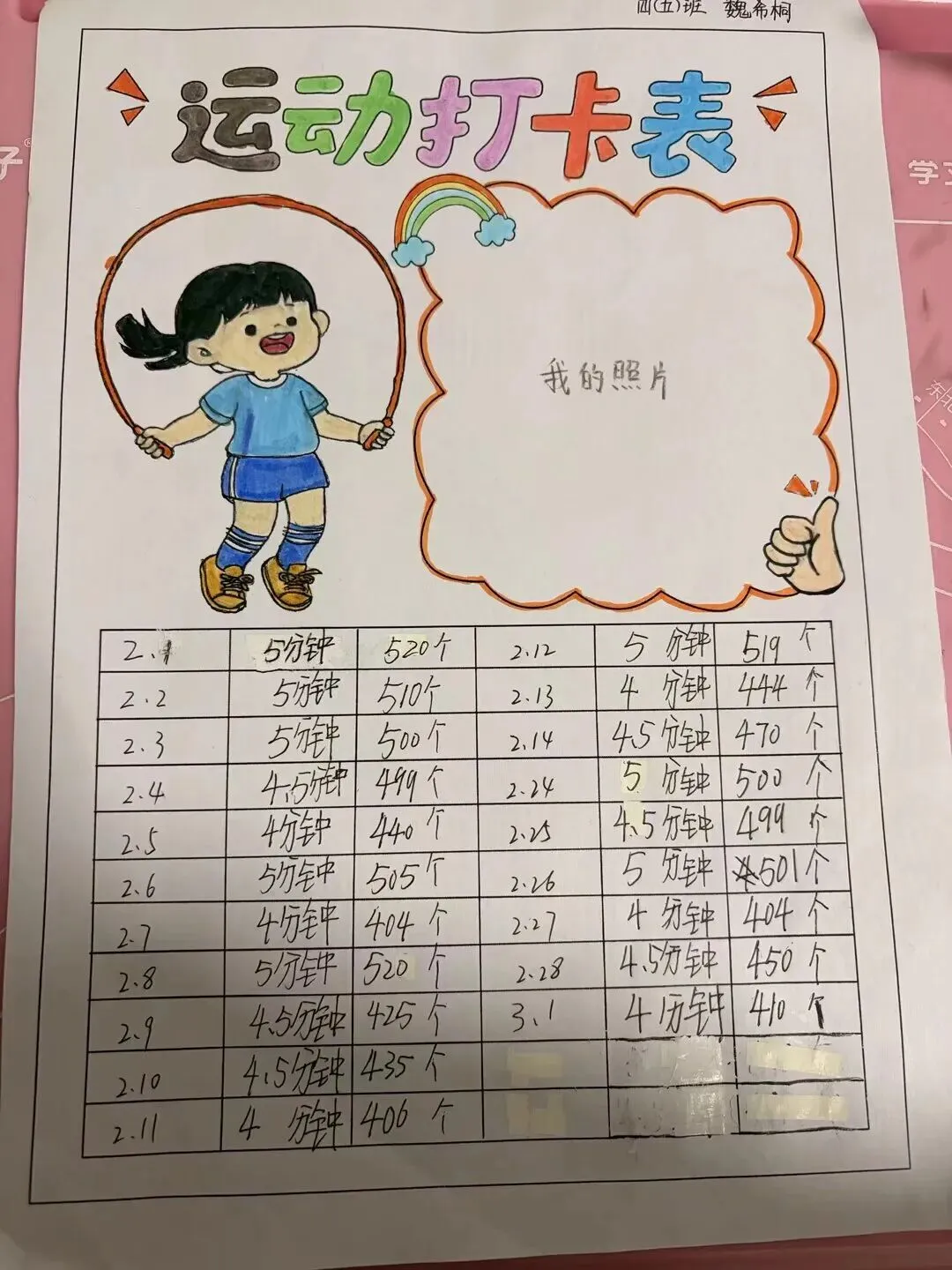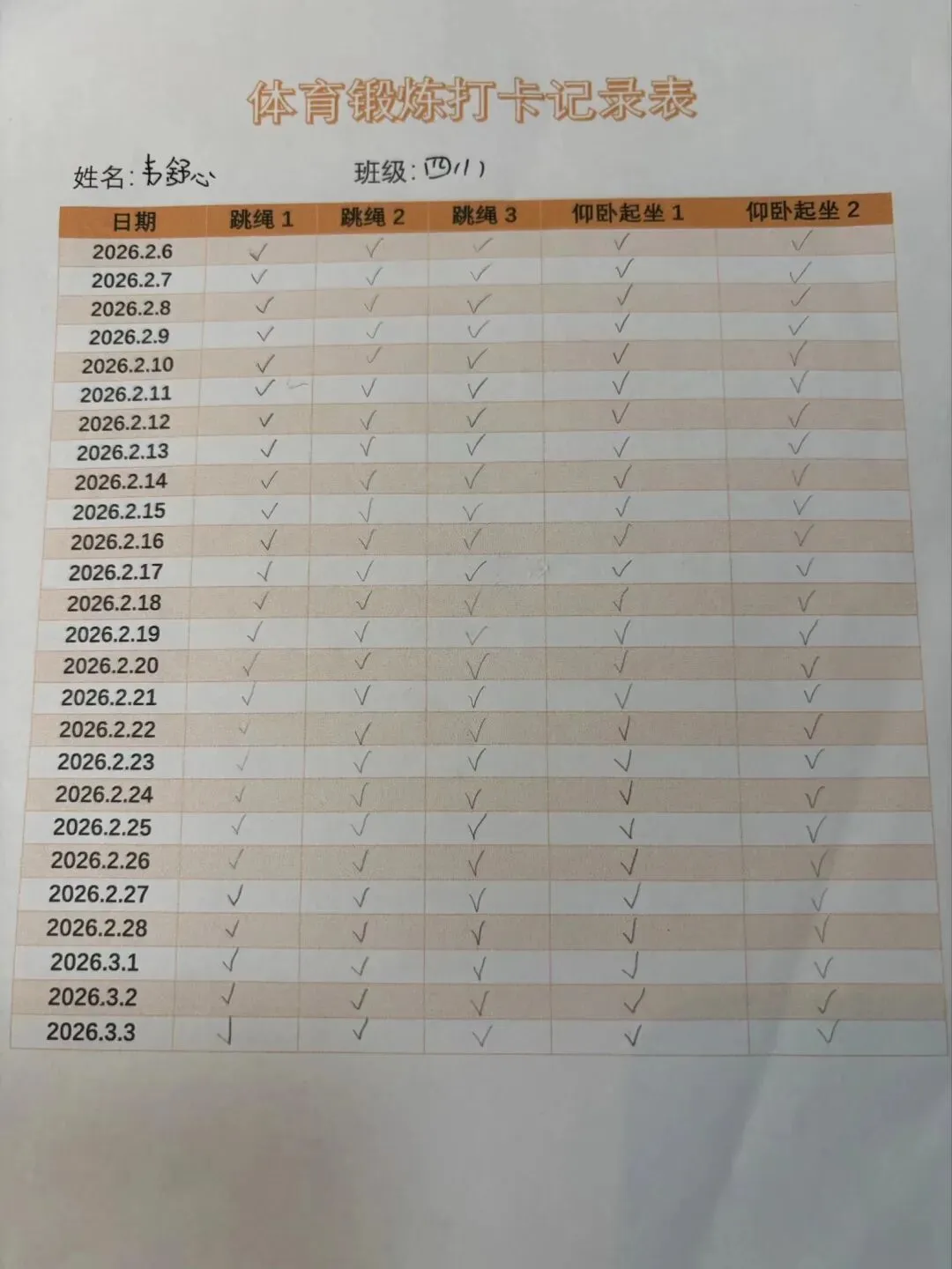 健康的体魄是成长的基石。寒假期间,中高年级同学们积极响应“一年之计在于春”的号召,坚持每日运动打卡。从跳绳挑战到篮球、俯卧撑练习,从个人闯关到亲子双人跳绳,孩子们在汗水中磨练意志,在运动中享受快乐。一张张填满记录的运动打卡表,不仅记录了数据的增长,更见证了“小行家”们坚持不懈的体育精神。
