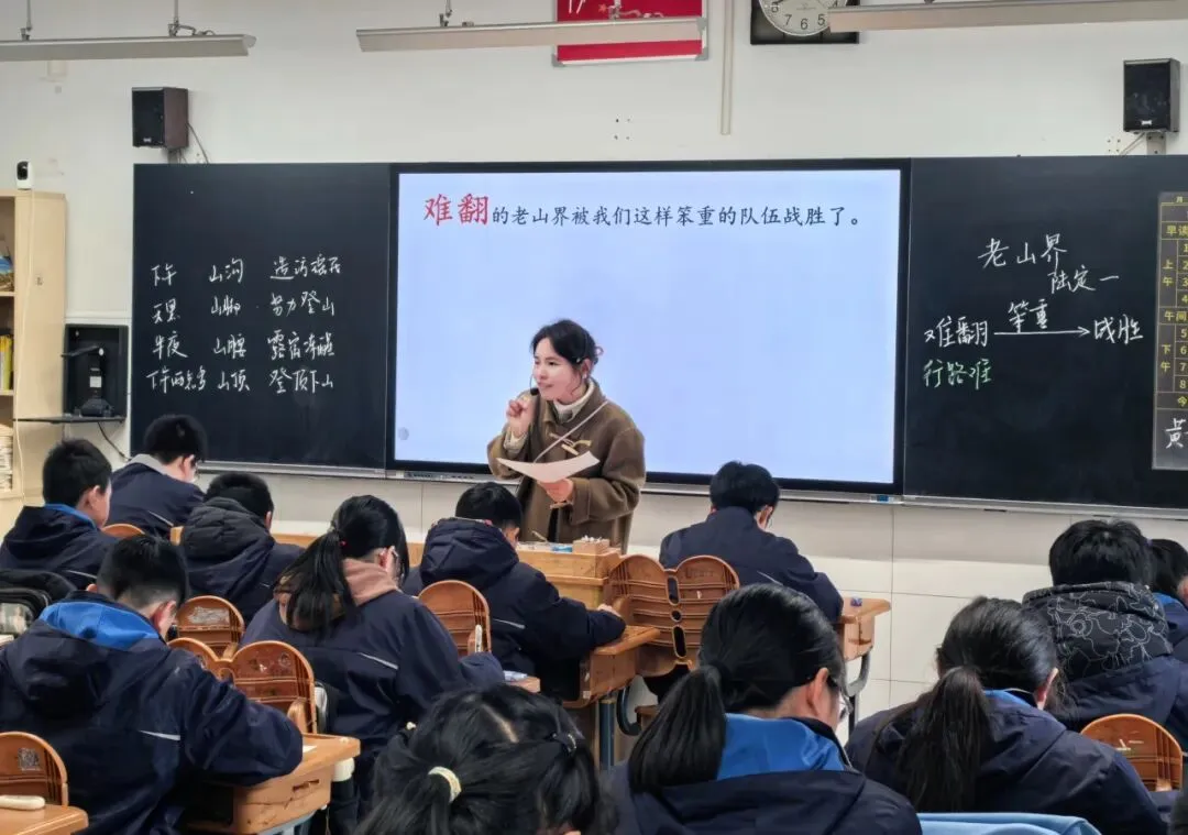 夏欣慰老师引领学生梳理翻山路线,品味“之”字形火把、半夜声响等经典语段,在朗读与比较中感悟红军的革命乐观主义精神。课堂立足语言涵咏,深挖“难翻的老山界被我们这样笨重的队伍战胜了”这句话中的精神内核,并通过标语创作实现学科育人。亮点纷呈:情境创设让文本可触可感,朗读指导让情感层层递进,红色基因在语言文字的品味中悄然传承。