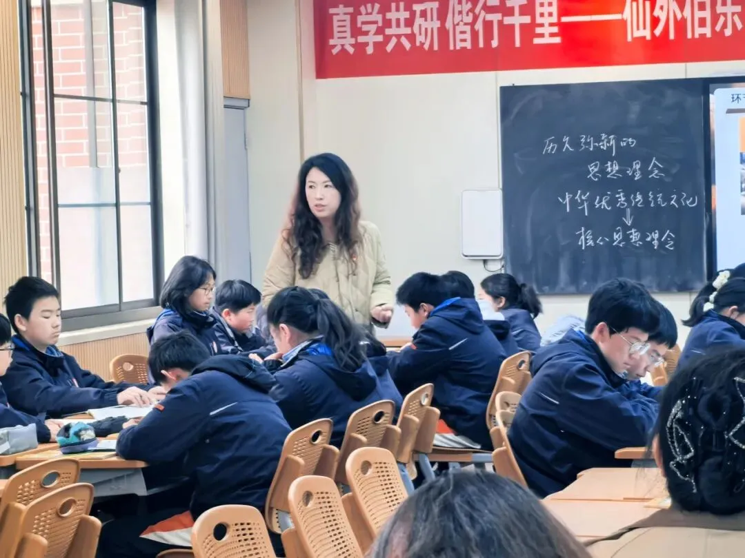 南师附中燕子矶新城学校初中部宋岩副校长开设德法公开课《历久弥新的思想理念》。