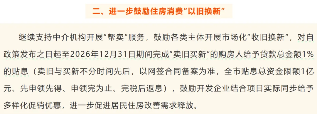 而最受关注的卖旧买新房贷贴息政策,核心要点如下: