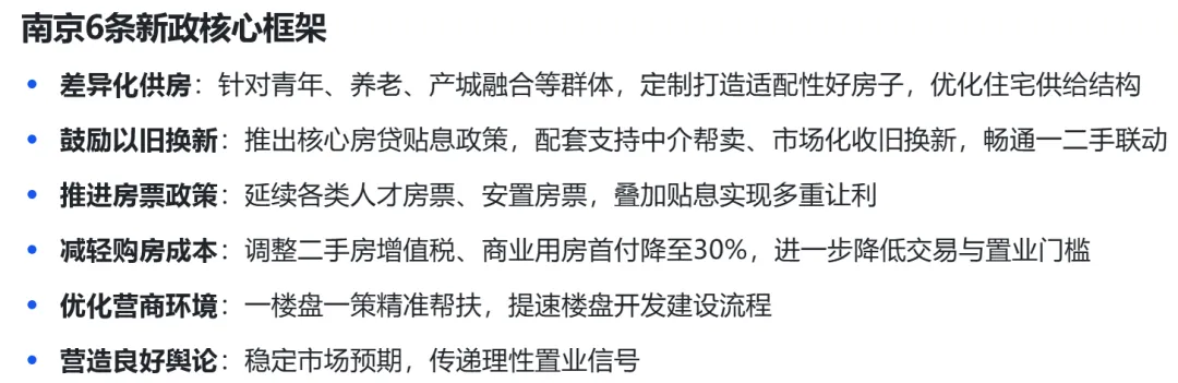南京此次 “宁六条” 覆盖供给端、需求端、服务端全维度:
