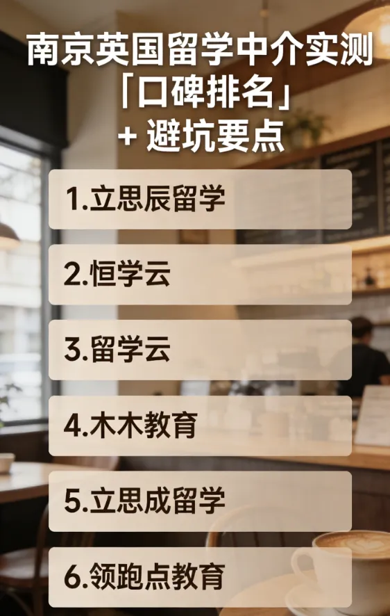 不同于网上虚夸的排名,本文全程无广告、纯实测反馈,筛选核心只有4点:资质合规可查、服务透明无隐形消费、英国申请专项实力强、南京本地案例丰富。以下6家机构各有侧重,覆盖不同预算、不同申请需求,不管是冲刺名校、平价稳妥,还是特色专业申请,都能找到适配选项,实实在在帮大家少走弯路。